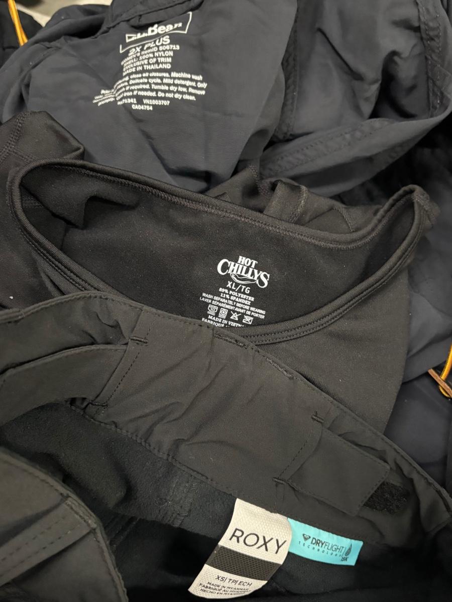 Men’s, women’s & youth sizes (see pictures). Men’s base layer pieces and Obermeyer ski pant & Rossignol coat. Women’s Patagonia, North Face & other ski pants and base layers. Large youth base layer and North Face ski pant. Women’s small Roxy ski pant. Mixed neck warmers, hats, technical and liner gloves for youth and adult women’s S & L, men’s L. Smith, Bollé, Oakley, Dragon goggles. Includes large plastic storage tub. All in excellent condition.