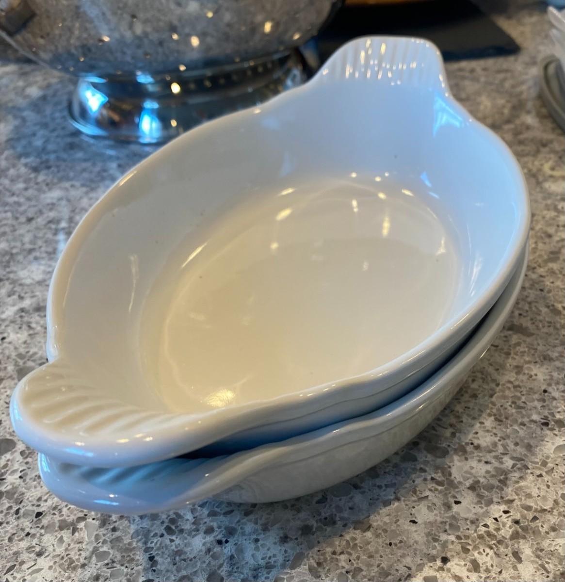 Oblong white ceramic gratin dishes