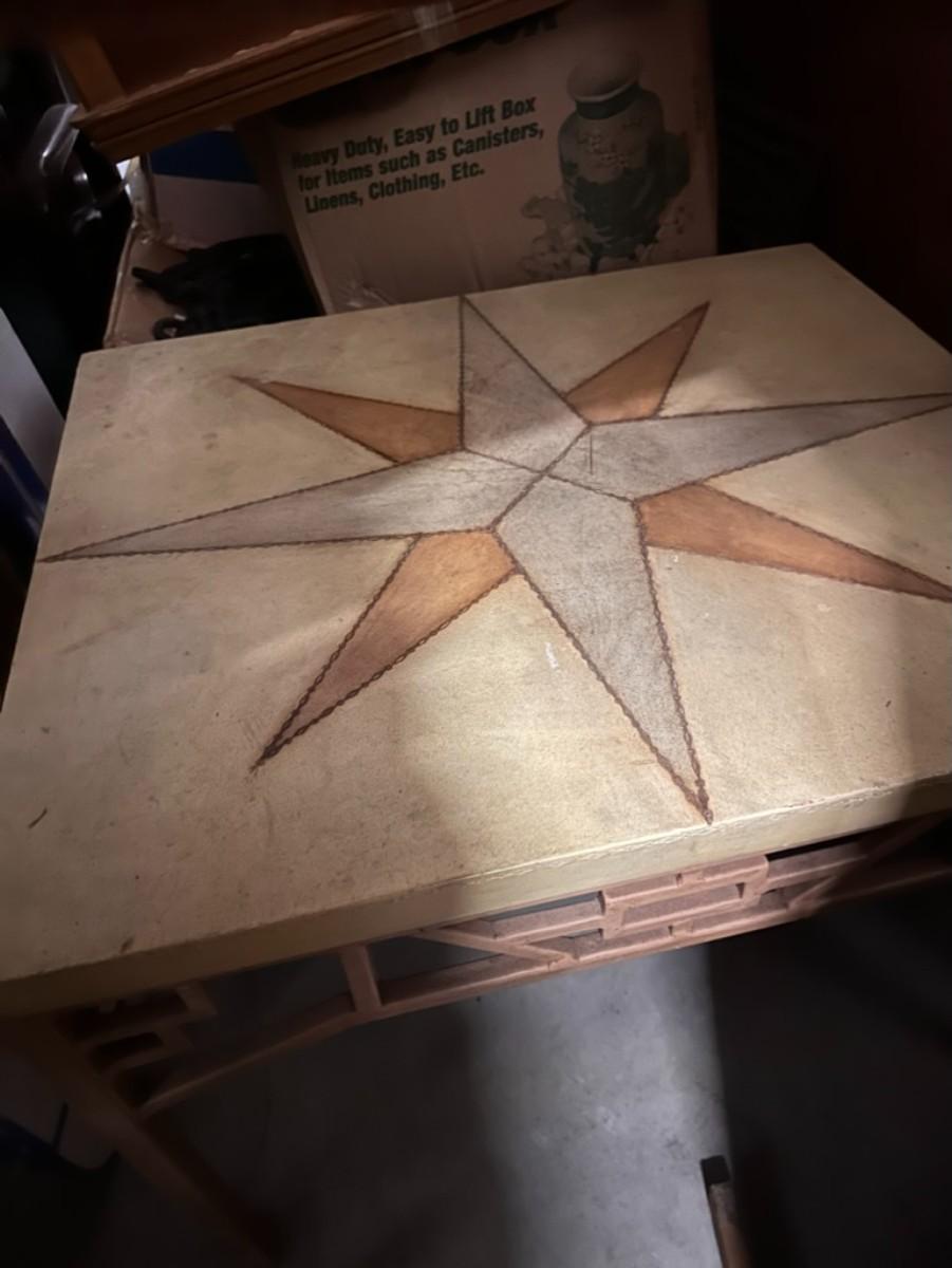 Occasional Leather-top Table with a star motif. Metal Legs and Frame. 26" x 30" x 22.5" H