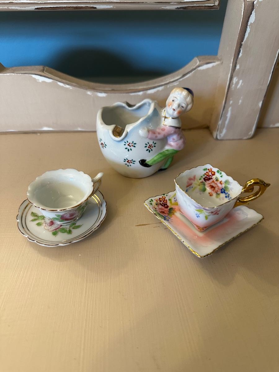 Two tiny little tea cups and a wonderful ashtray.!
