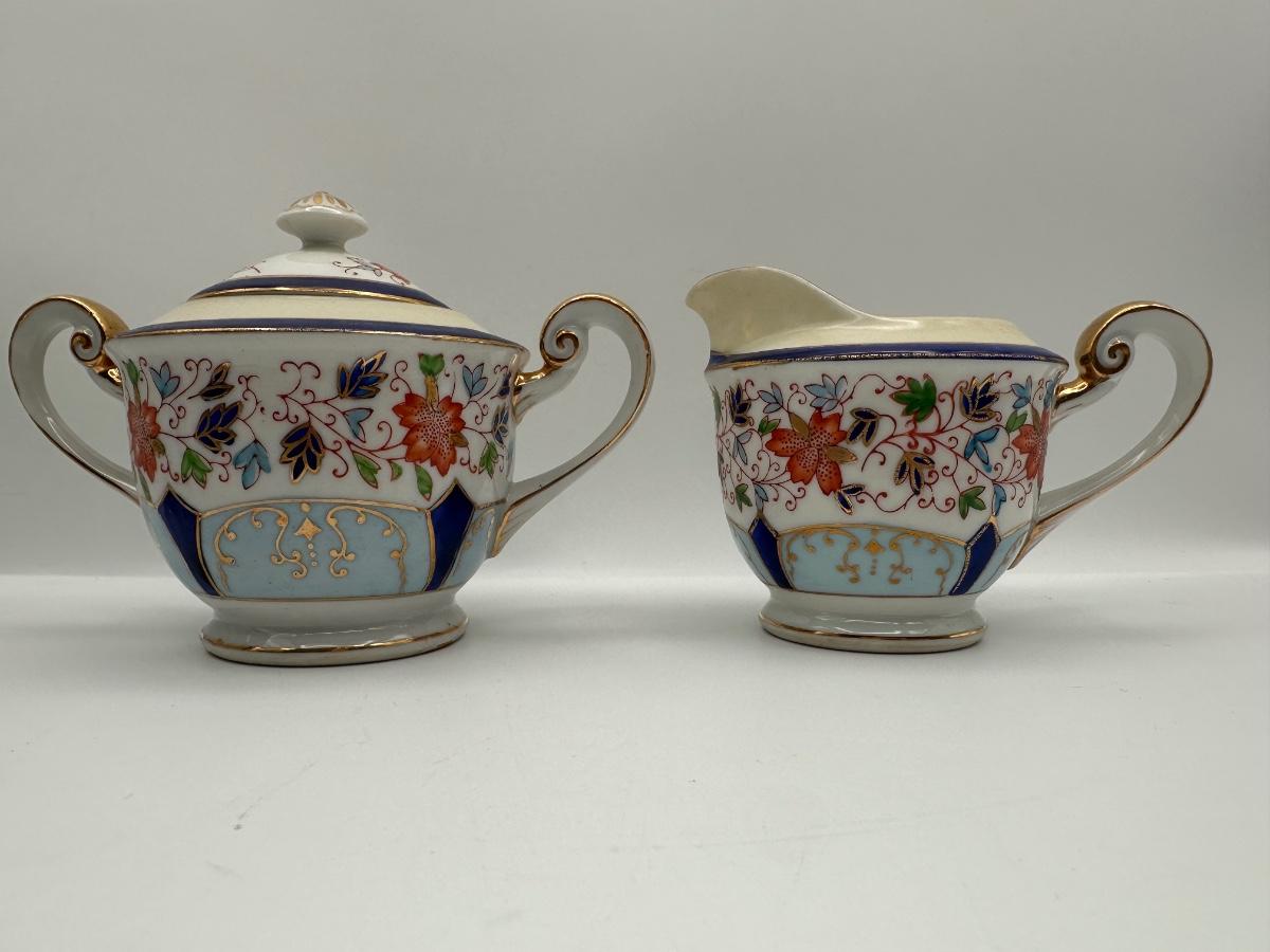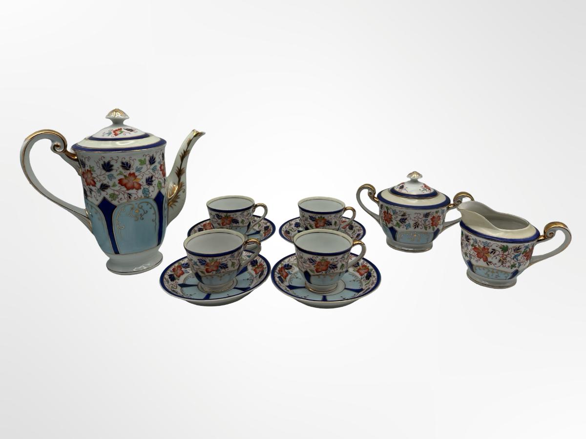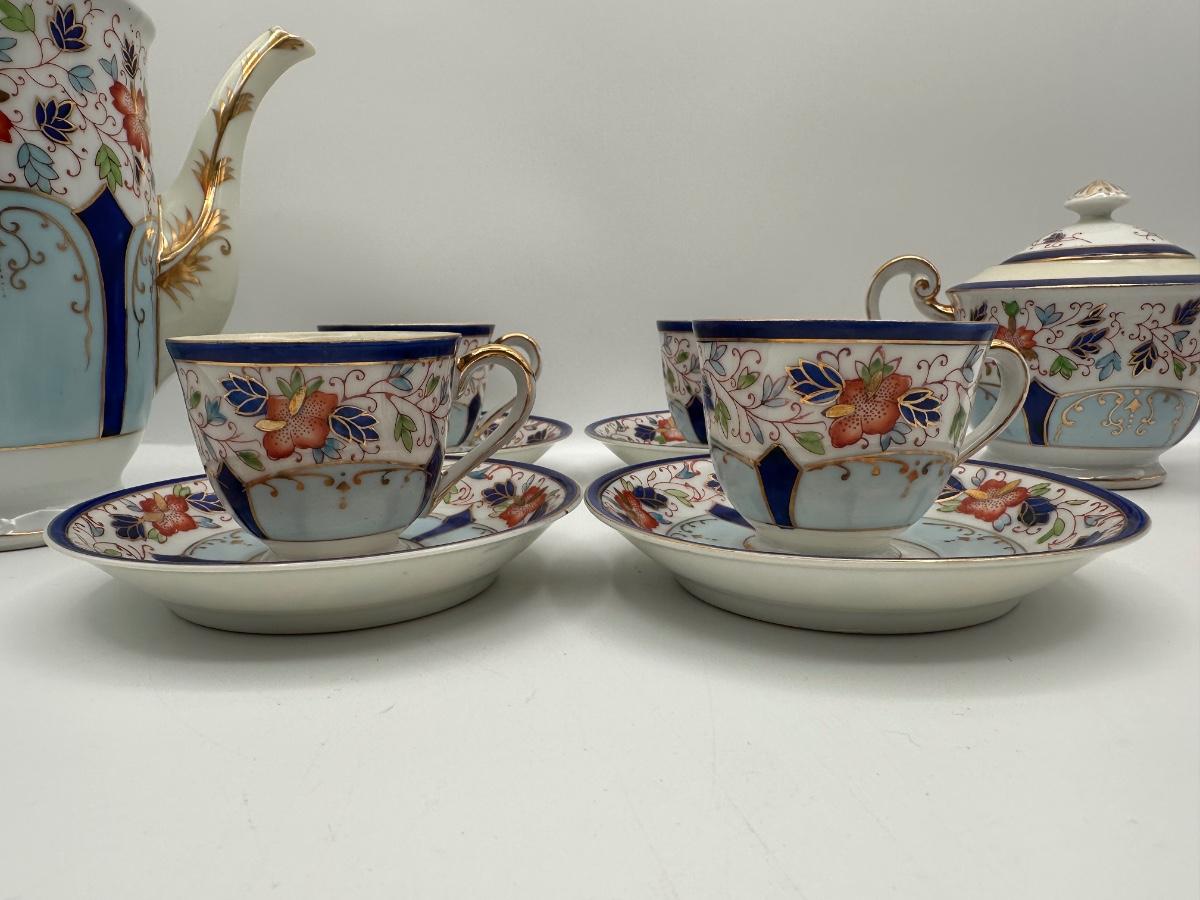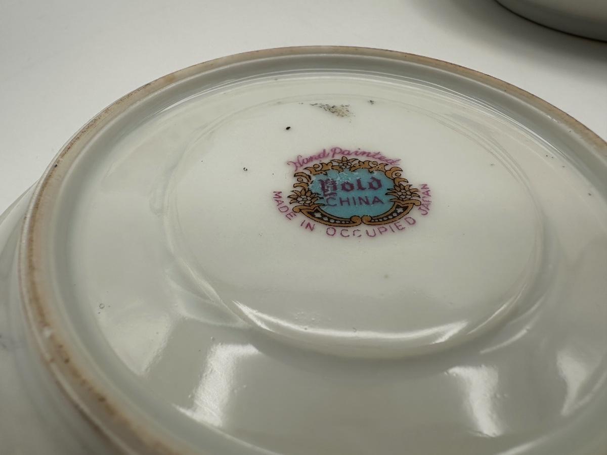 Occupied Japan Hand-Painted Porcelain Coffee Set — Bold China, Floral & Gold Trim