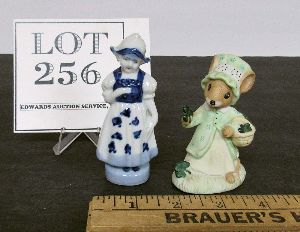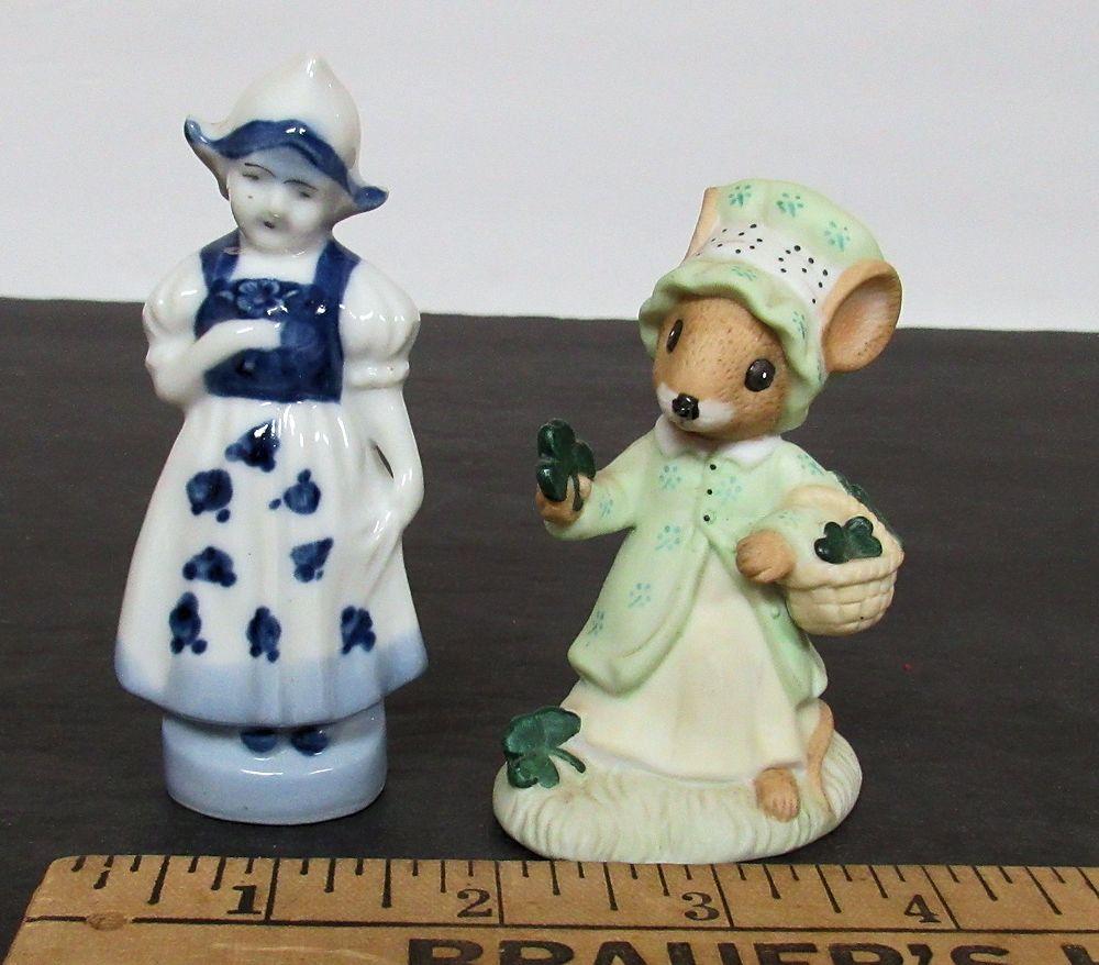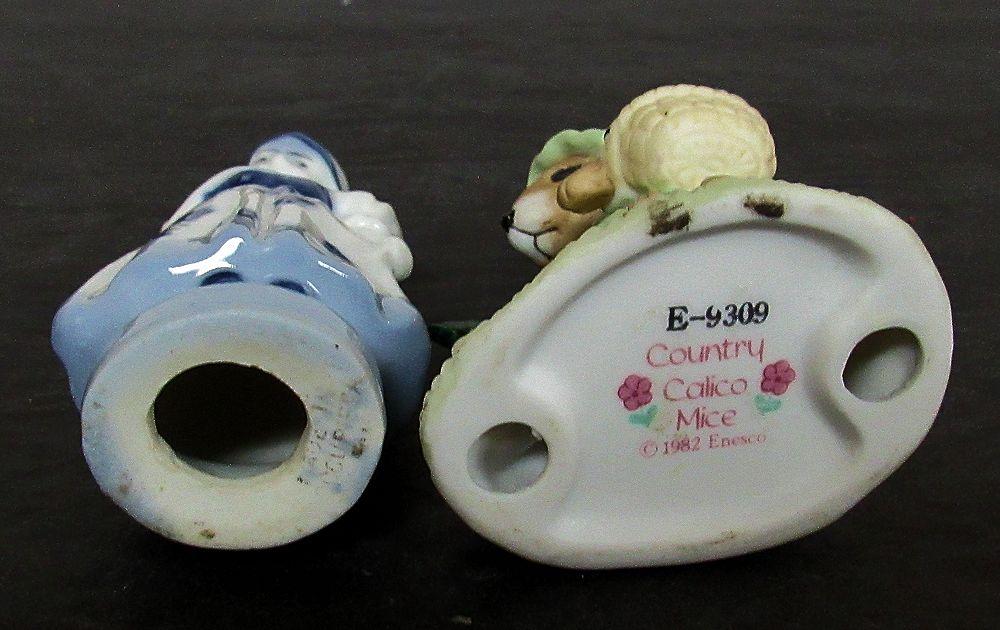 Occupied Japan Lady Figurine and Enesco Country Calico Mouse Figurine, 1982