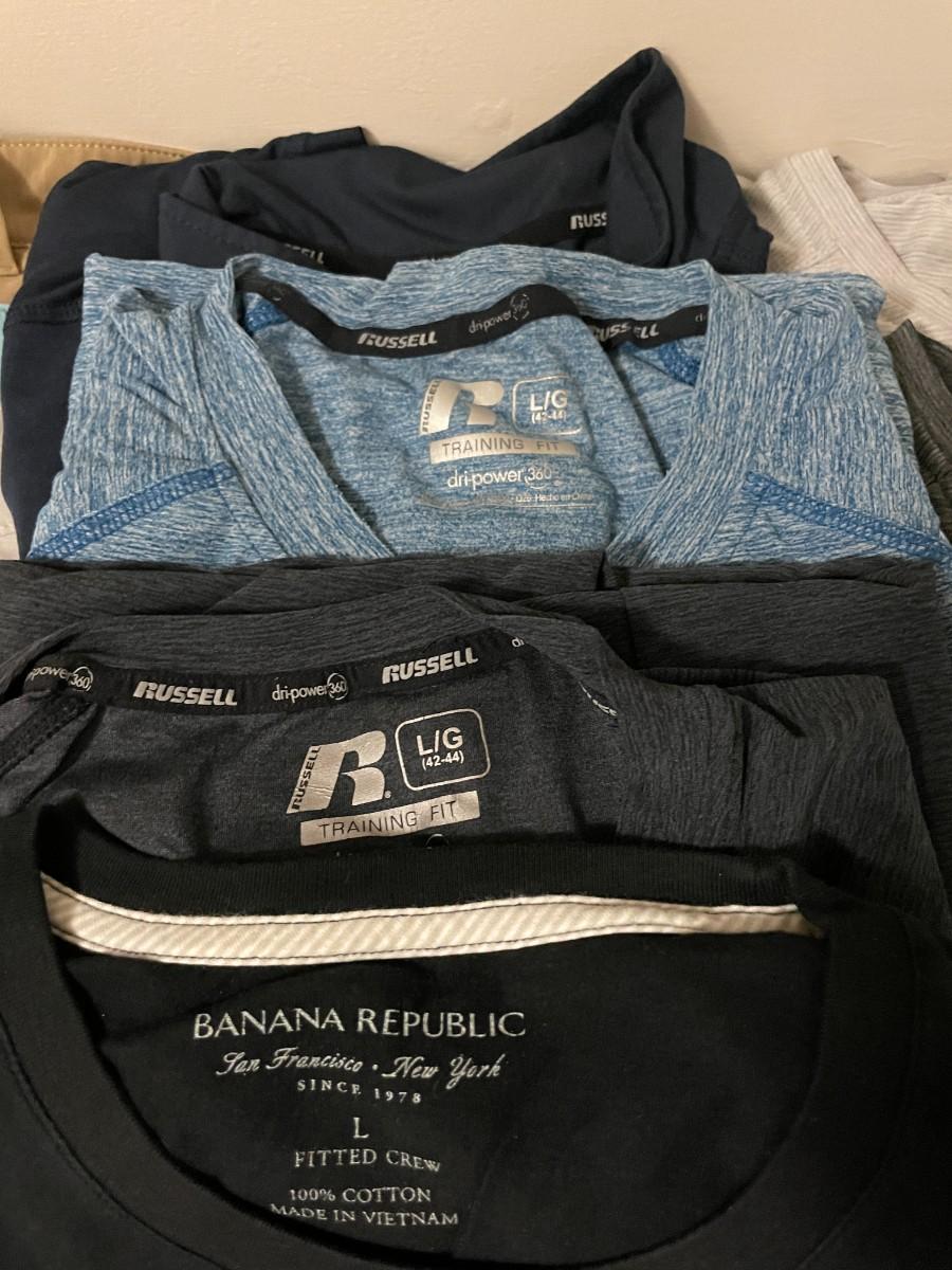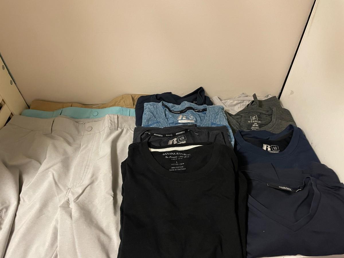 3 pr Ocean Coast Shorts 34", 8 Long Sleeve Tshirts Size L