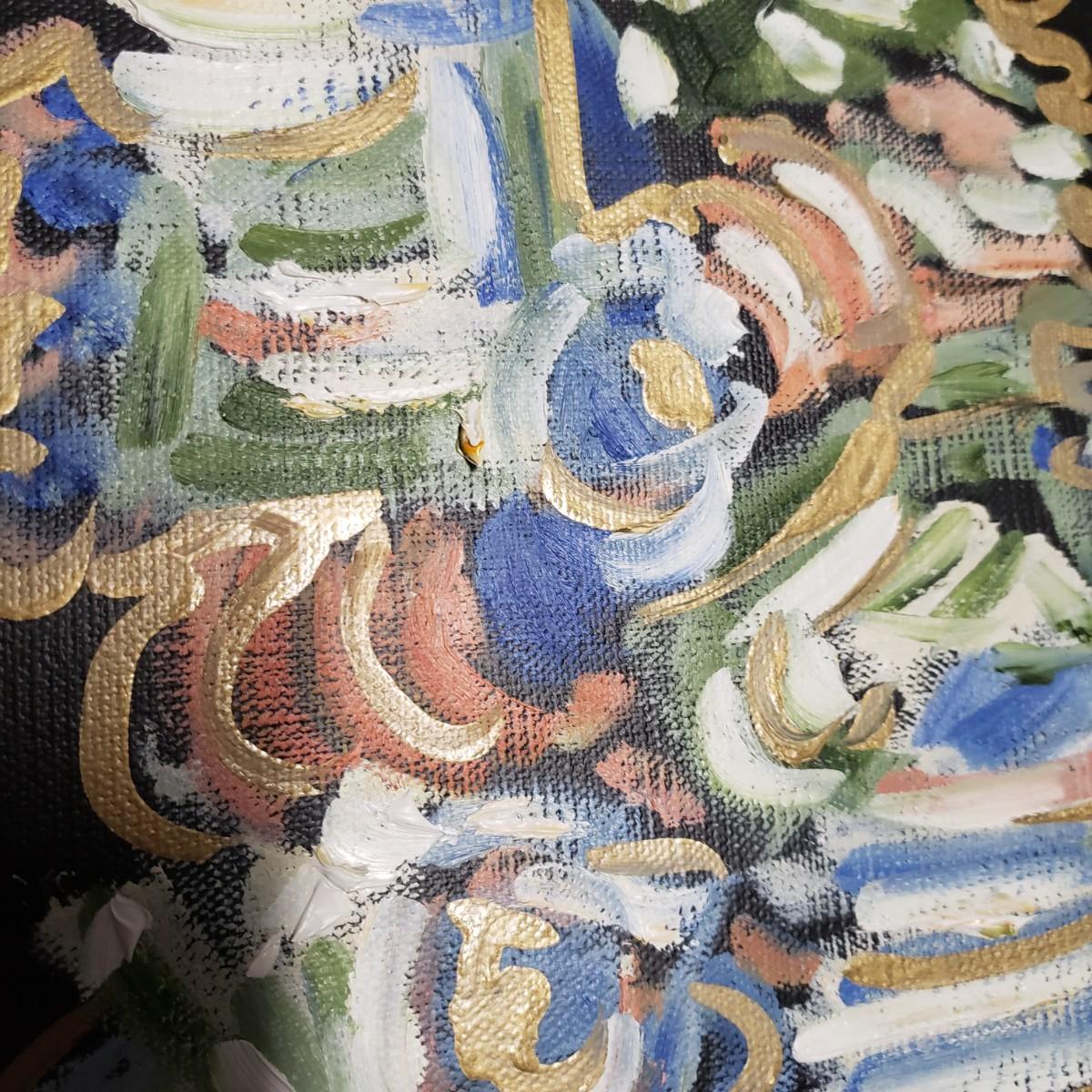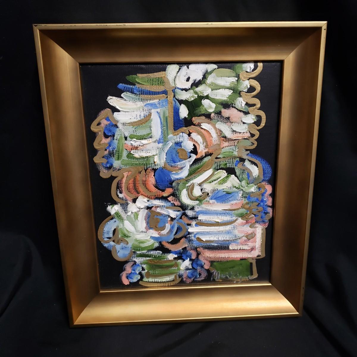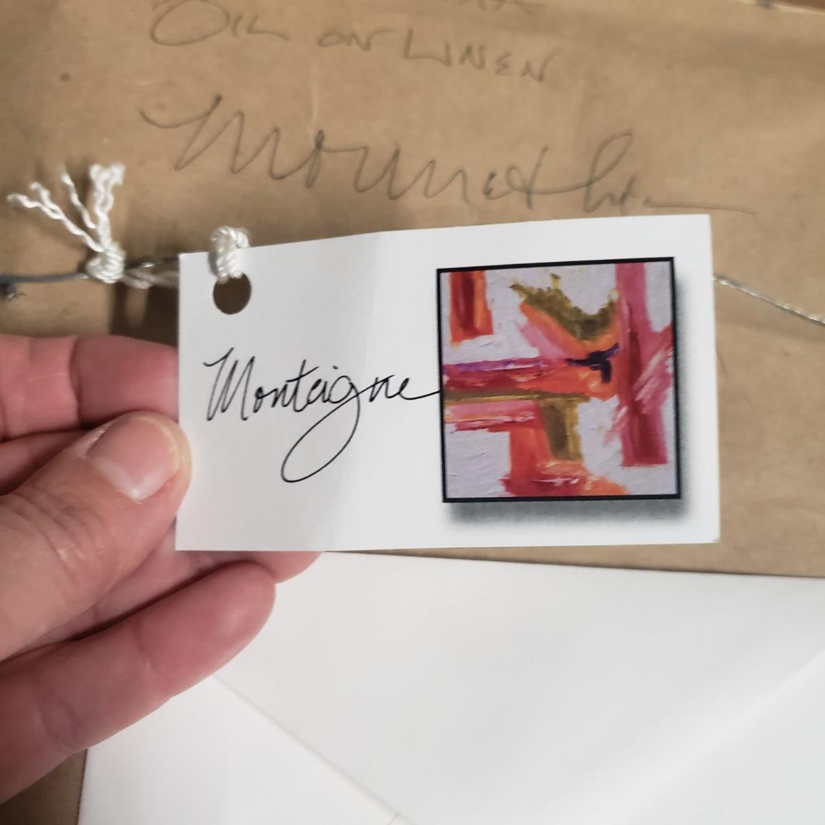 This appears to be an oil painting on linen called "Ocean Vista" by Monteigne Mathison. The gold wooden frame, without glass measures 10.5" x 12.5". The paint has a textured look to it.