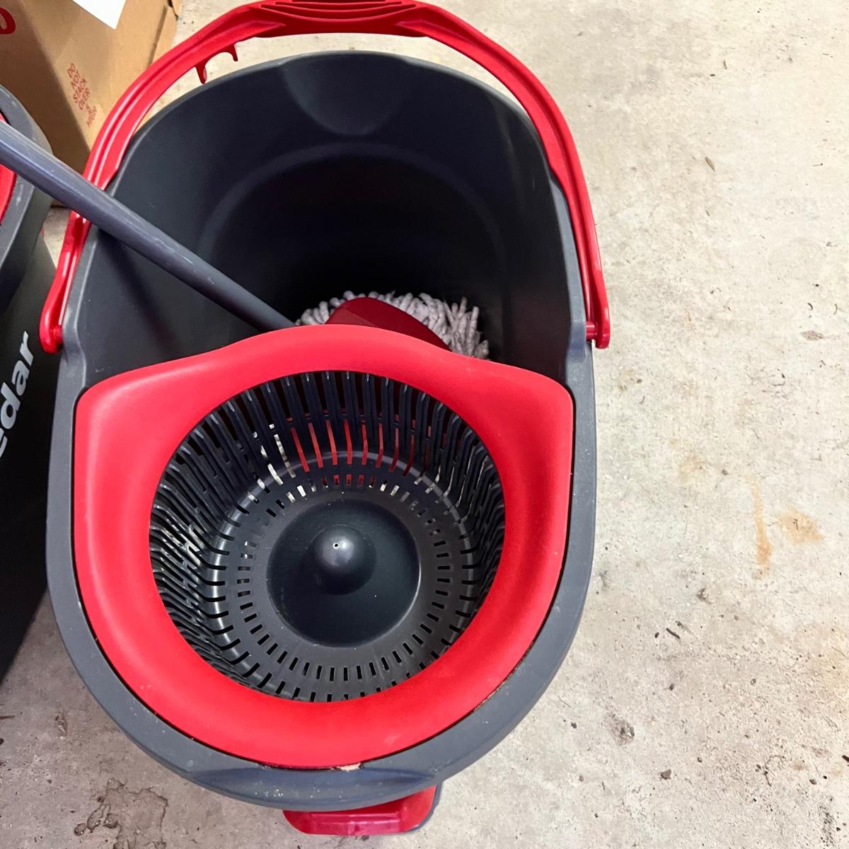 Two O’Cedar mops and buckets with the foot pedal for draining. There is tape on one of the mops that appears to be holding the adjustable part together. Works just fine.