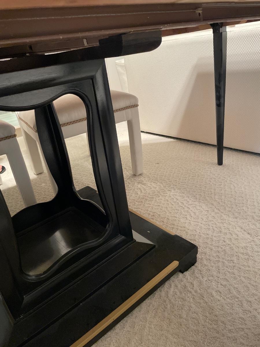 There is some staining on the bottom of the legs of chairs but this a very unique dining set and of good quality