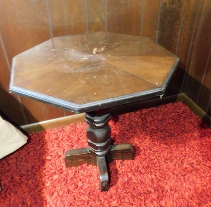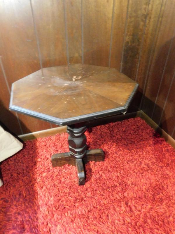 Octagonal Side Table has some wear to the finish. The table is sturdy.