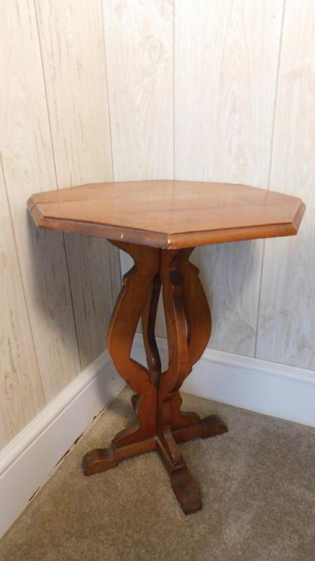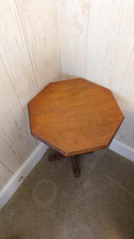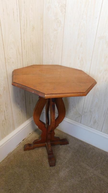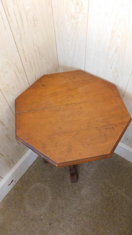 Octangonal Top Wood Side Table. Oak with some scratches and wear