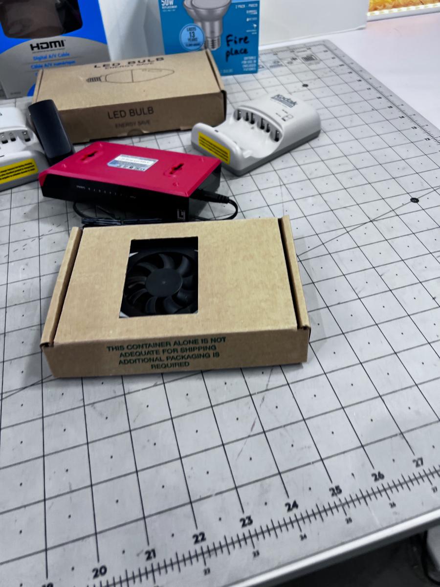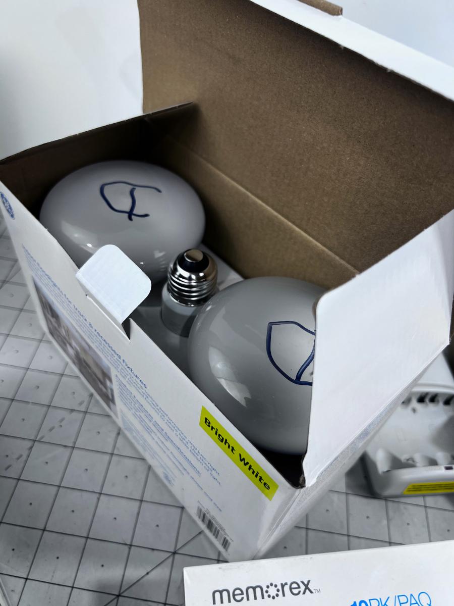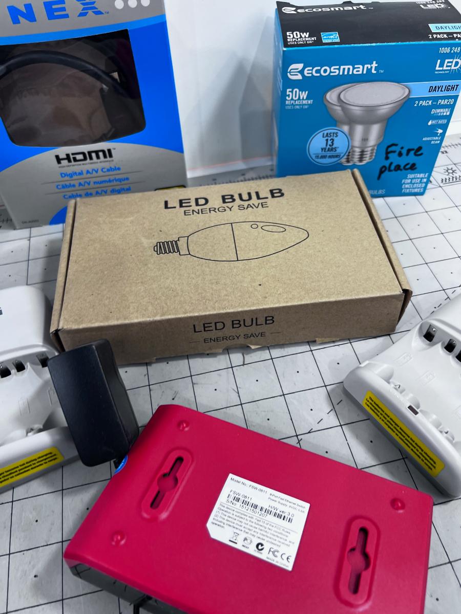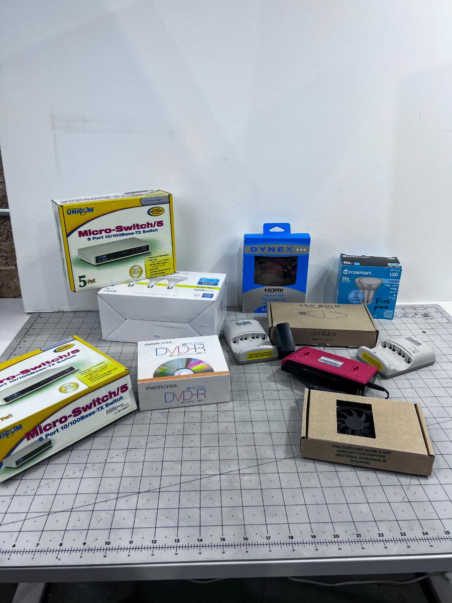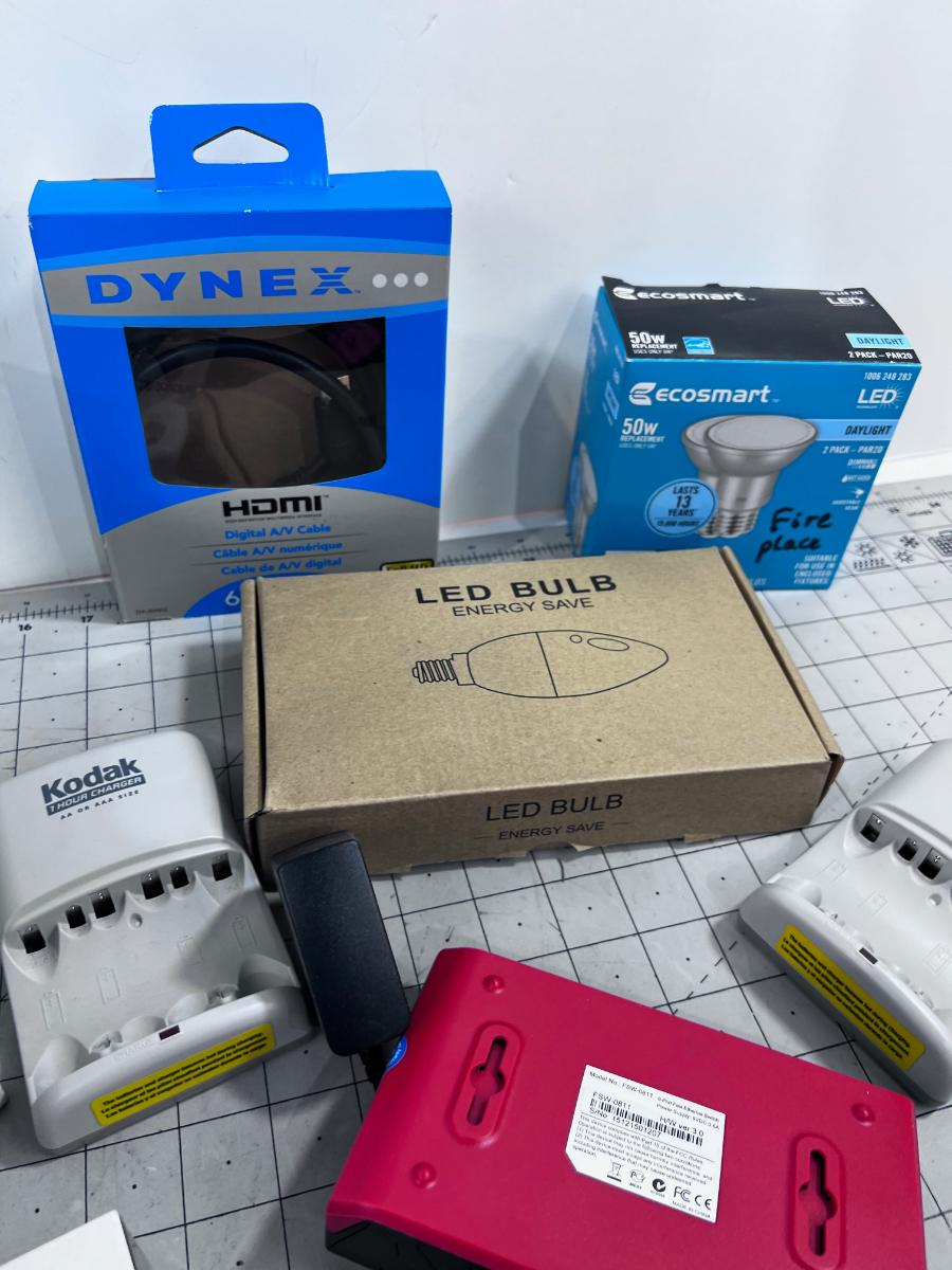 Odd Lot of Electronic Items: Bulbs, Switches, Charges
