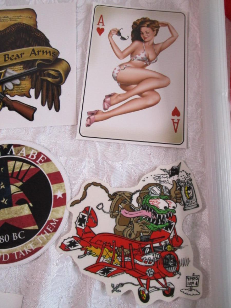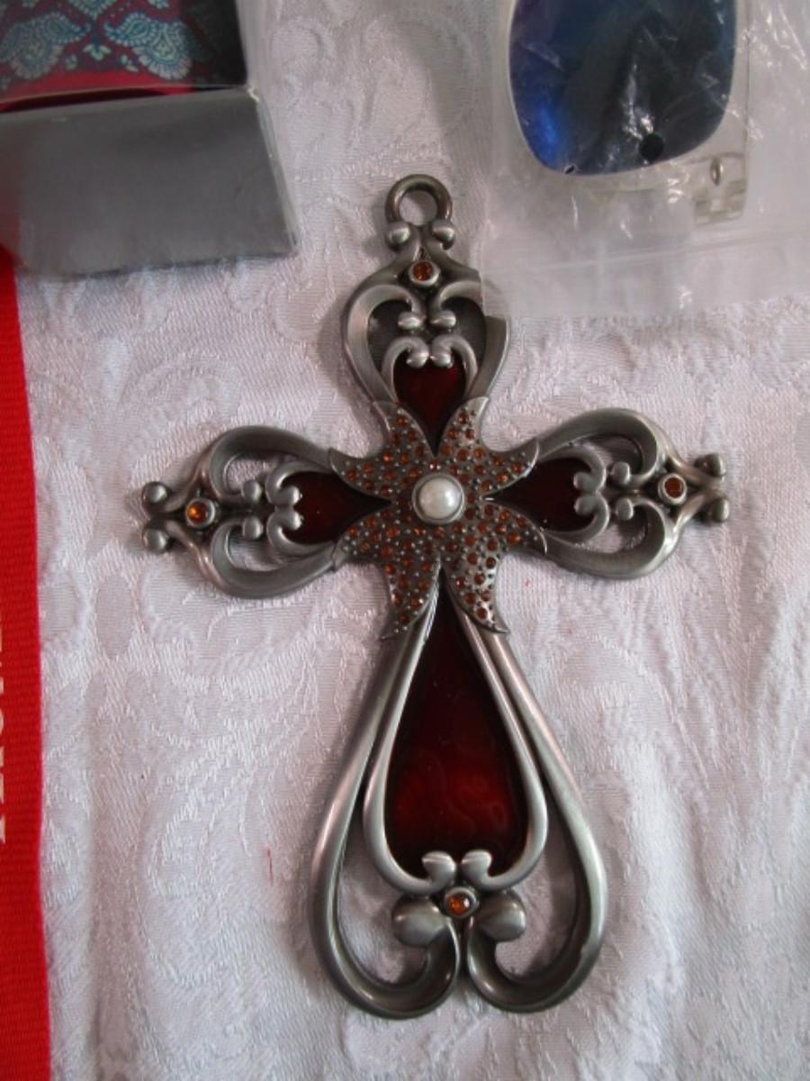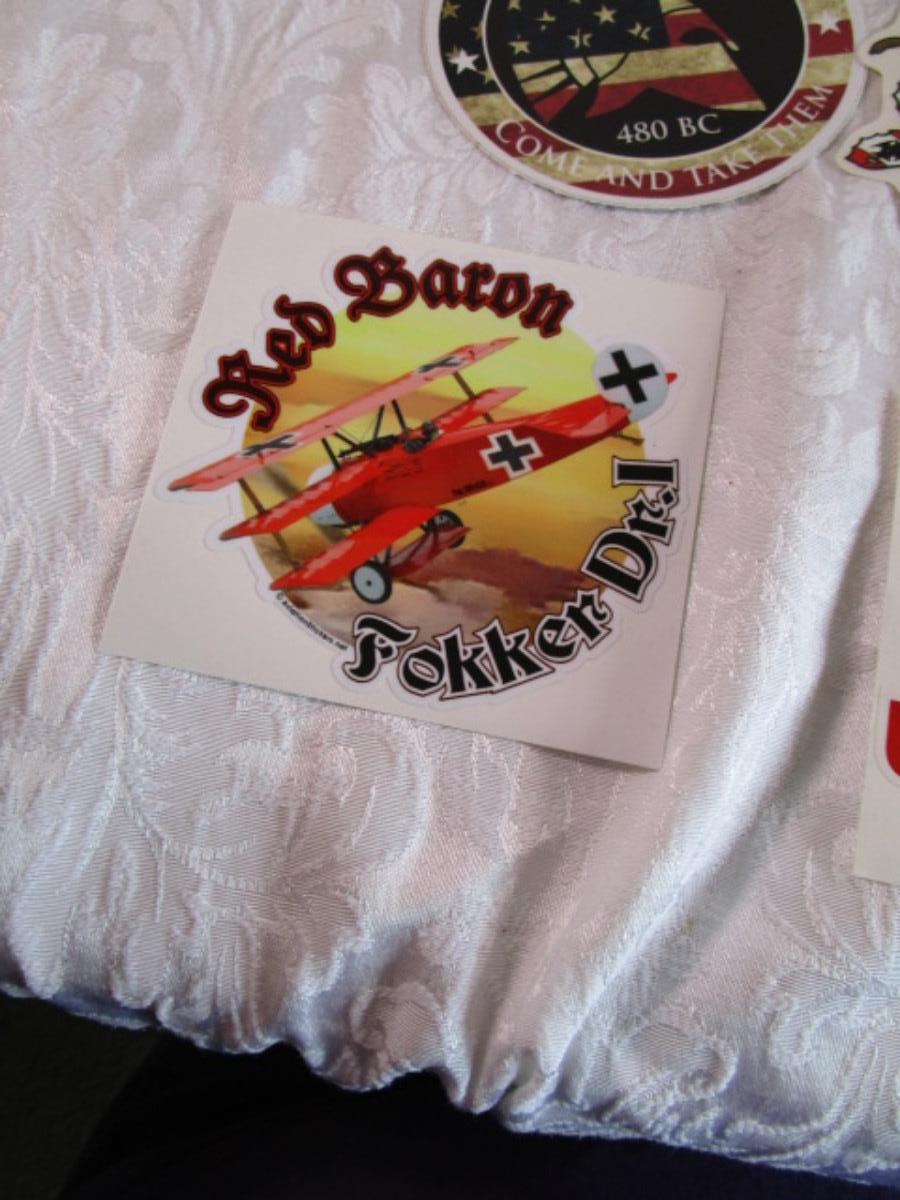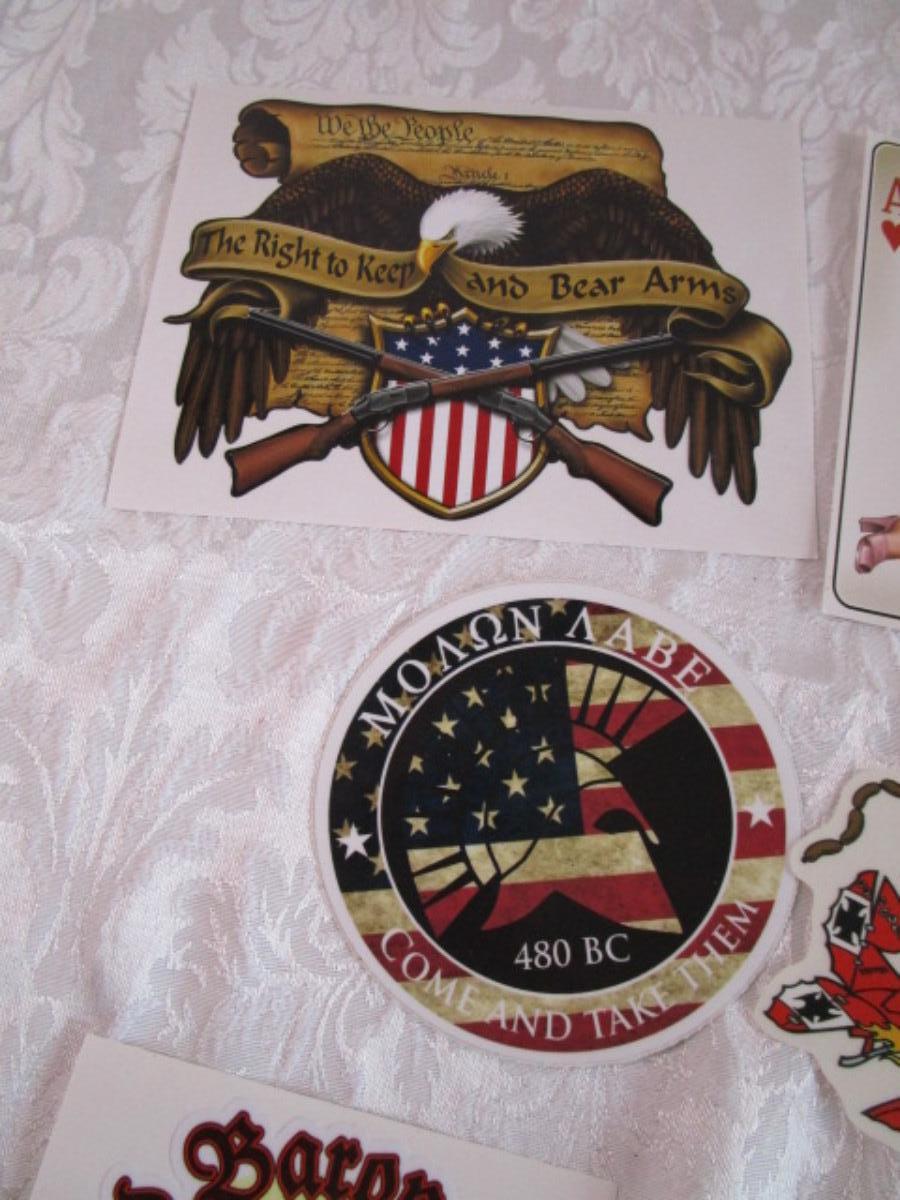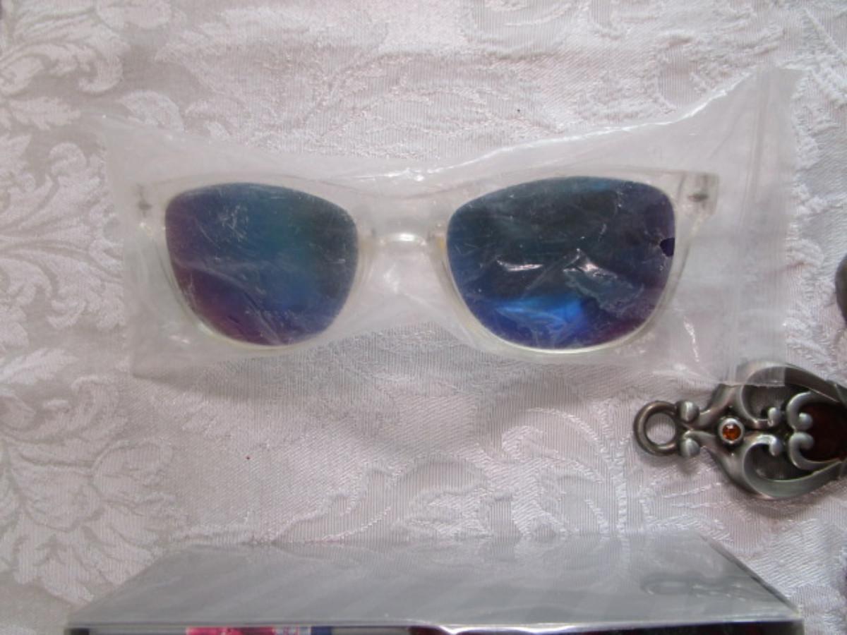 18" candle, 6 large stickers, 2020 Trump lanyard, metal cross, 1 pr sunglasses, 1 set of bookends, box of washi tape, 1 postcard