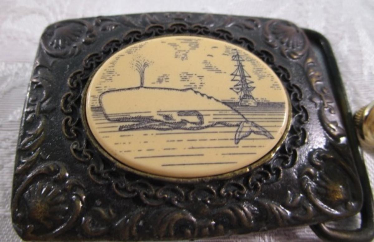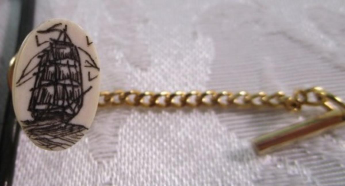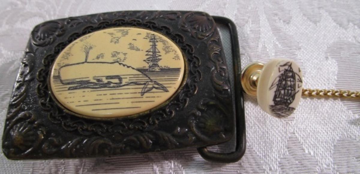 Oden belt buckle with whale, tie tac with ship