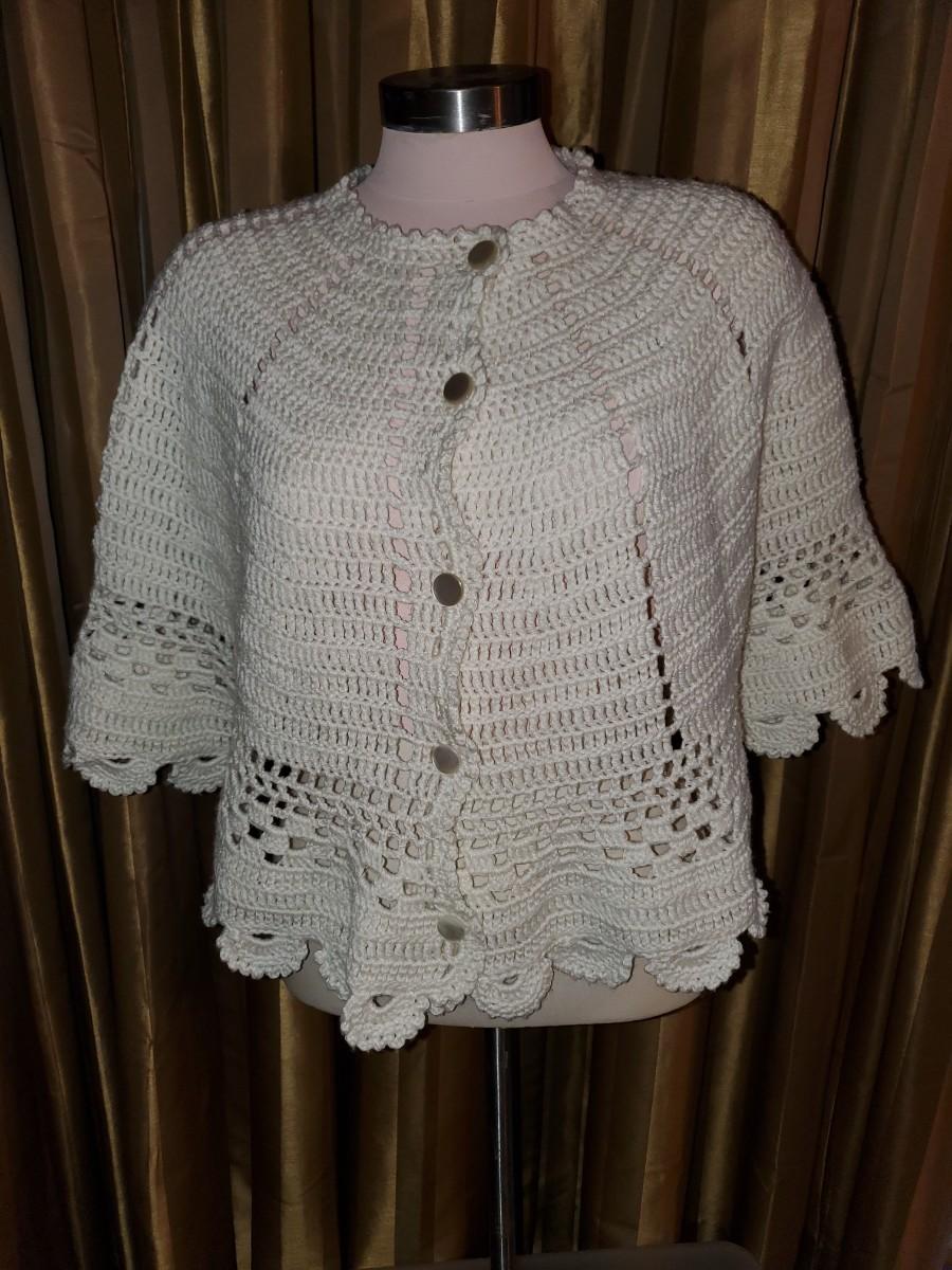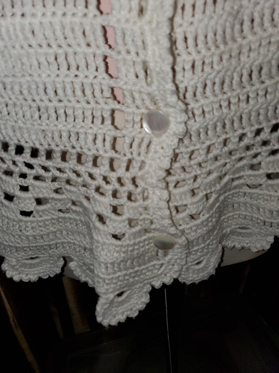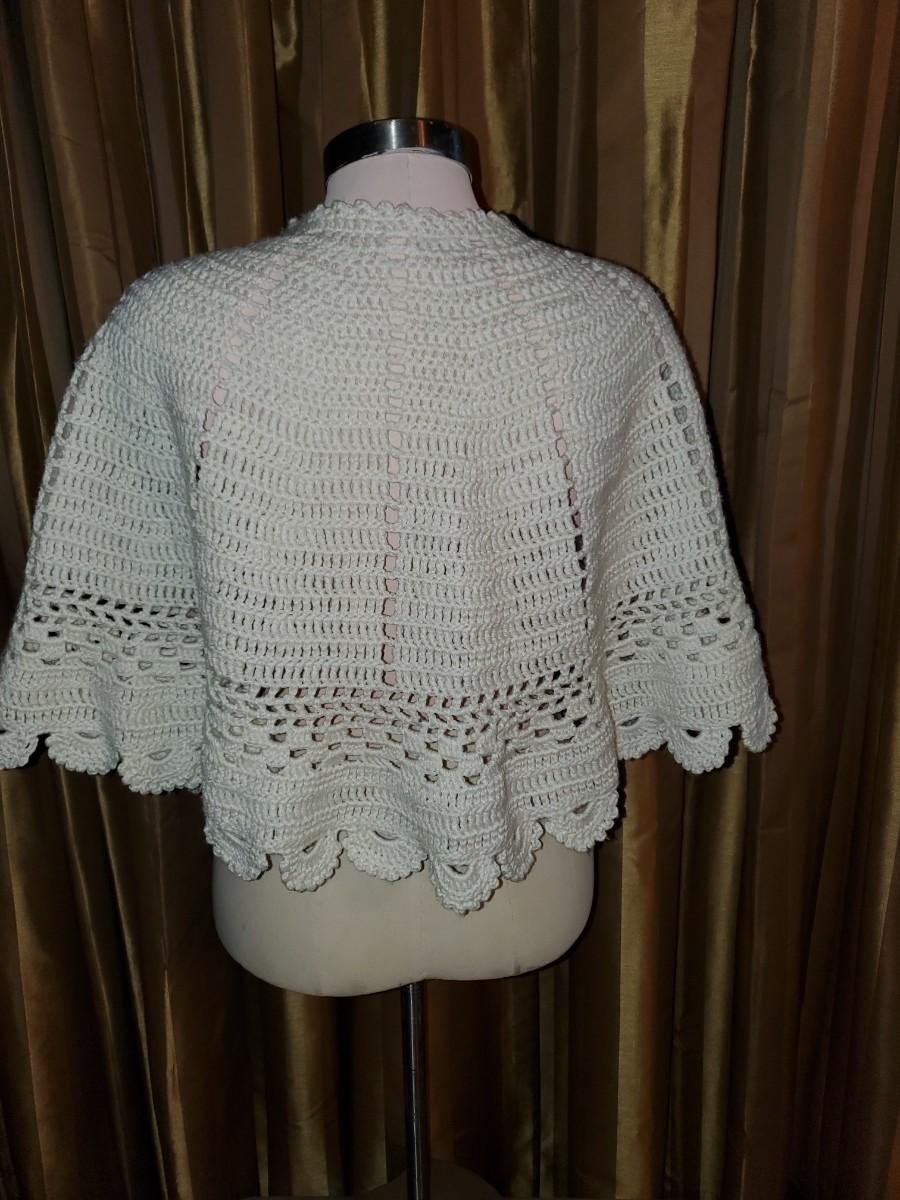 Vintage Hand Crocheted Off-White Cape w/ Buttons No size or tags. Thread feels like it has some wool in the yarn. No size marking but seems like a small to medium.