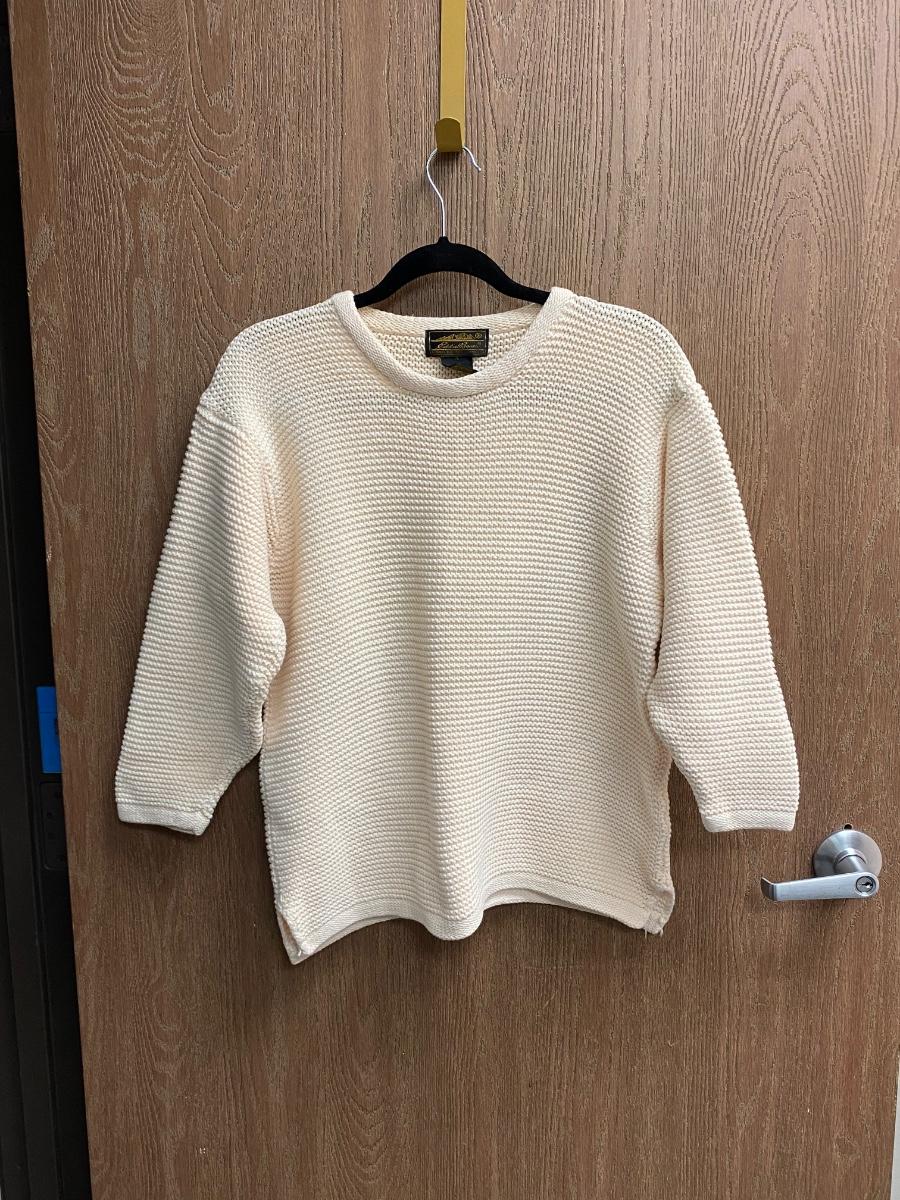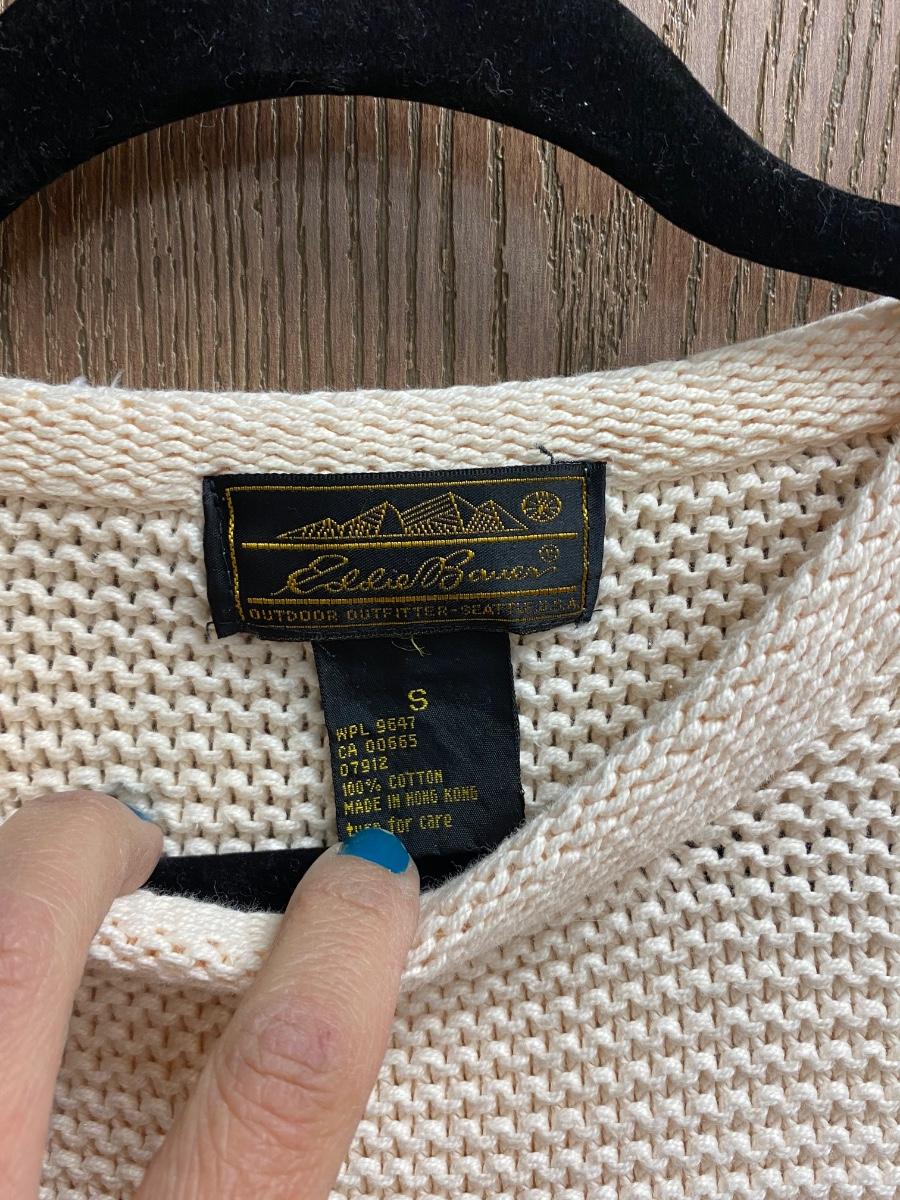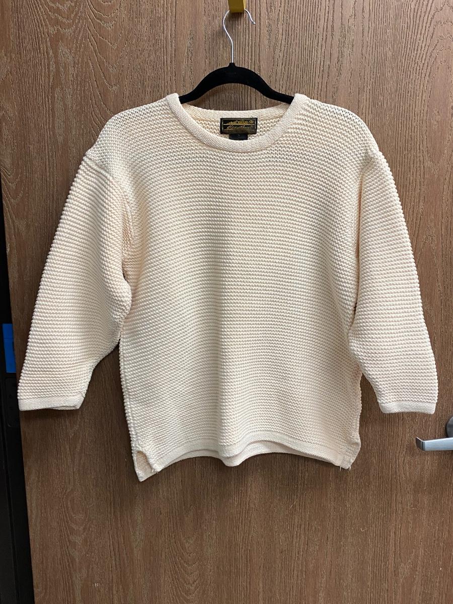 Off white thick knit sweater from Eddie Bauer. Size small. Good conditon.