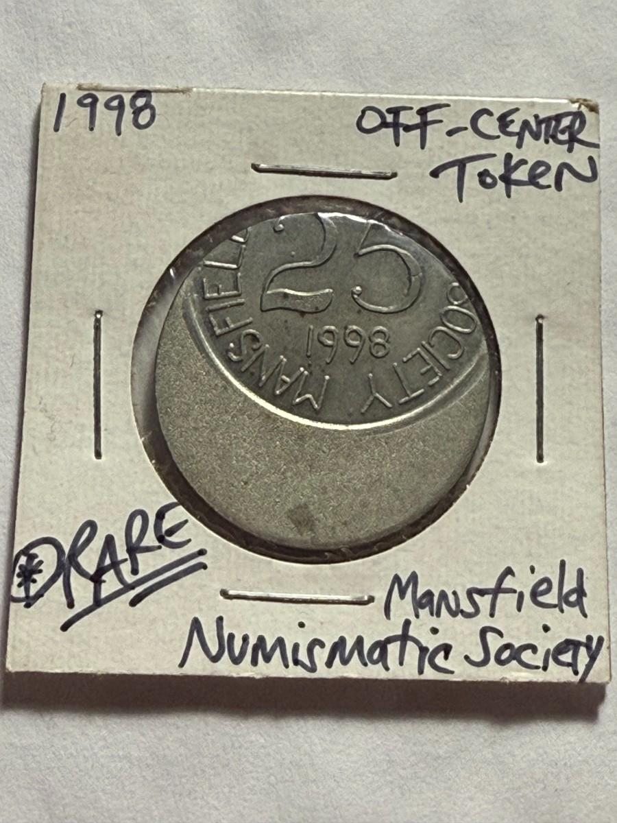 OFF-CENTER ERROR 1998 MANSFIELD SOCIETY NUMISMATIC TOKEN AS PICTURED. $5 DOMESTIC SHIPPING.