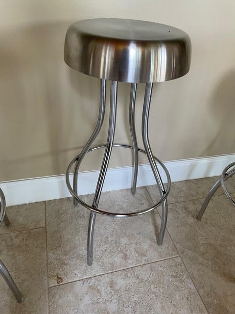 Heavy steel construction. By Offi. Measurements: Seat: 12.5" diameter, base is 15" wide, 30 1/2" high