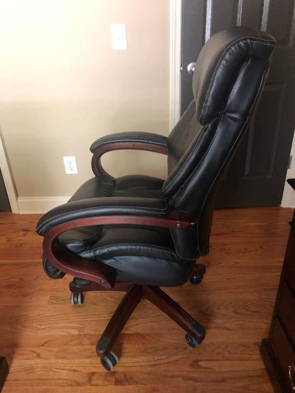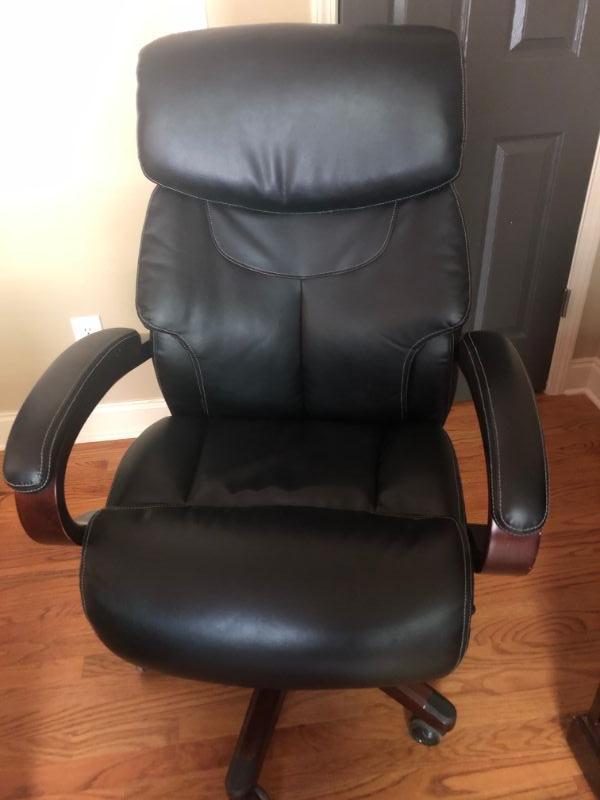 Black, large - seat is 18" deep and chair itself is 19" across.