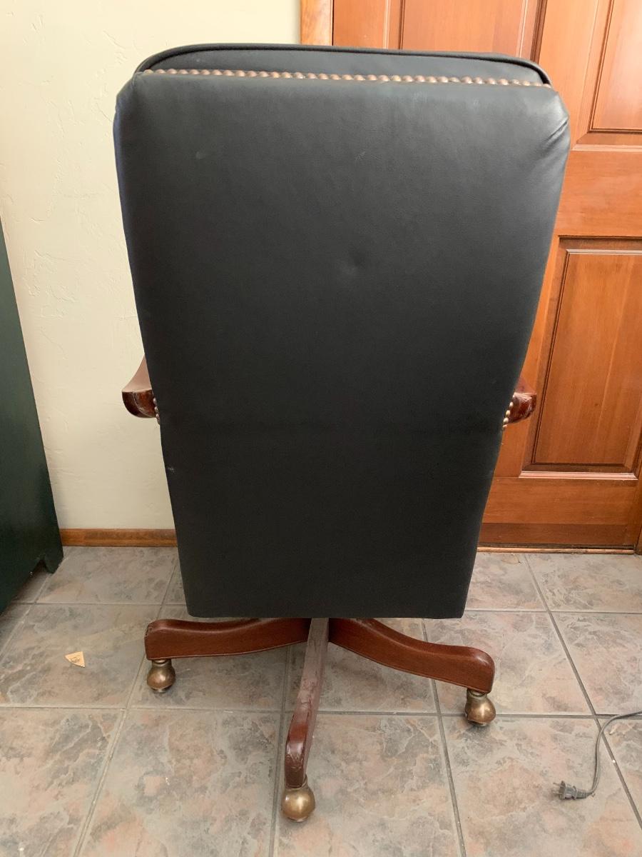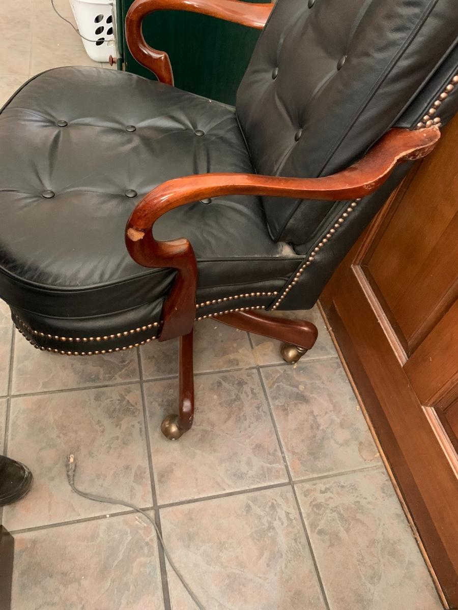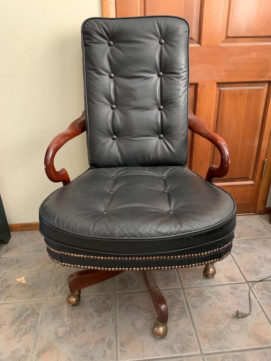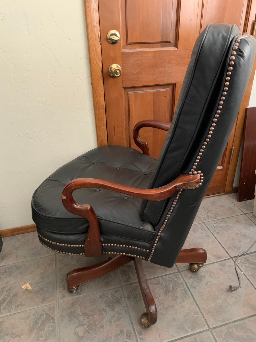 Vinyl office chair in good condition. (43 inches in height, seat height- 20 inches, seat depth- 20 inches, seat width- 26 inches)