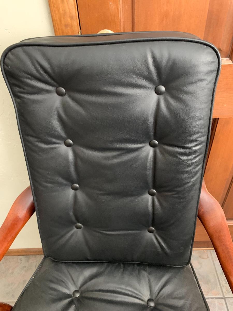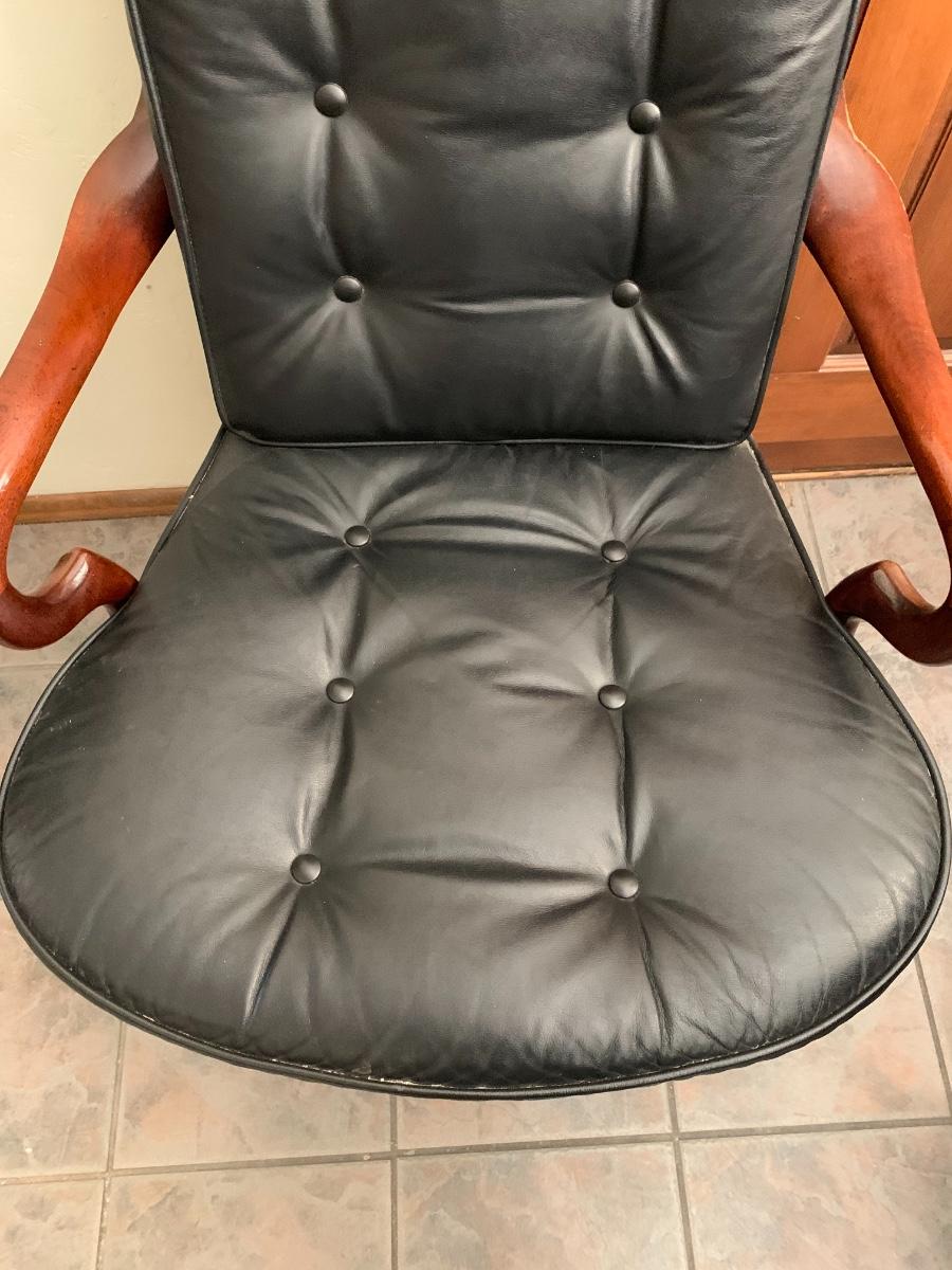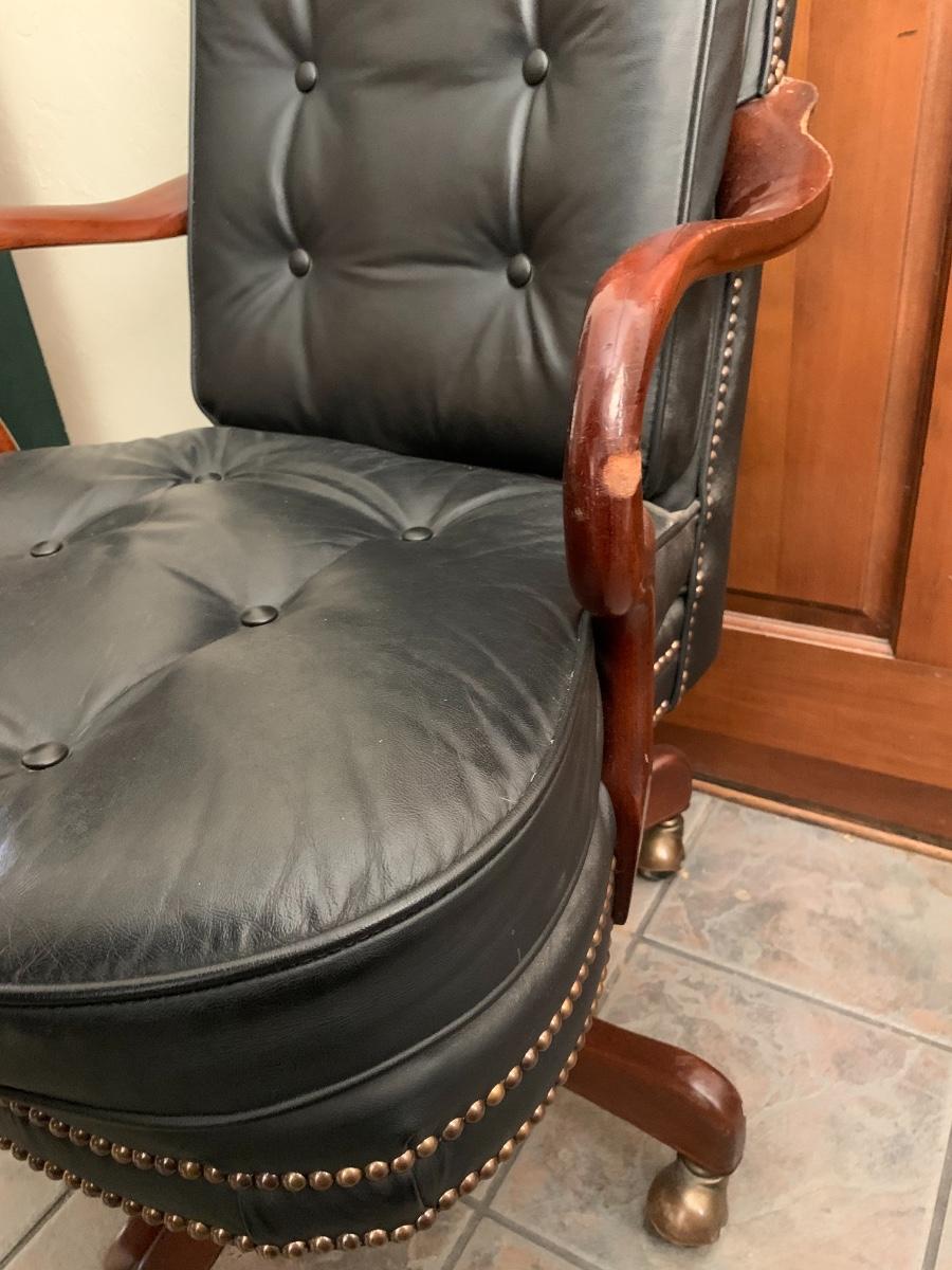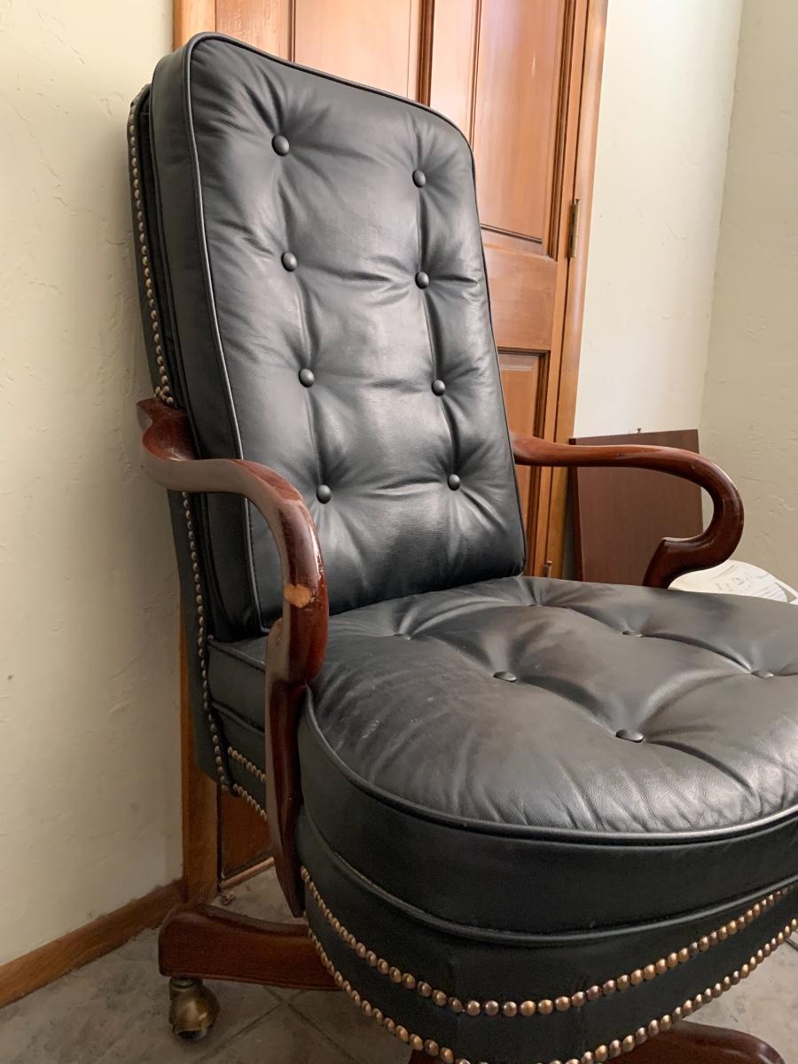 Vinyl office chair in good condition. (43 inches in height, seat height- 20 inches, seat depth- 20 inches, seat width- 26 inches)
