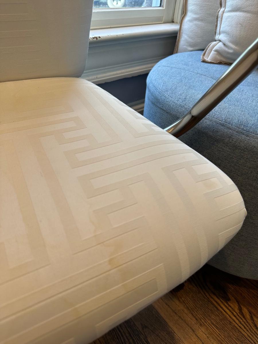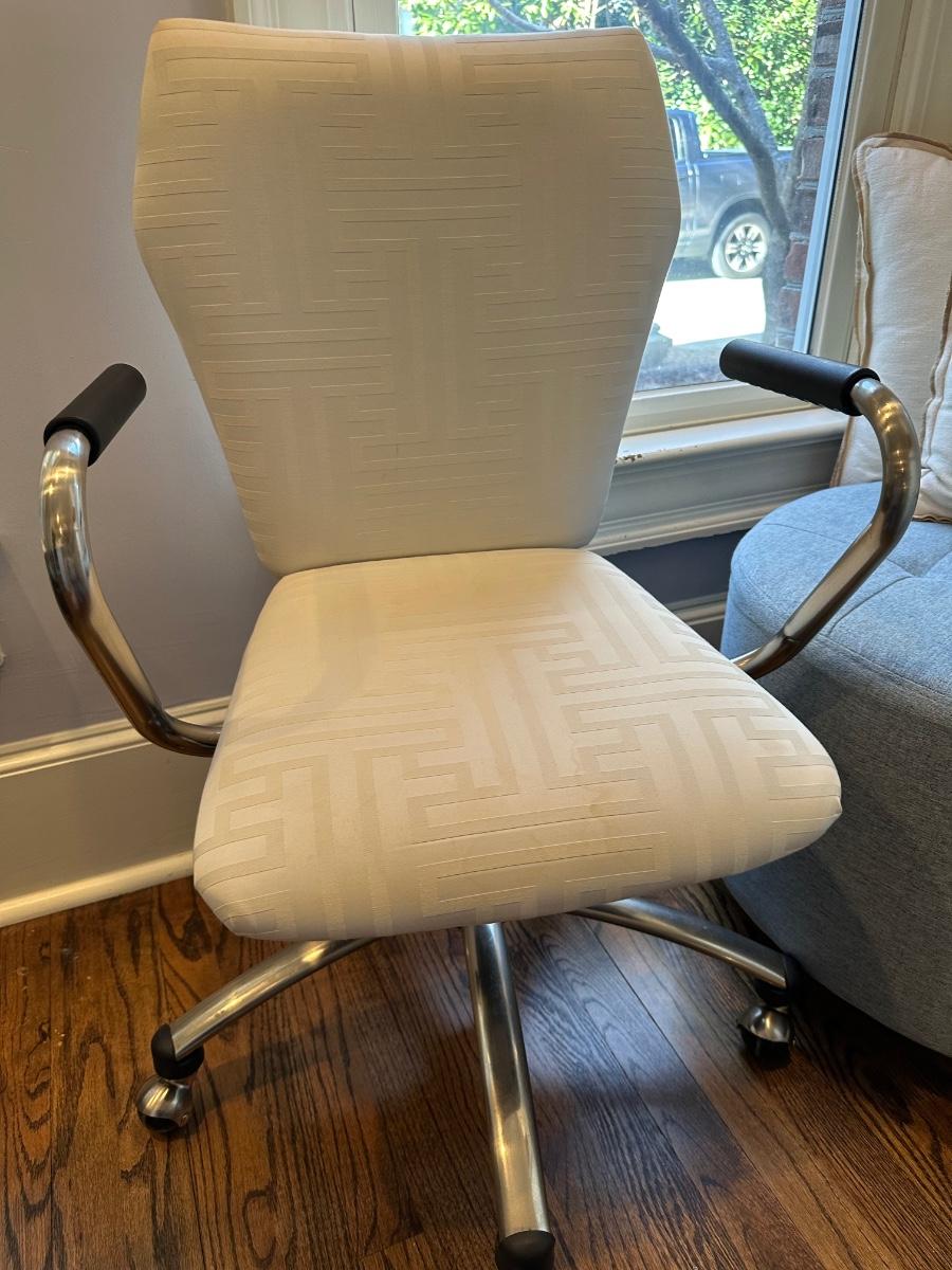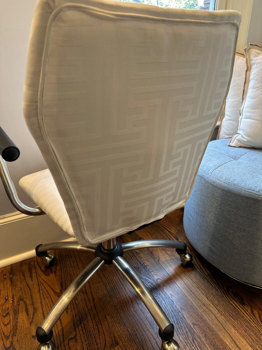 OFFICE CHAIR(MINOR STAINS), BLUE OTTOMAN, PILLOW PAIR