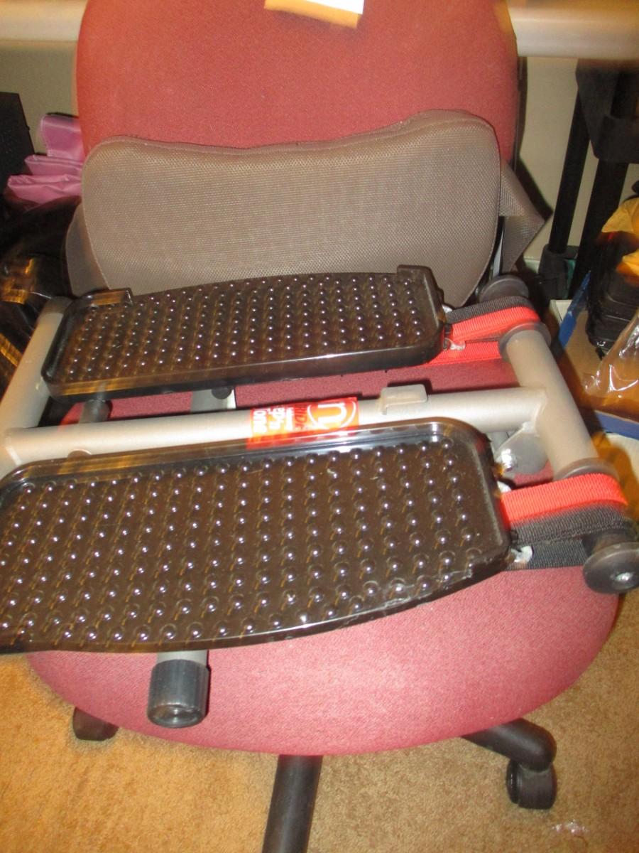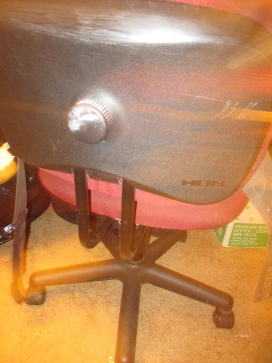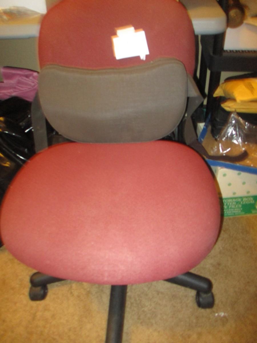 Burgundy armless office chair-adjustable. Back cushion. Step and tone