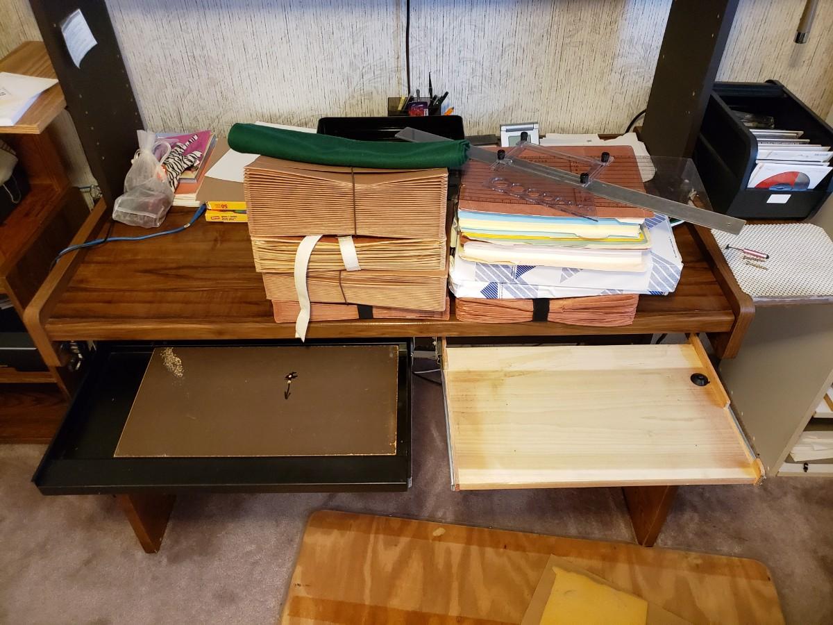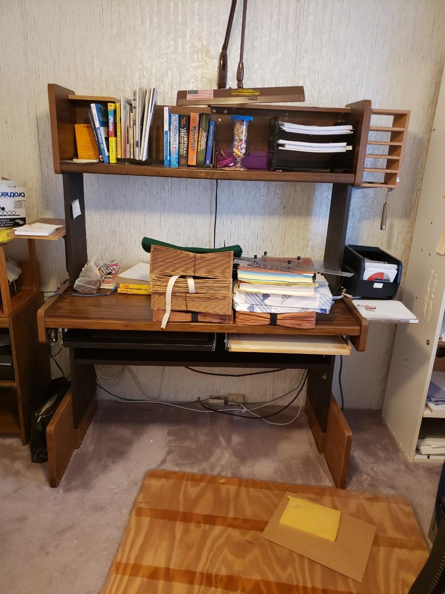 Office desk measures 49x27x63. Contents not included. Desk has been modified in several places to add peripherals.