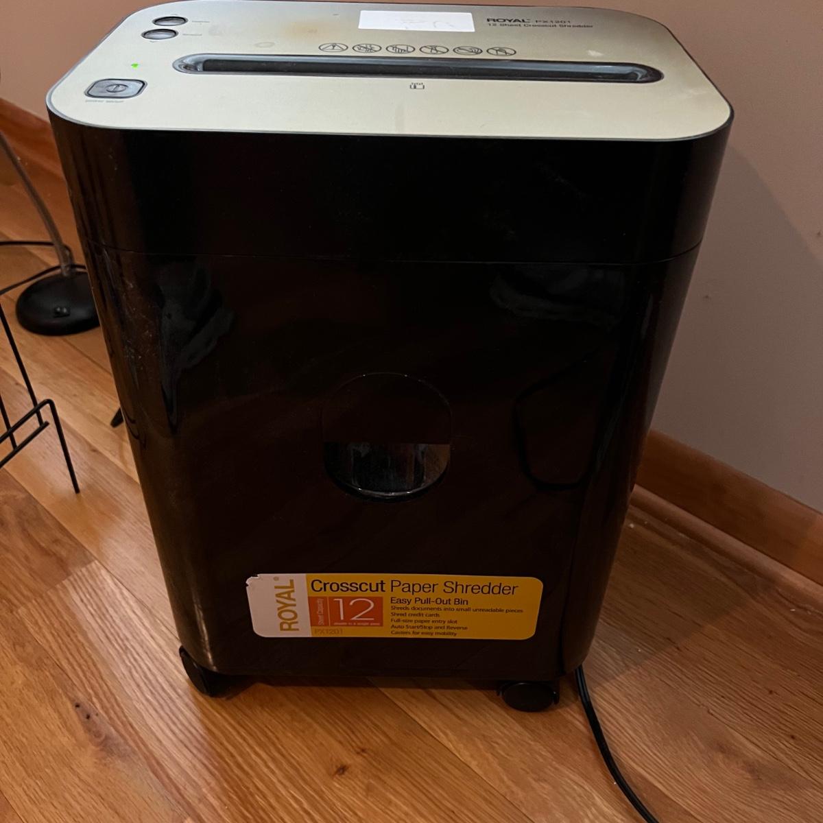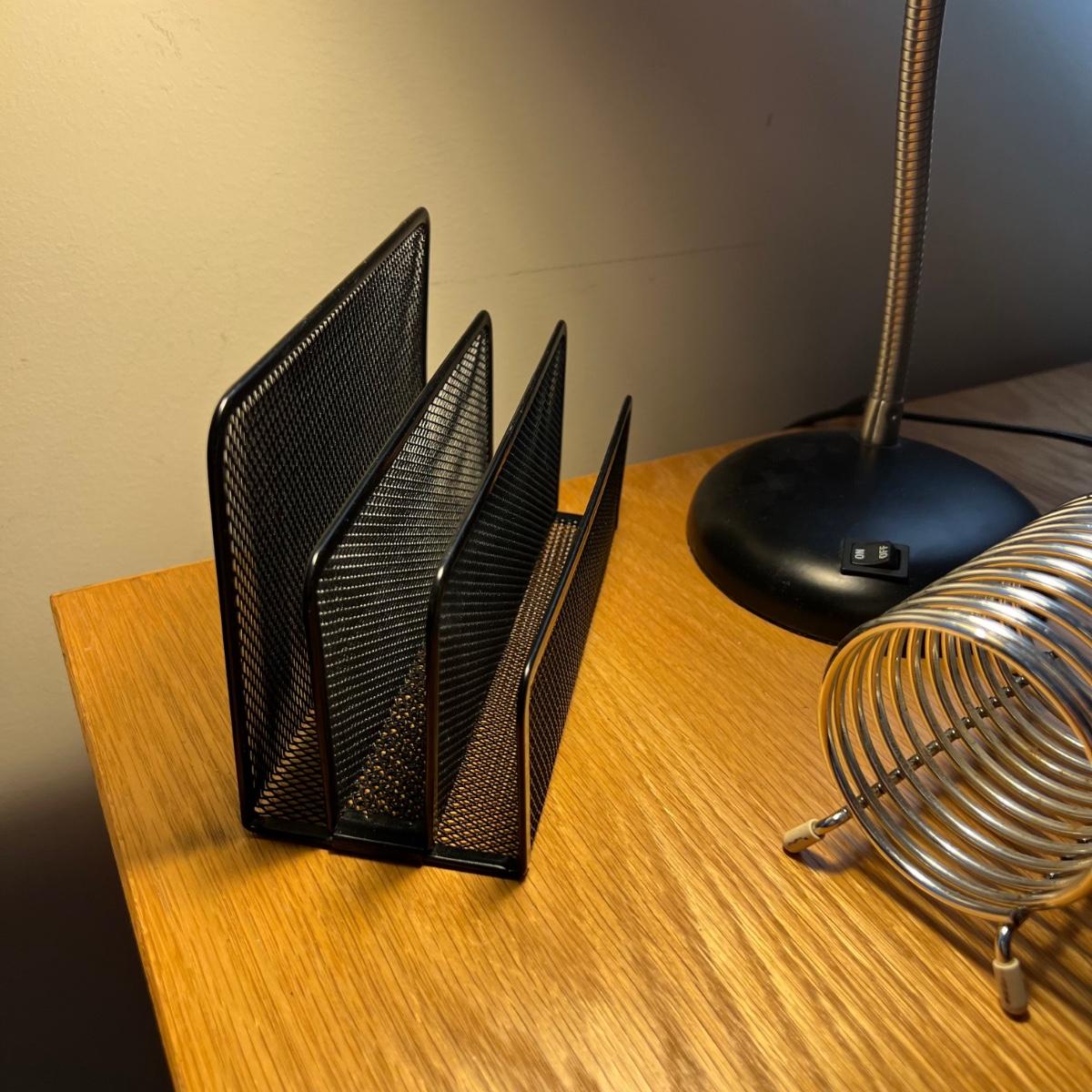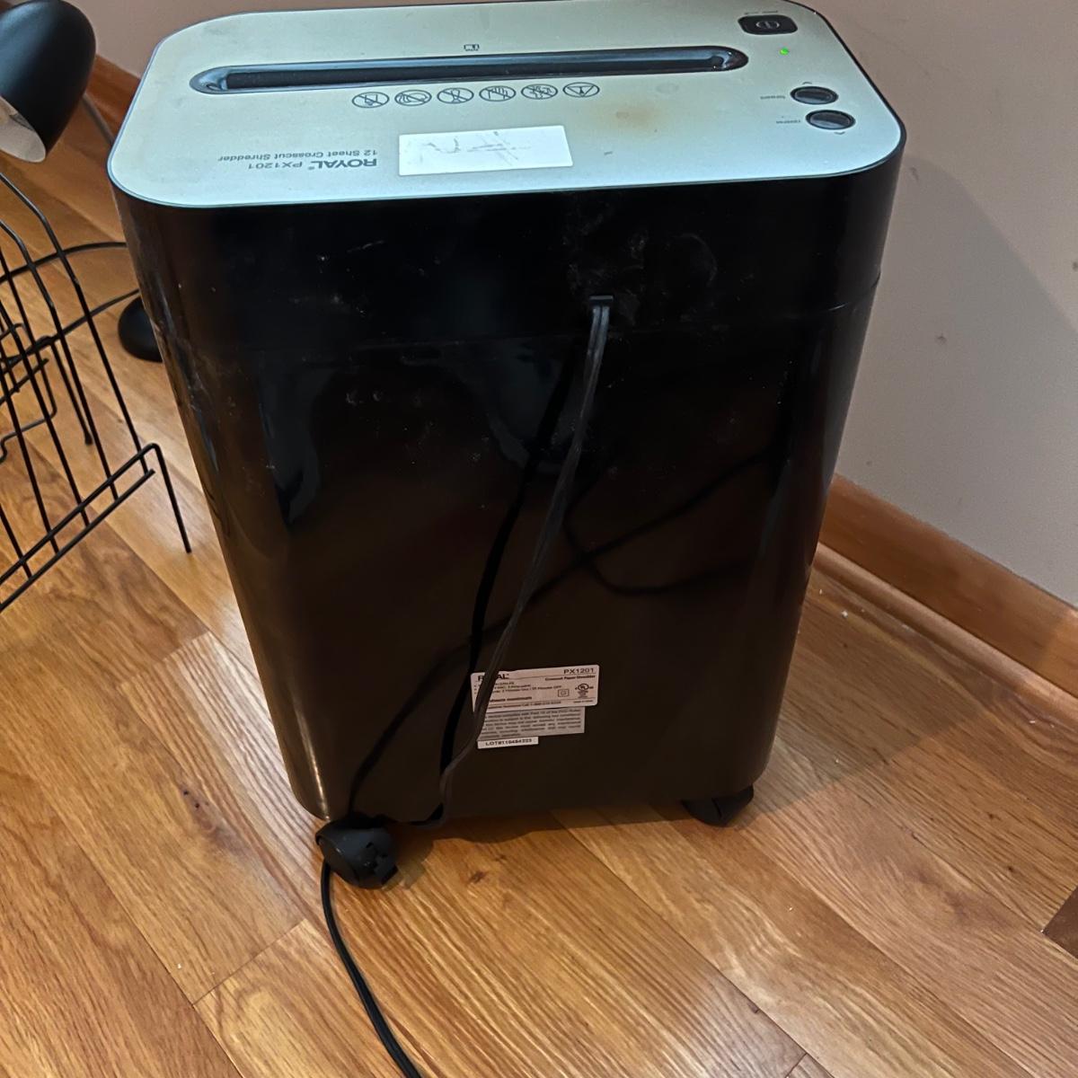 Everything you need for a well equipped home office. Paper shredder, wall clock, electric pencil sharpener, file holders, desk light, inbox, PC speakers and desk set. The Insignia speakers are 2.25” x 3.5”D x 7”H. Lamp, shredder, pencil sharpener powered on when plugged in, the speakers and clock (needs one AA battery) were not tested. Local pick up only.