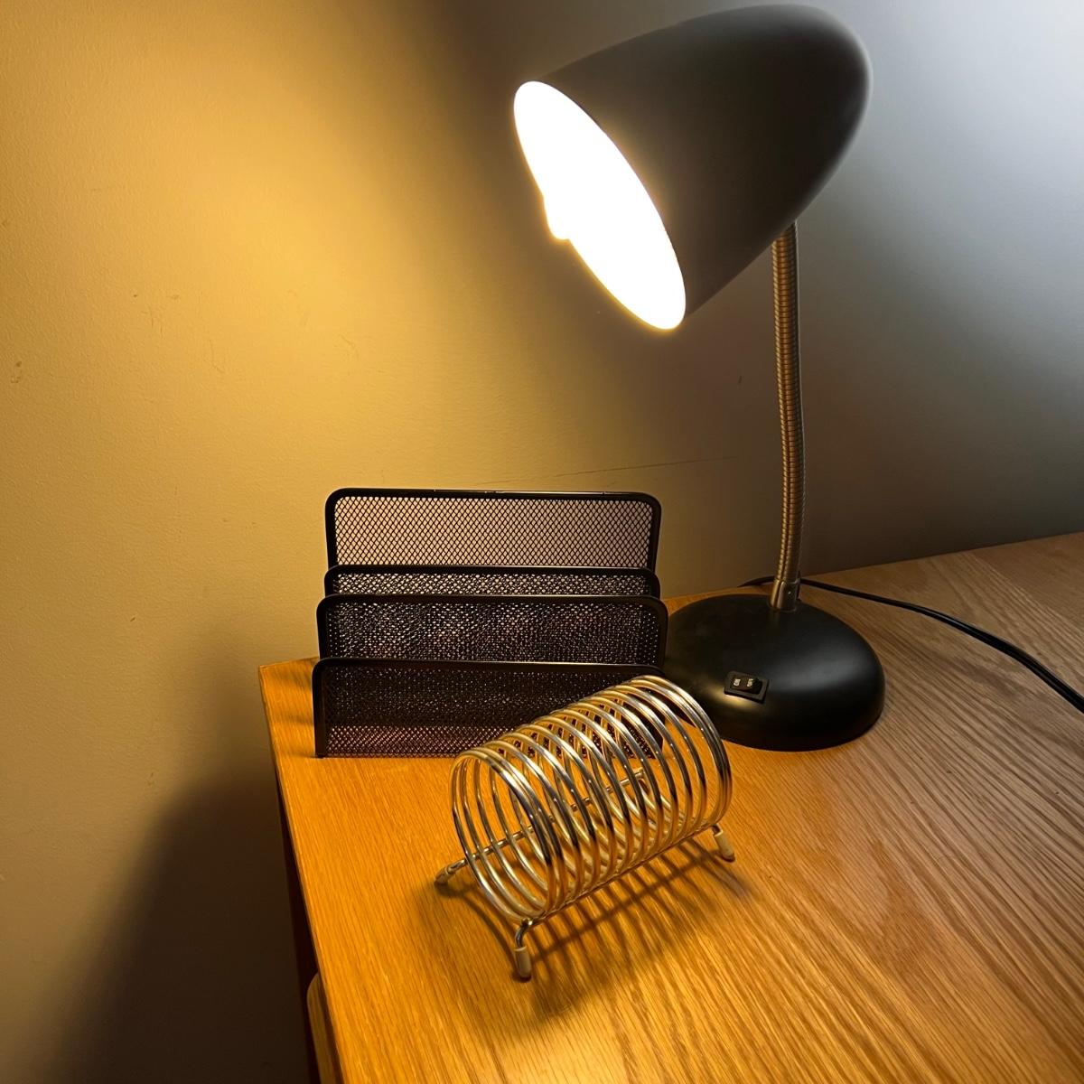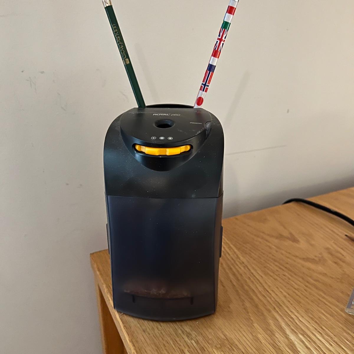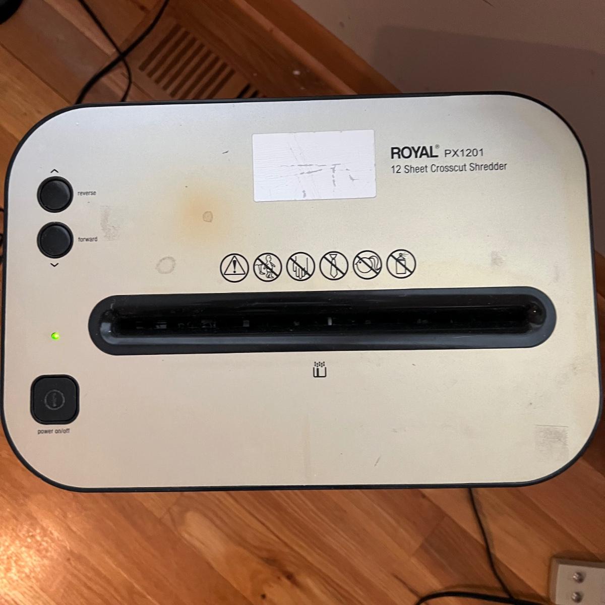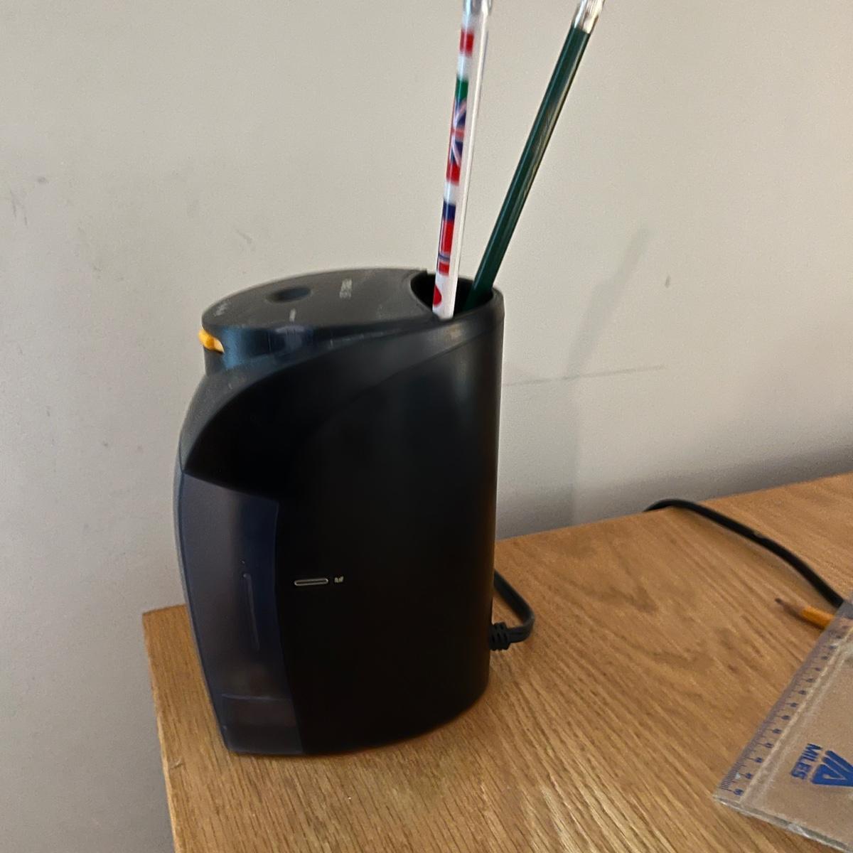 Everything you need for a well equipped home office. Paper shredder, wall clock, electric pencil sharpener, file holders, desk light, inbox, PC speakers and desk set. The Insignia speakers are 2.25” x 3.5”D x 7”H. Lamp, shredder, pencil sharpener powered on when plugged in, the speakers and clock (needs one AA battery) were not tested. Local pick up only.