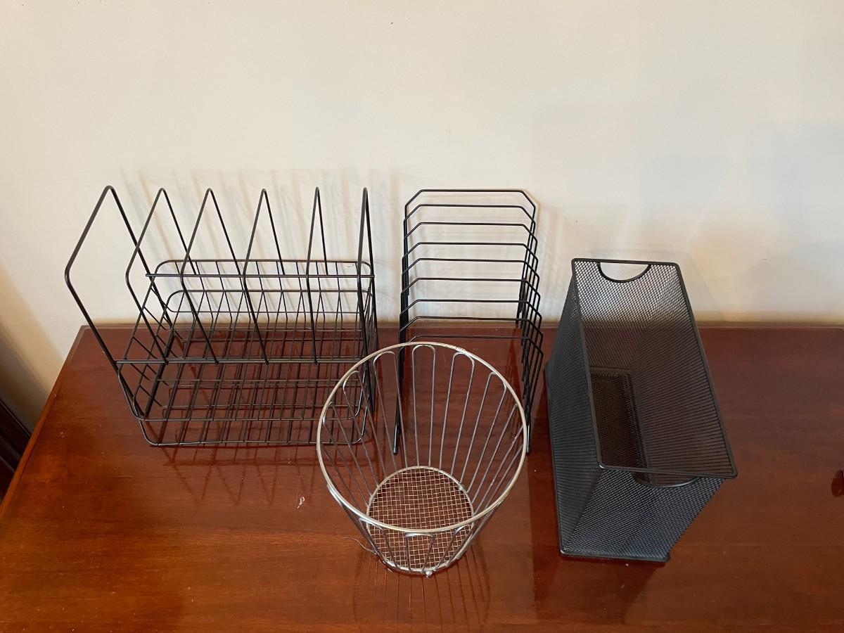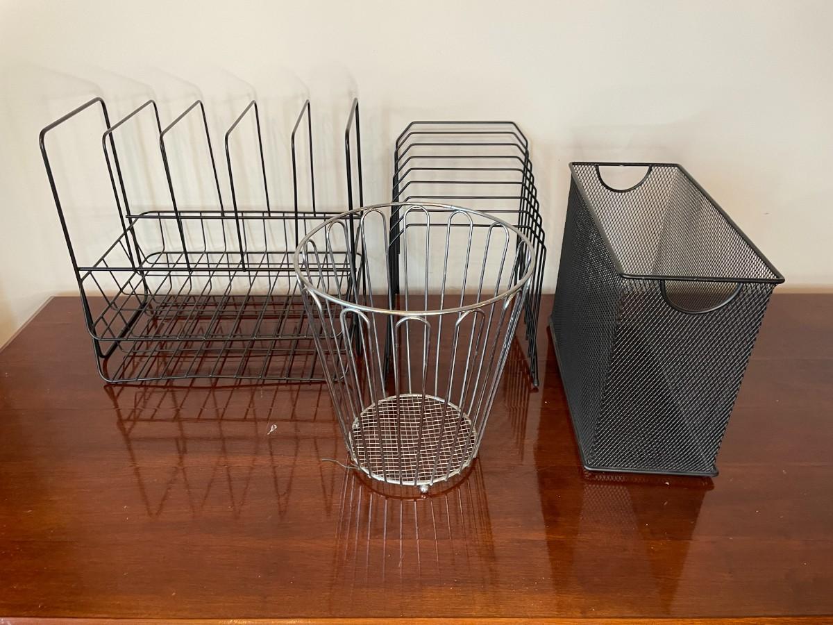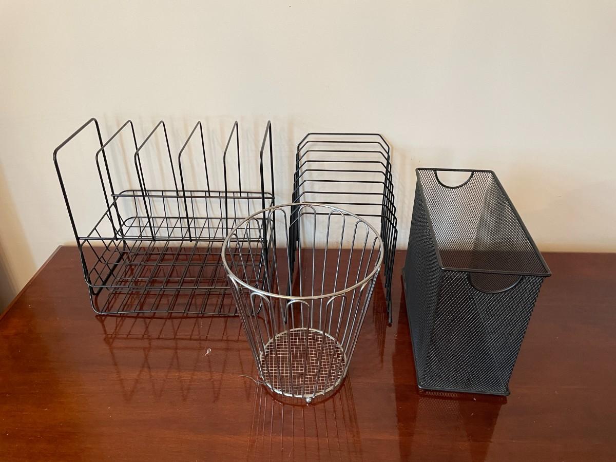 Small Metal Trash Can, Paper and file organizers. 4 items total