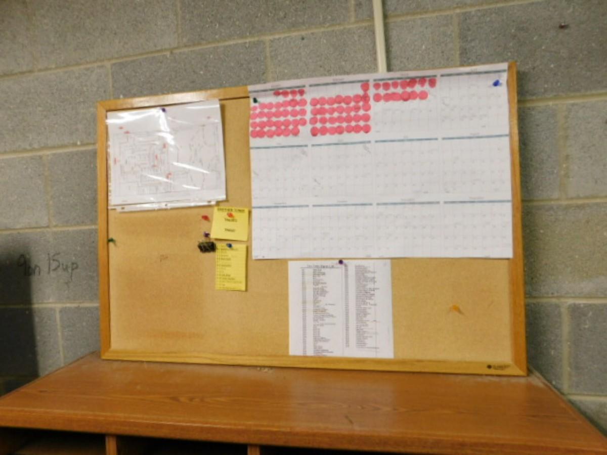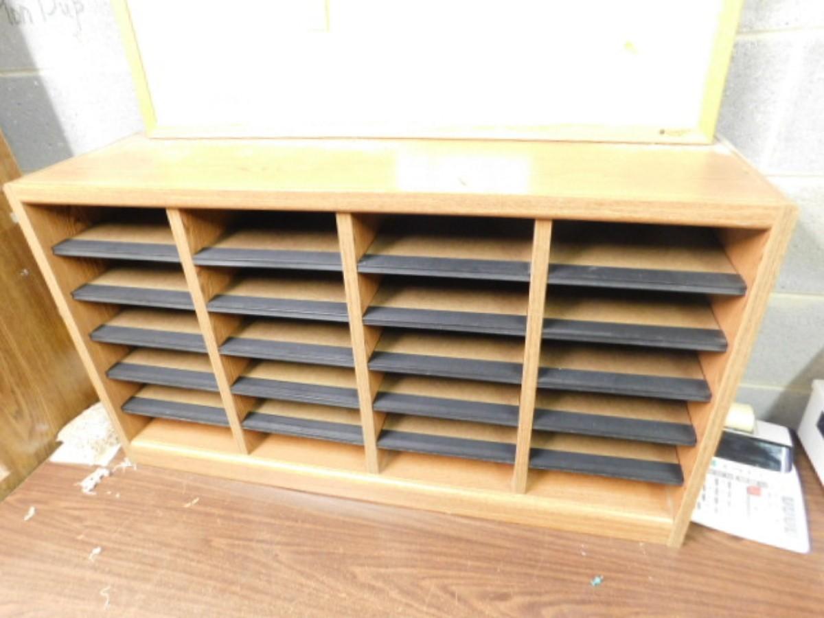 Office Pigeon Hole Box and Cork Board Expect some wear or scratches to finish. Shipping option available via freight or local mover at Buyer's expense. Buyer must have all shipping scheduled within the stated dates and times of pickup. Recommended local mover is Beaty Bros. Moving 828-201-2982