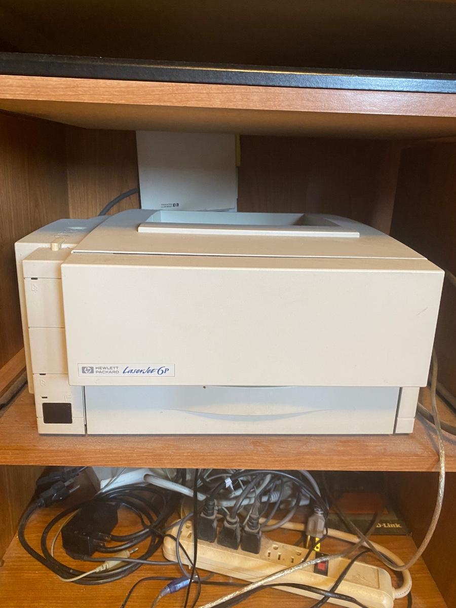 Office printer cabinet plus Epson XP-330, Panamax UF-560 and Hewlett-Packard Laserjet 6P. 35" x 20" x 30"