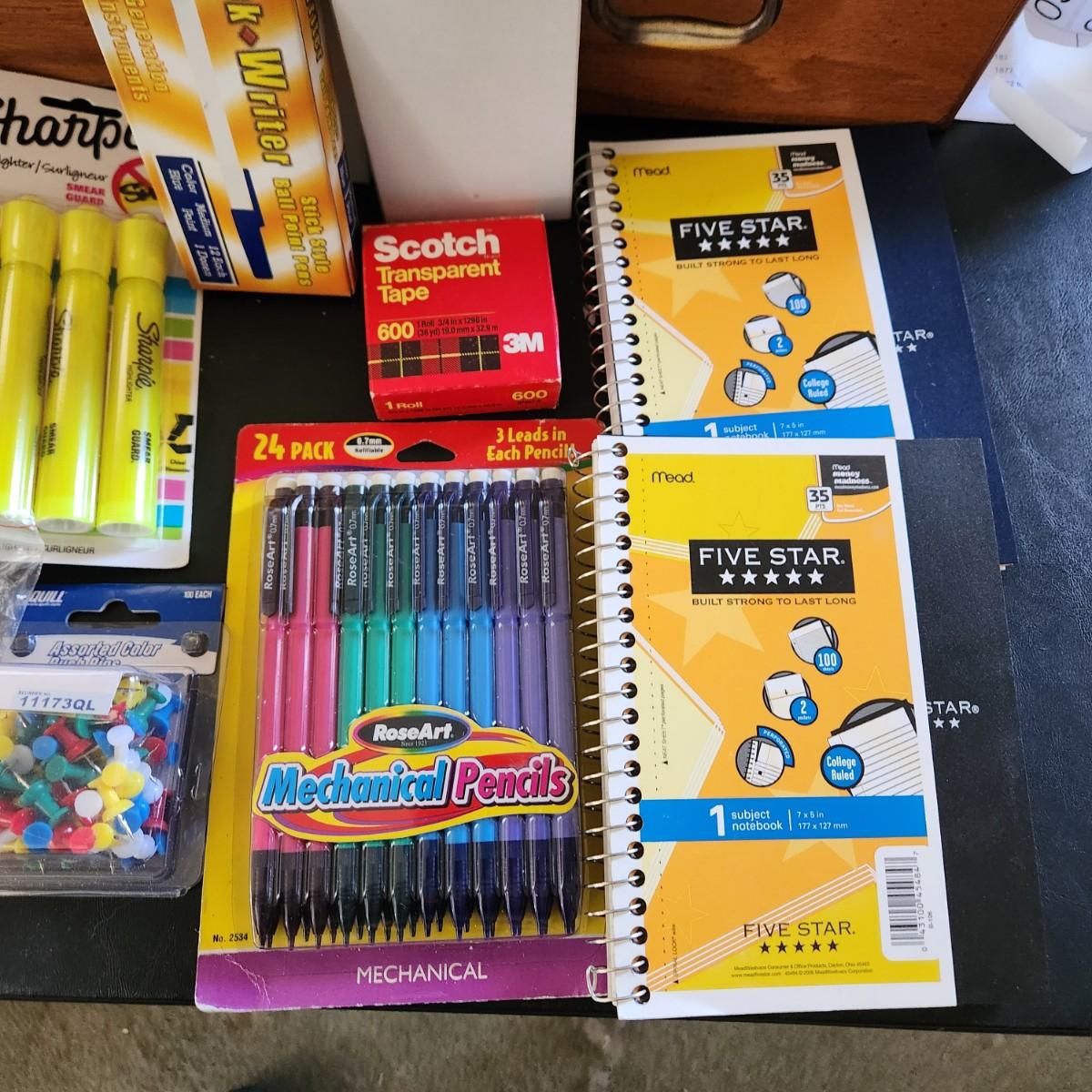Office School Supply Lot Pencils Ink Pens Tape Note Pads Books Markers