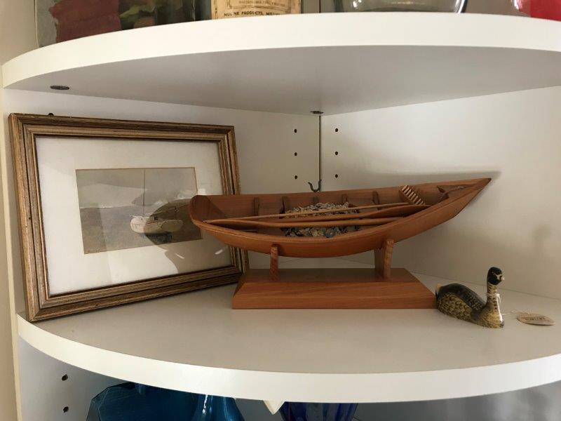 Lot 4-Office Shelf Lot- Model Boat by Nelson Plaisanc and Boat Print