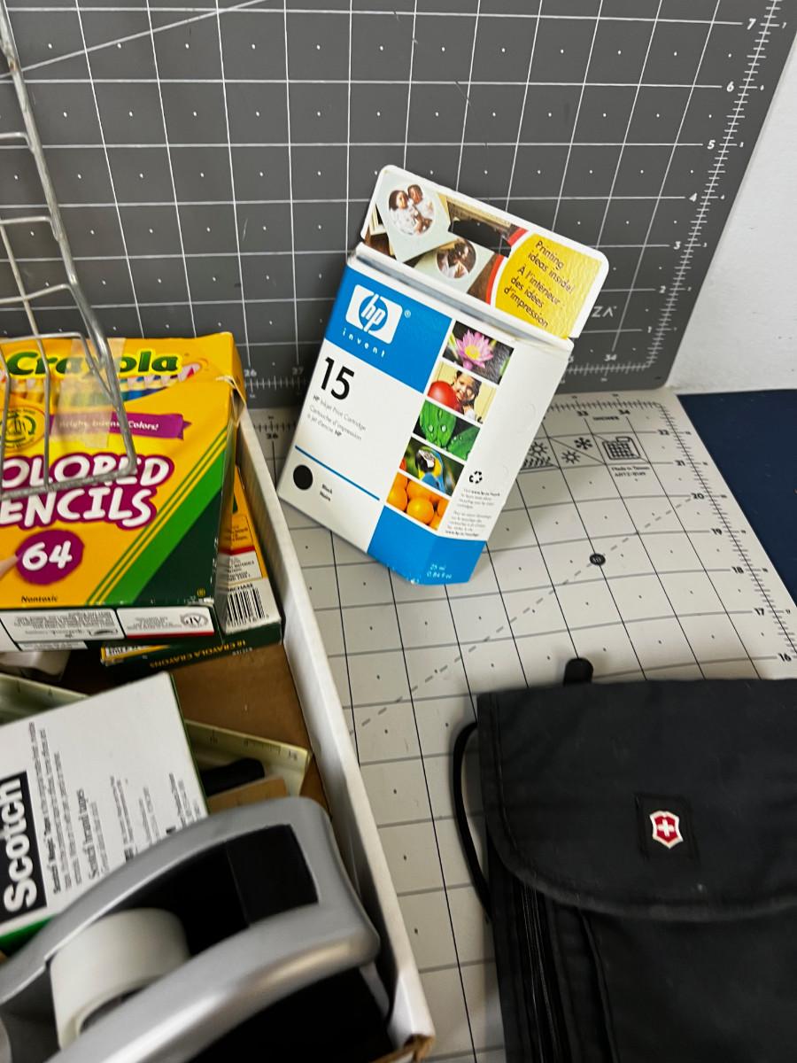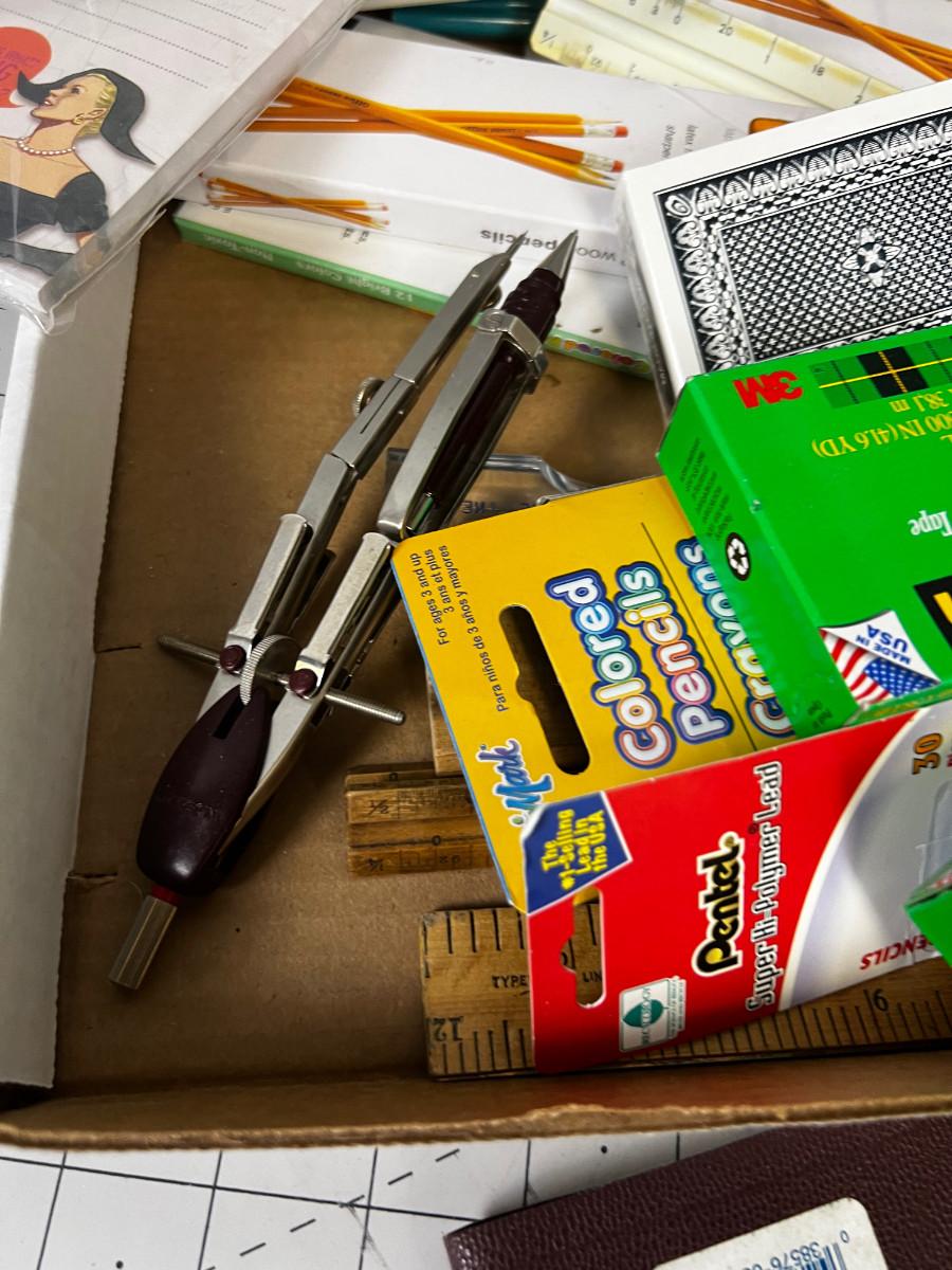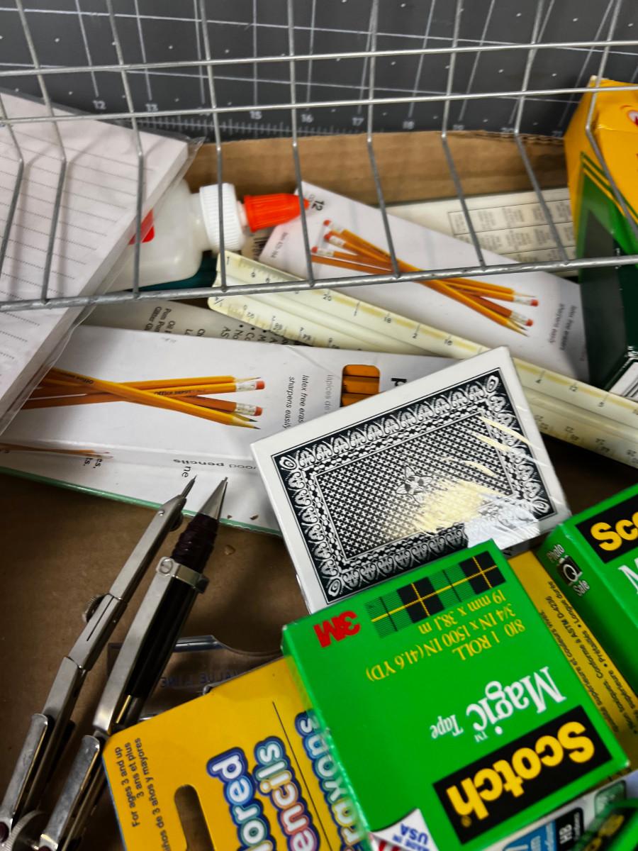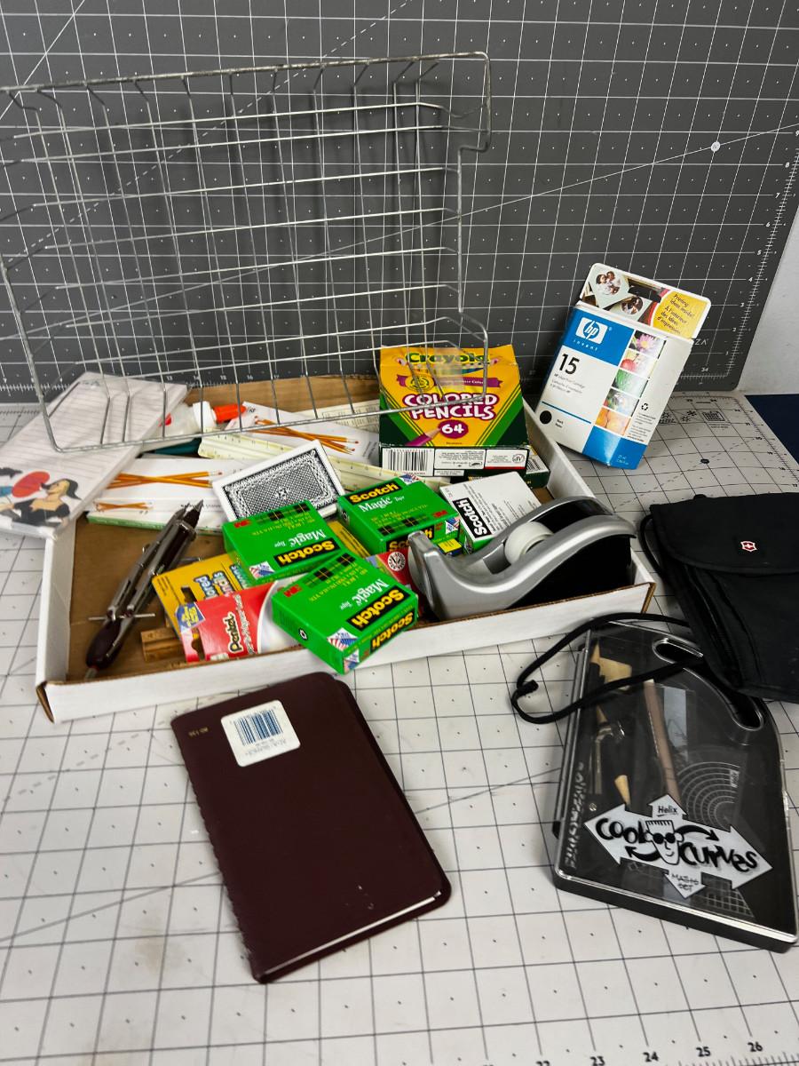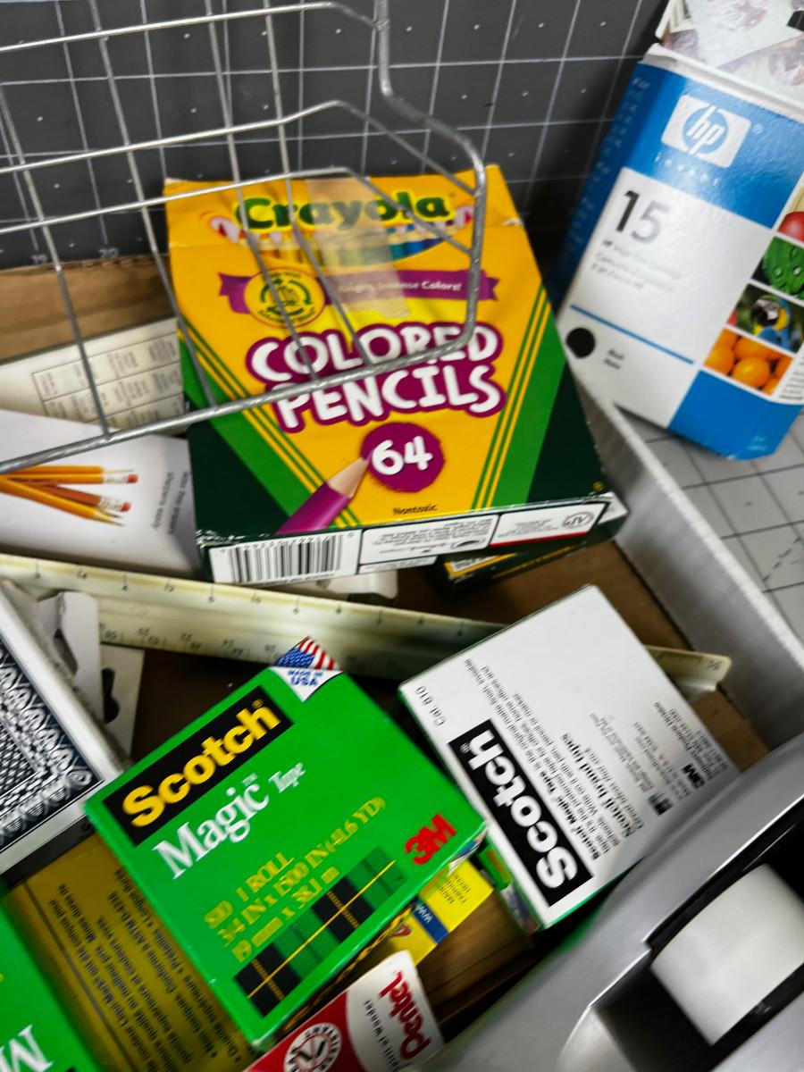 Office Stuff Pile: Pens Tape Drafting Crayons & Colored Pencils