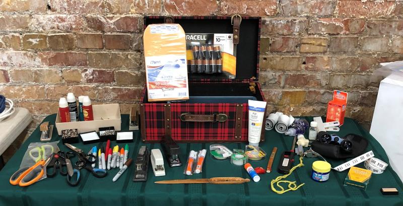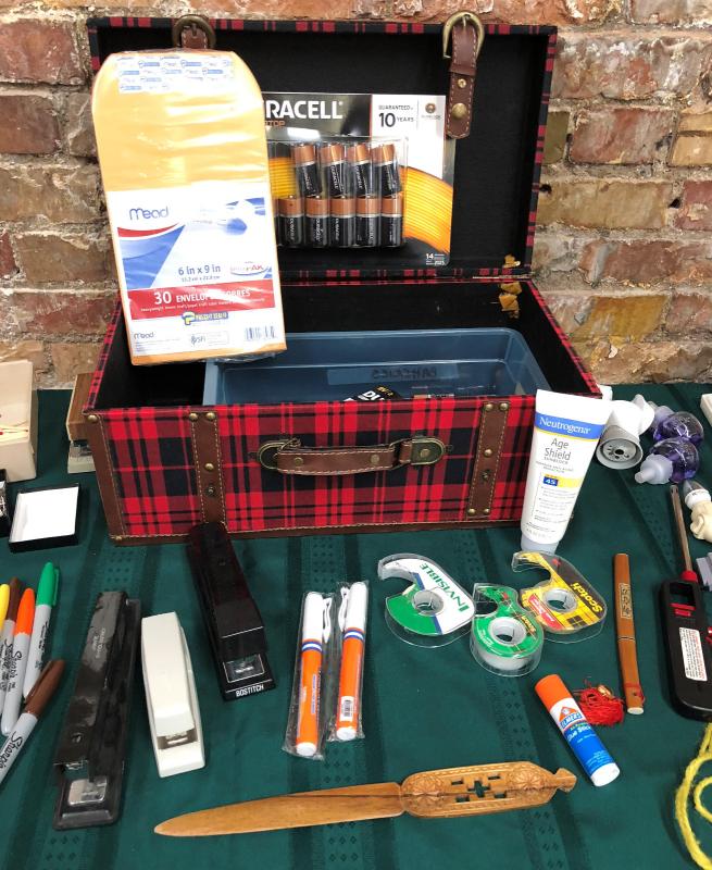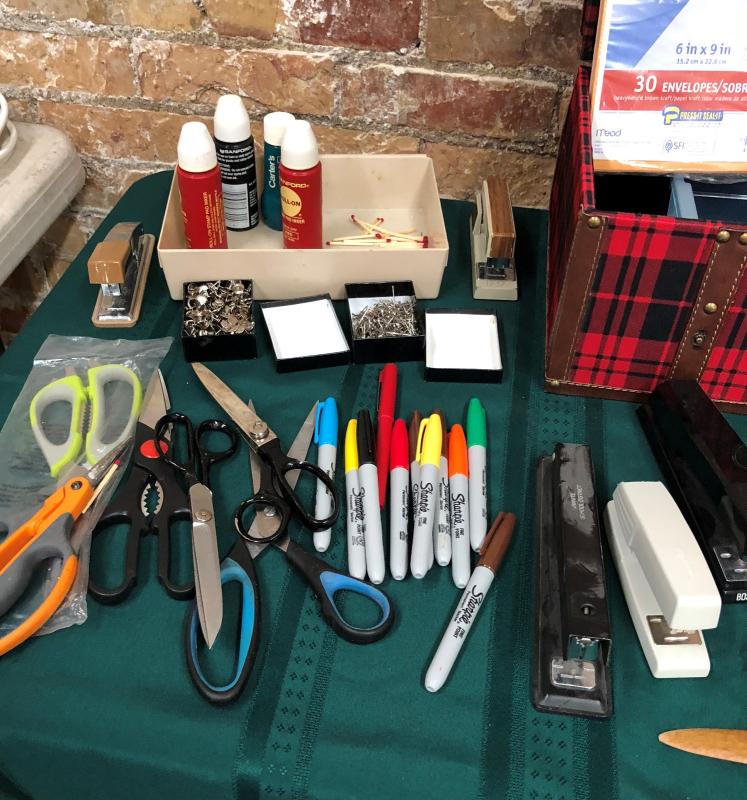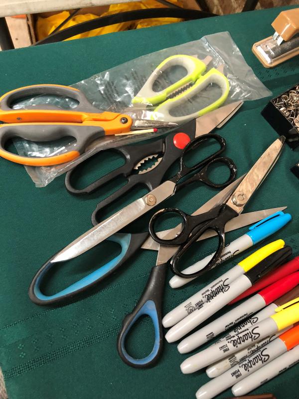 All that is shown, new condition on this large lot of various office supplies..includes binoculars..