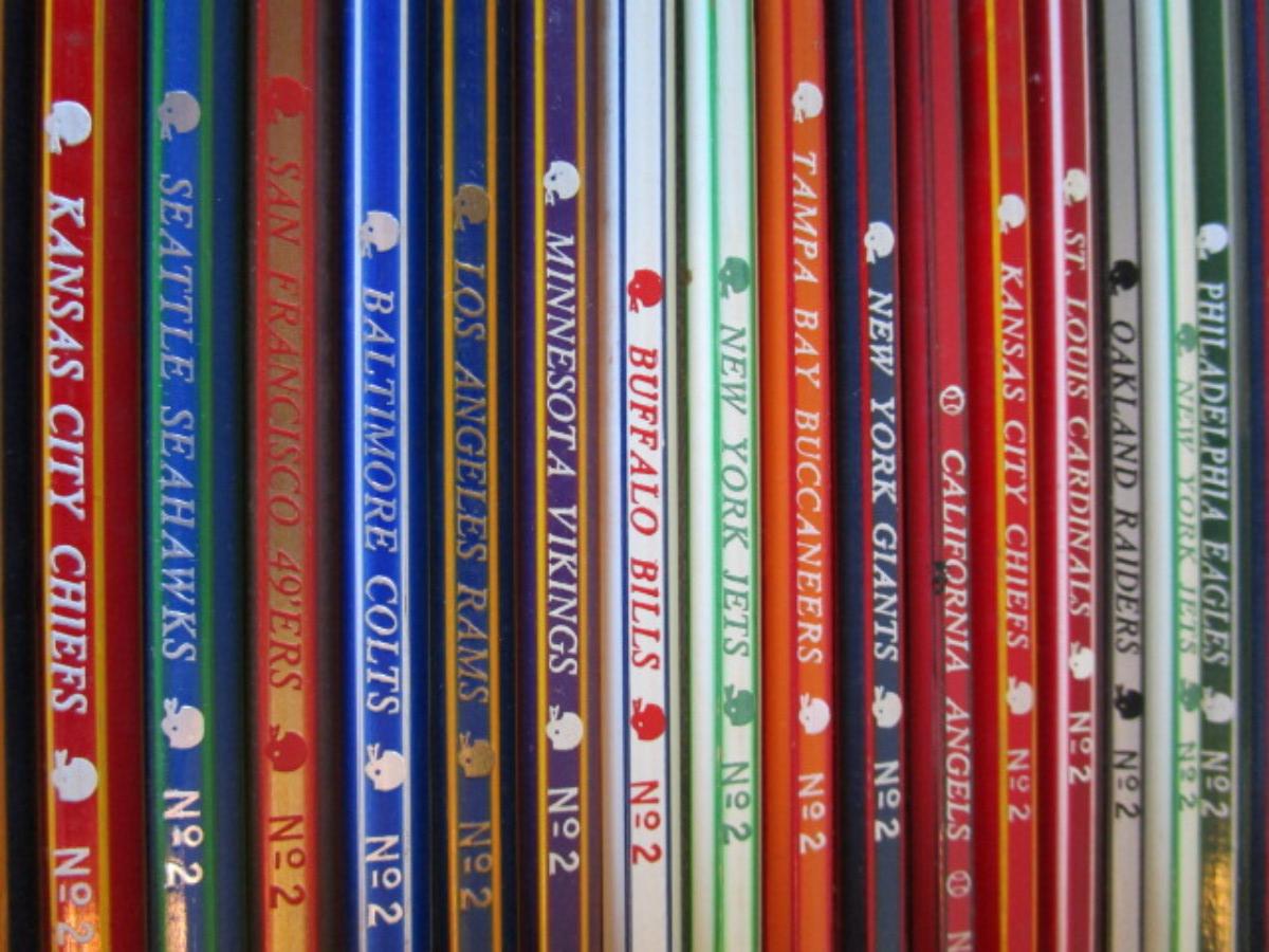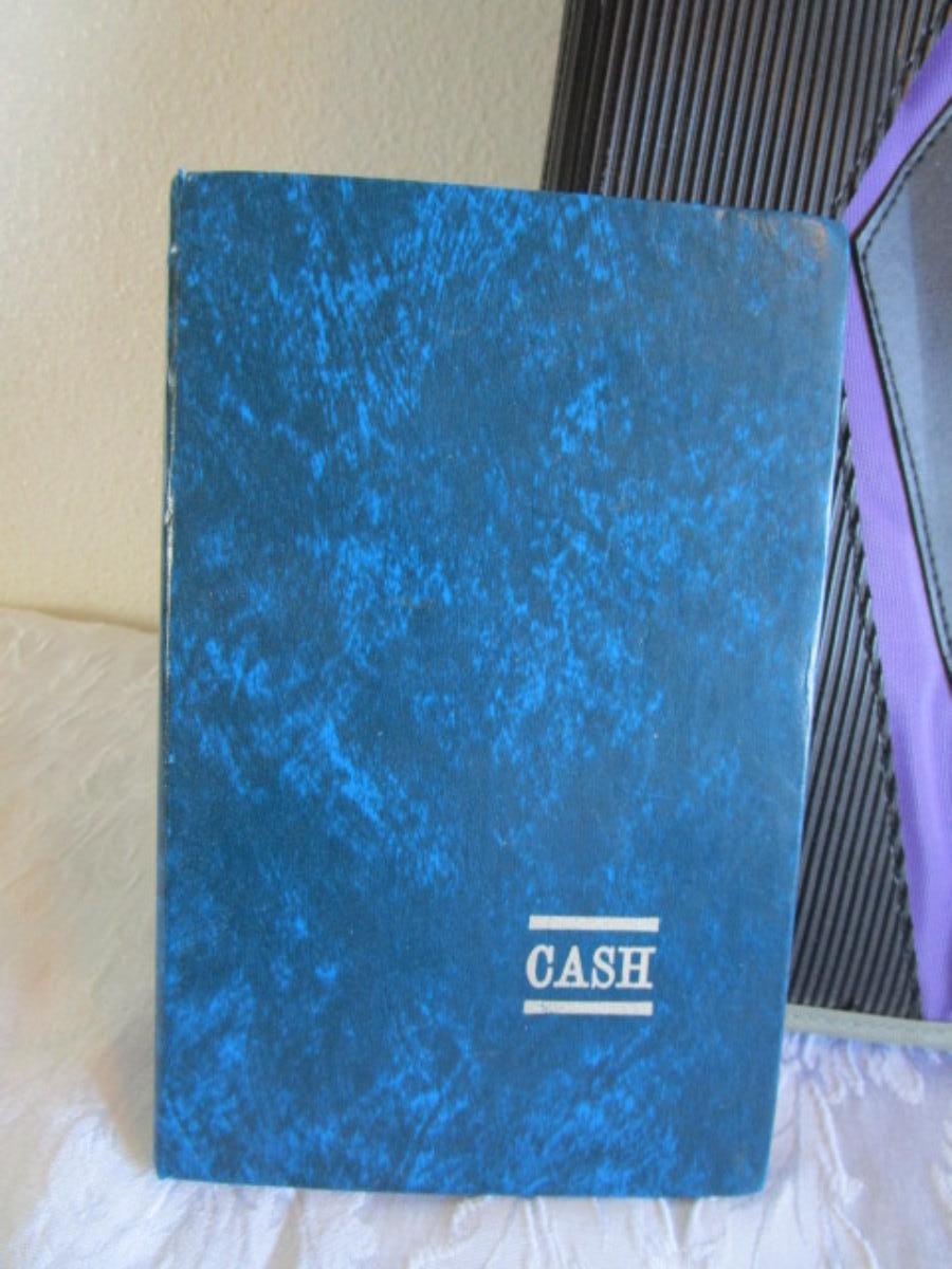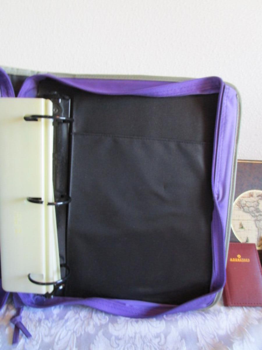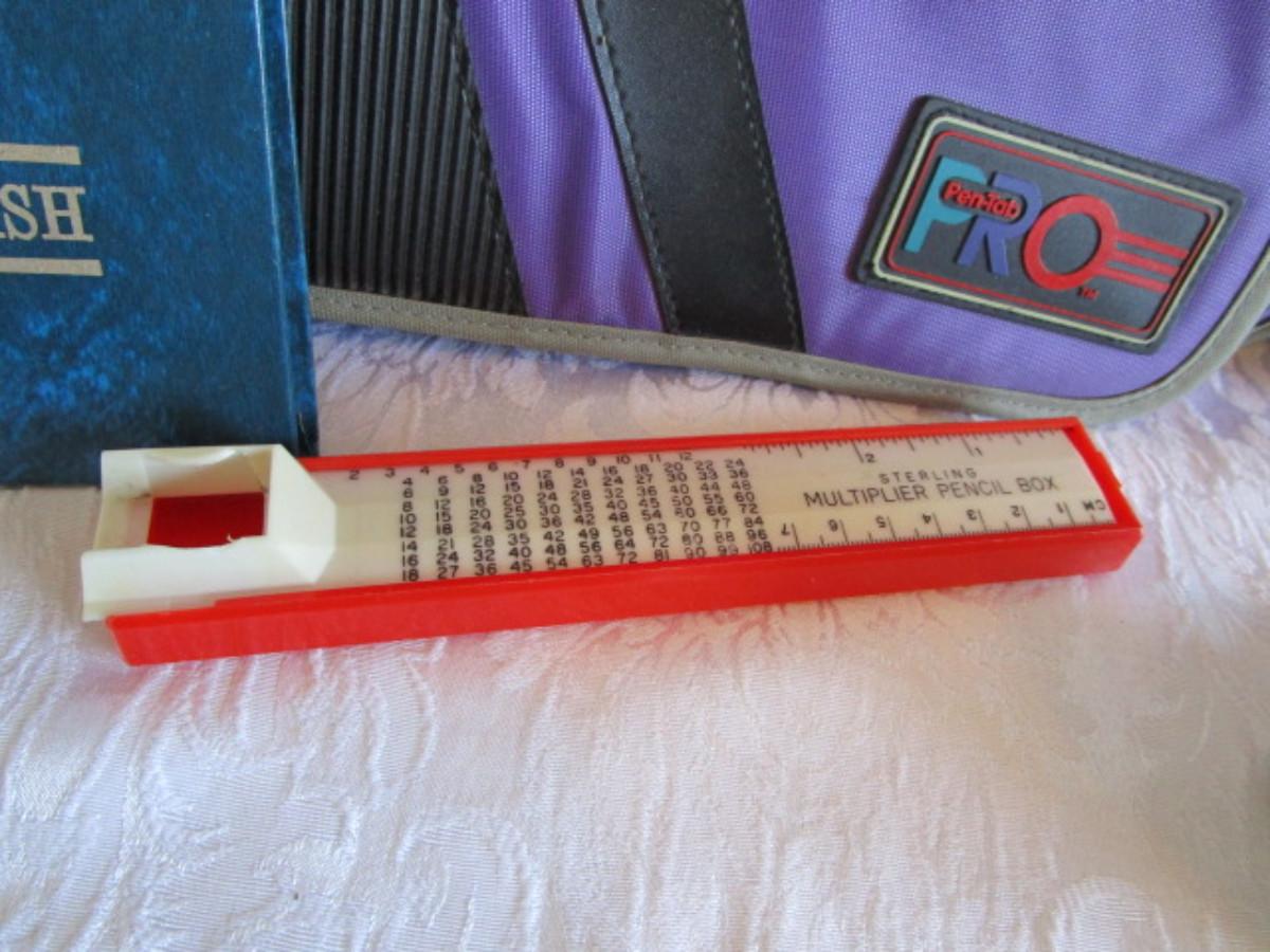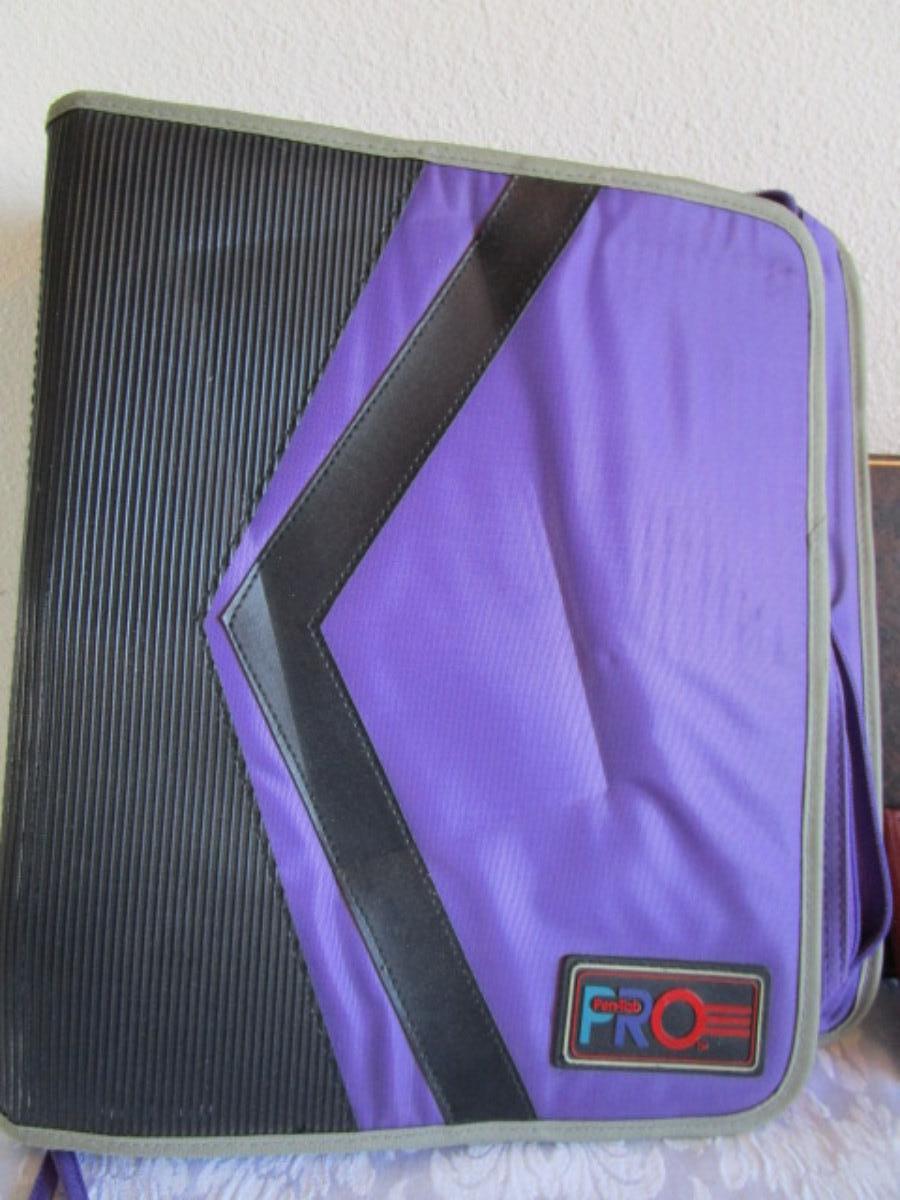 Vintage purple Pentab portfolio/binder, 24 Vintage sports team pencils, pencil sharpener, address book, 2 small address books, Tax Record book, 2 composition books, spiral notebooks, 2 5" x 7" legal pads, 7 large Crayolas, cash book, etc. - G
