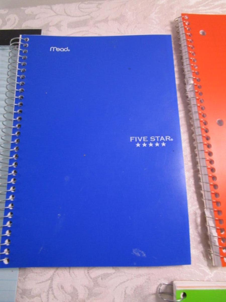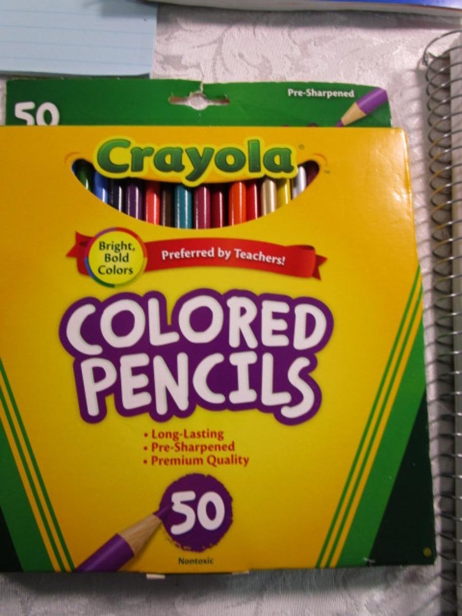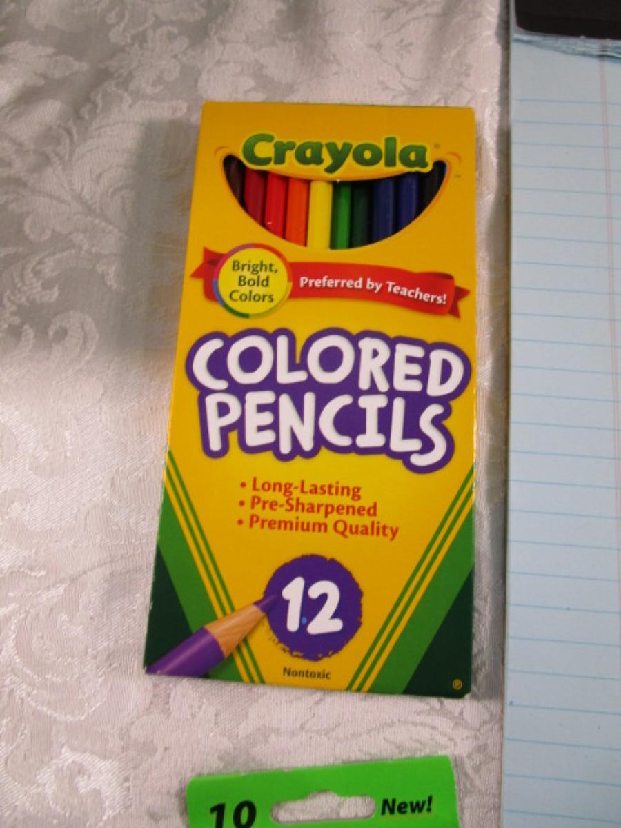 Legal pad, wire-bound notebooks1 new package of 50 colored pencils, 1 new package 10 neon colored pencils, 1 new package colored pencils, pencil-end erasers, word search book