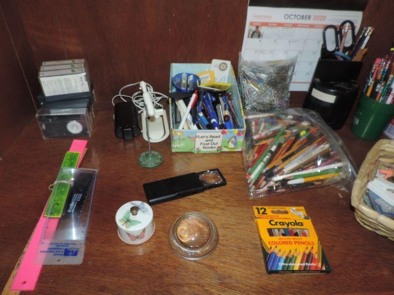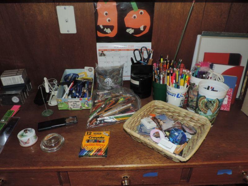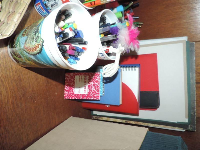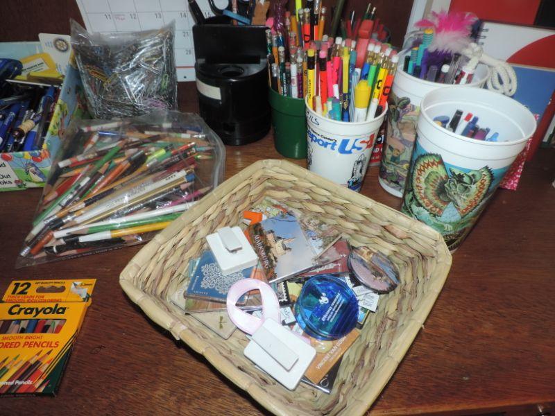 LOTS OF PENS & PENCILS, NOTEBOOKS, MAGNETS, PAPER CLIPS AND MORE