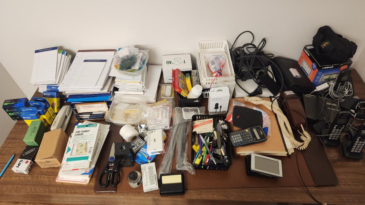 Desk Comes with Delphi XM Radio, 2 Garmins, Phones, chargers, paper and more.
