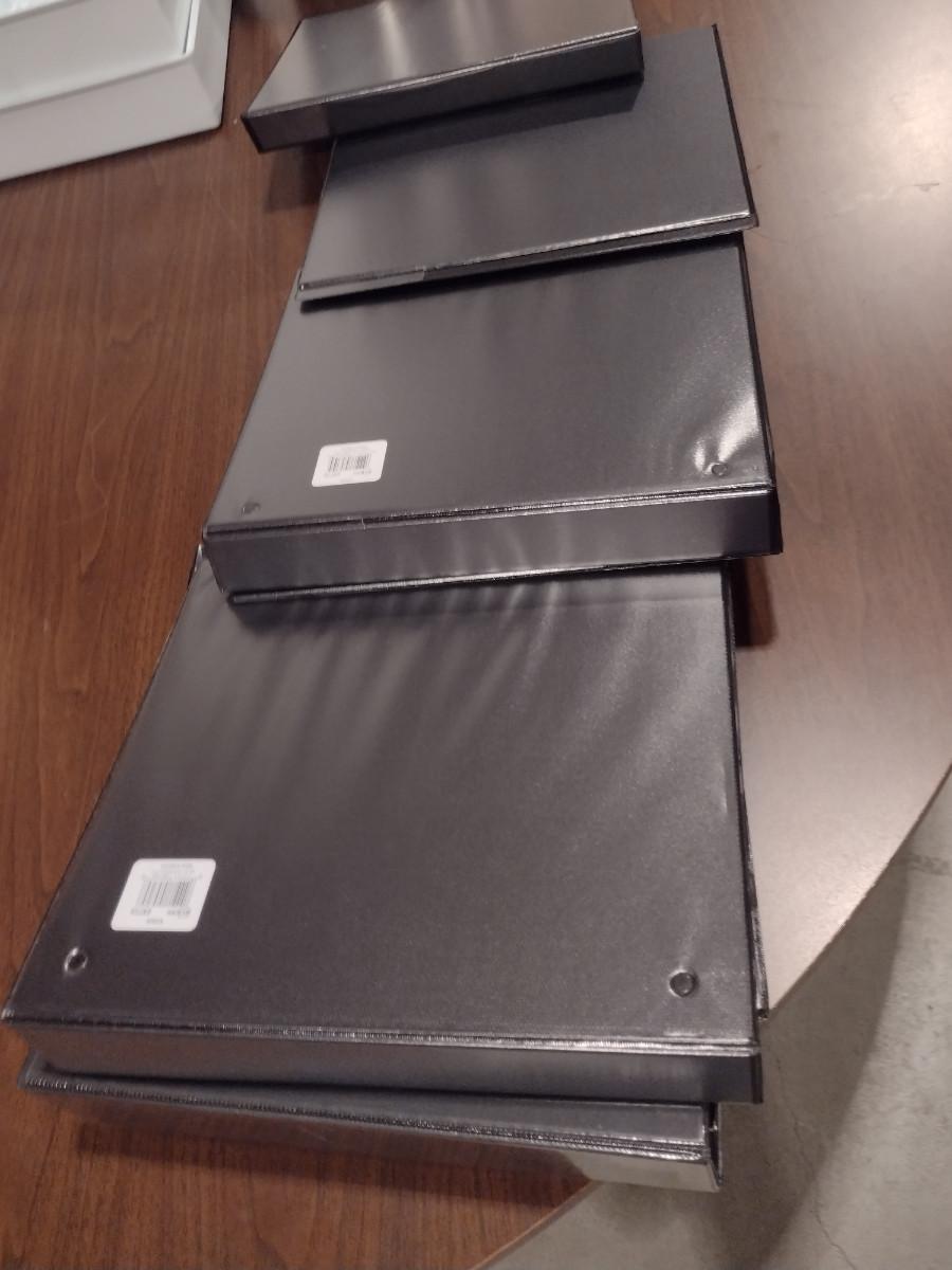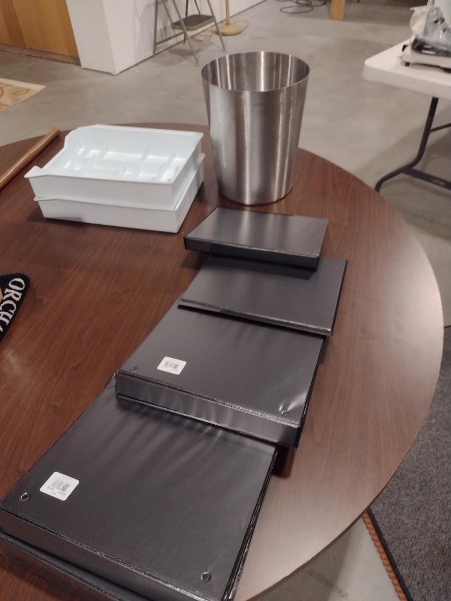 Office Supplies- Binders, Stainless Trash Can, Drawer Organizers
