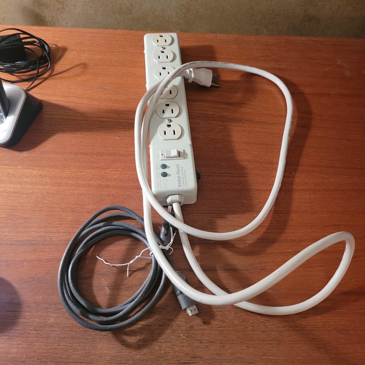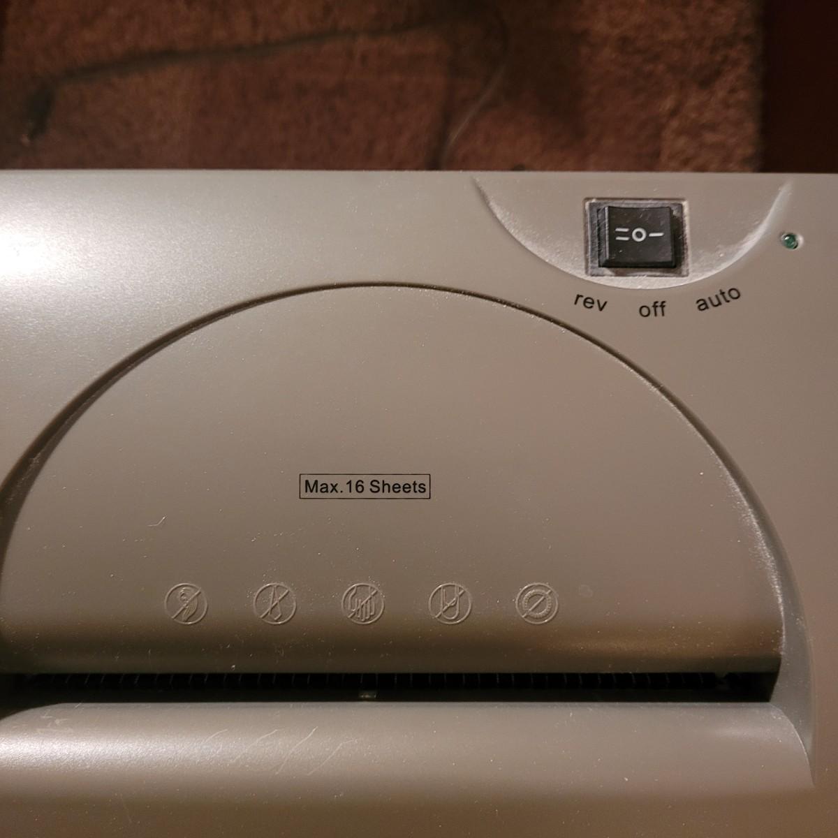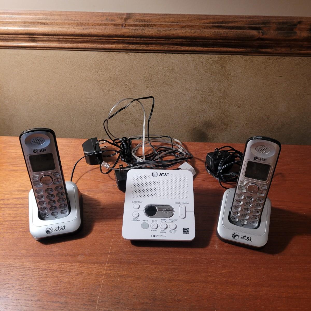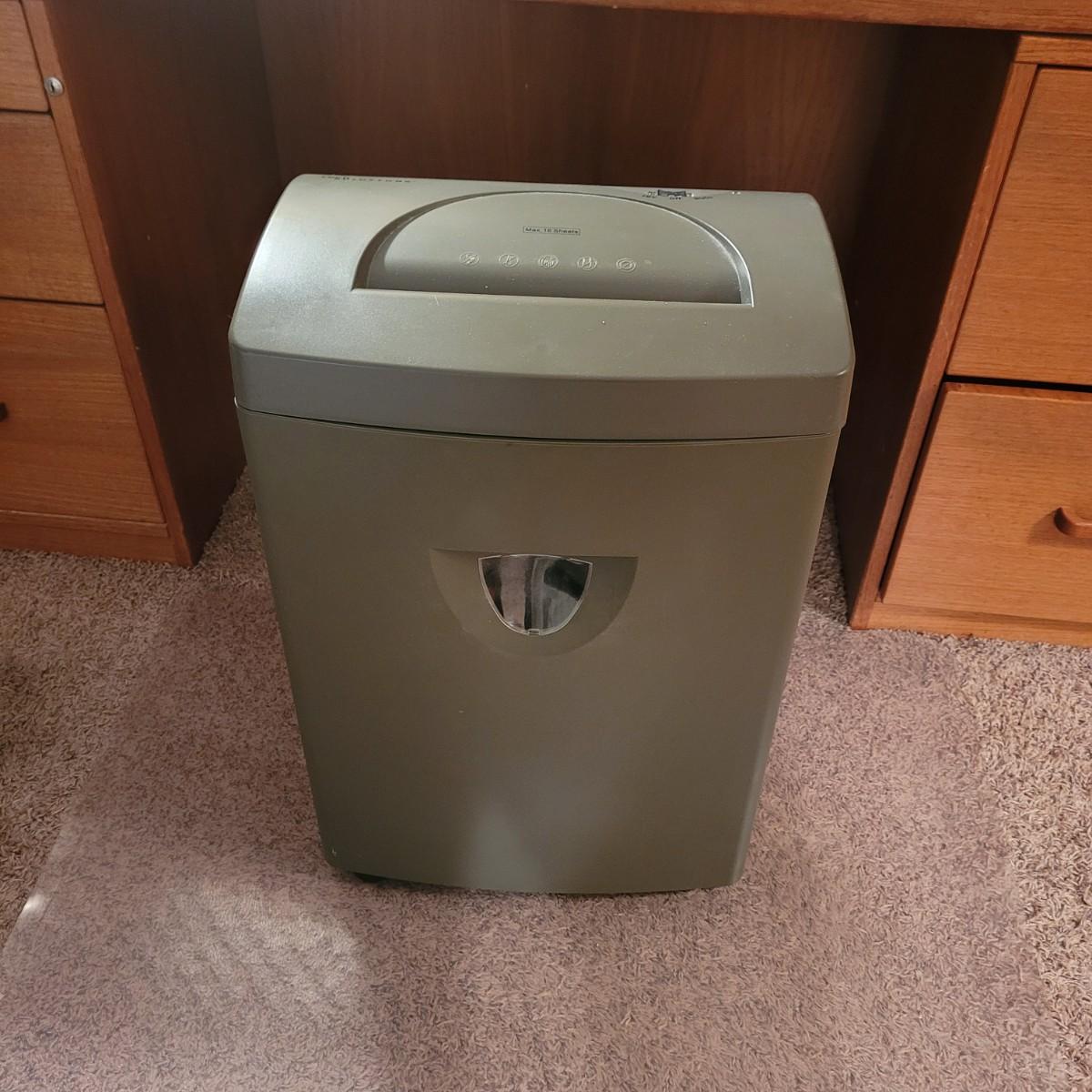 An assortment of office supplies, including a 16 sheet paper shredder by Tech Solutions, AT&T cordless phones and digital answering machine, keyboards, power cords and a variety of desk accessories. Items powered on when plugged in. Shredder measures approximately 15” x 10” x 23”H. Local pick up only.
