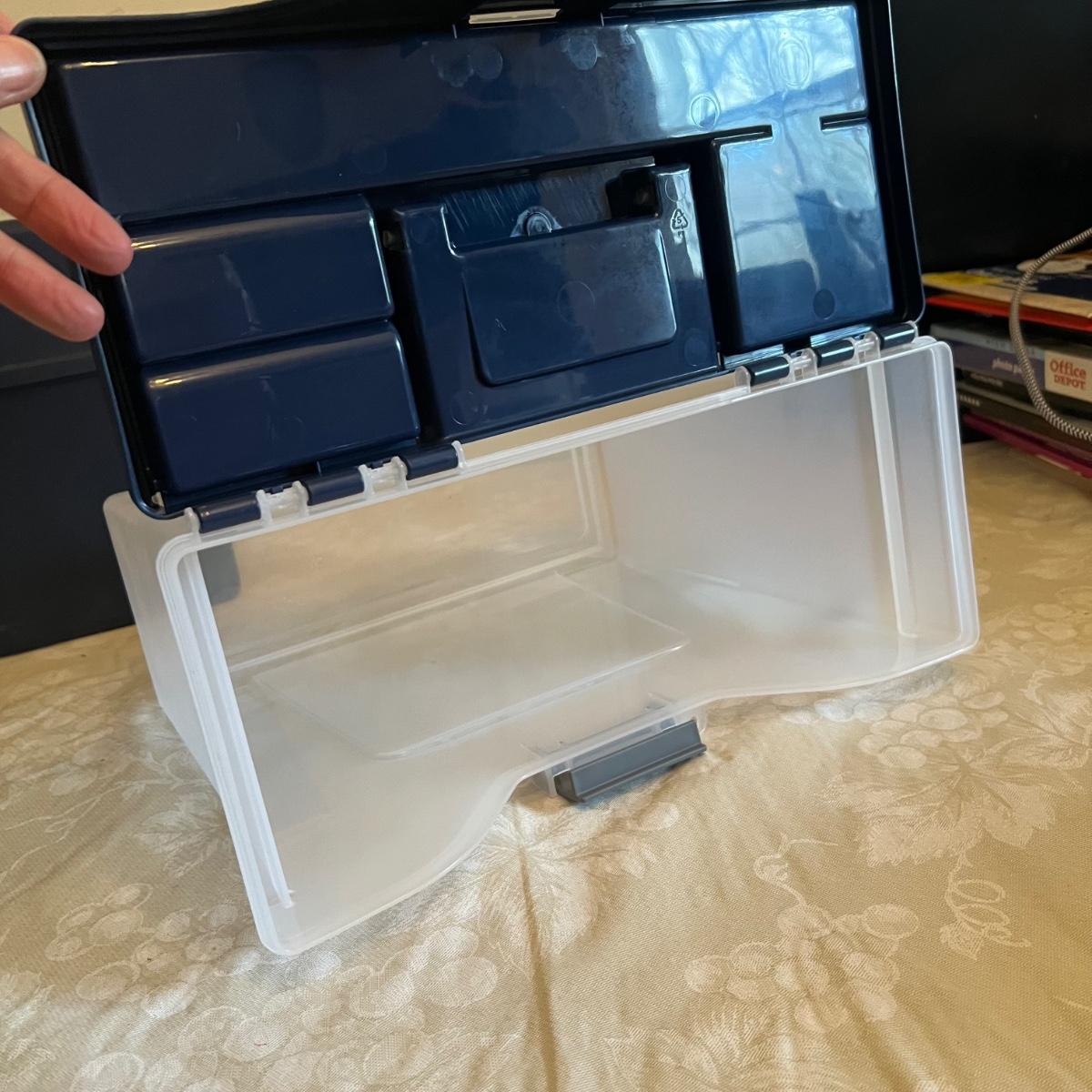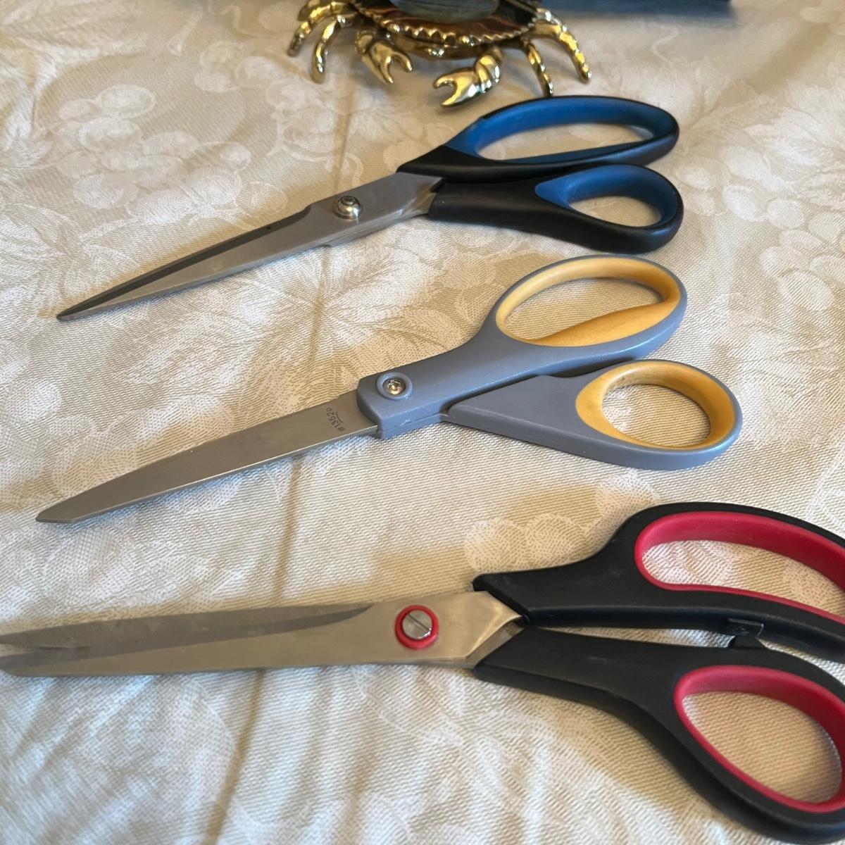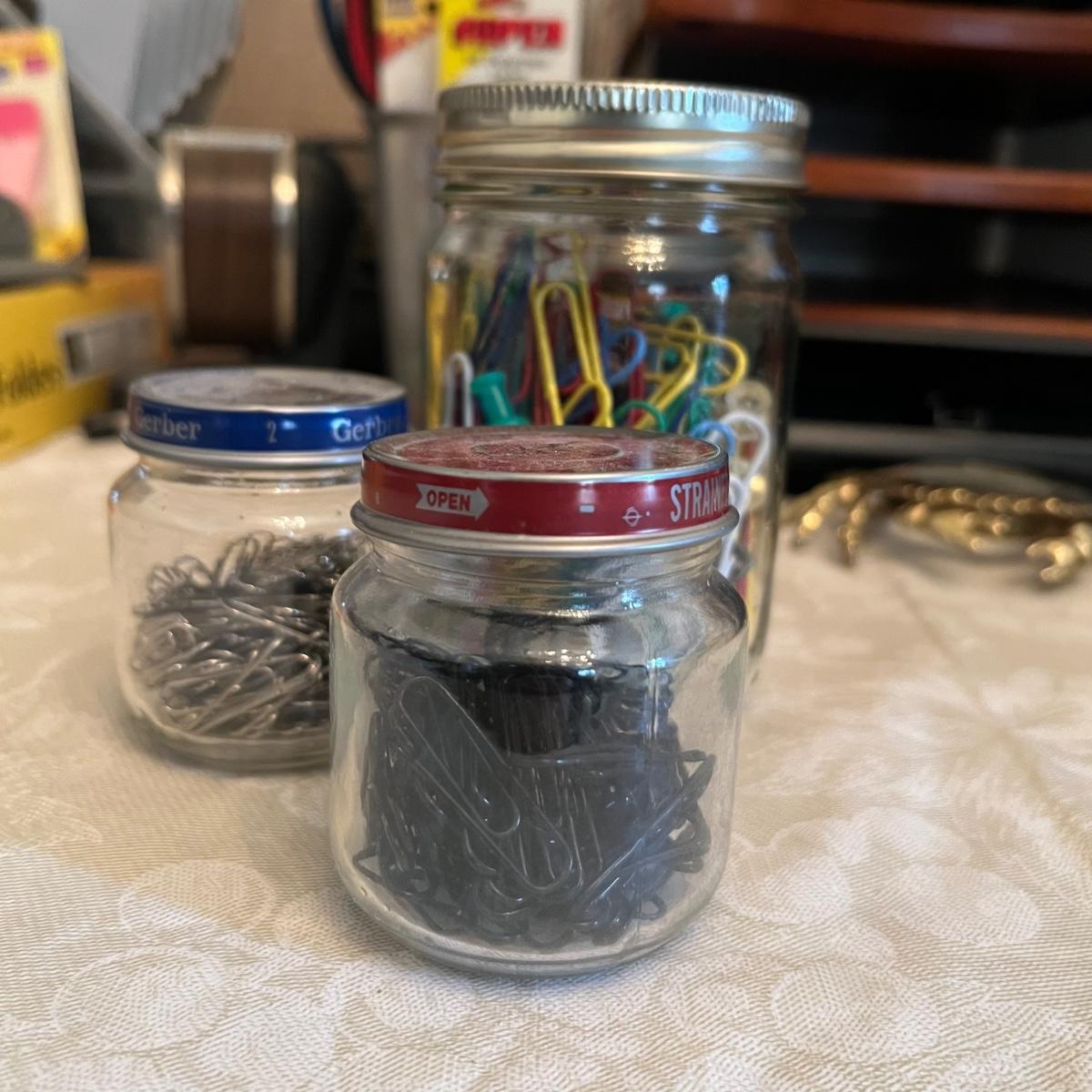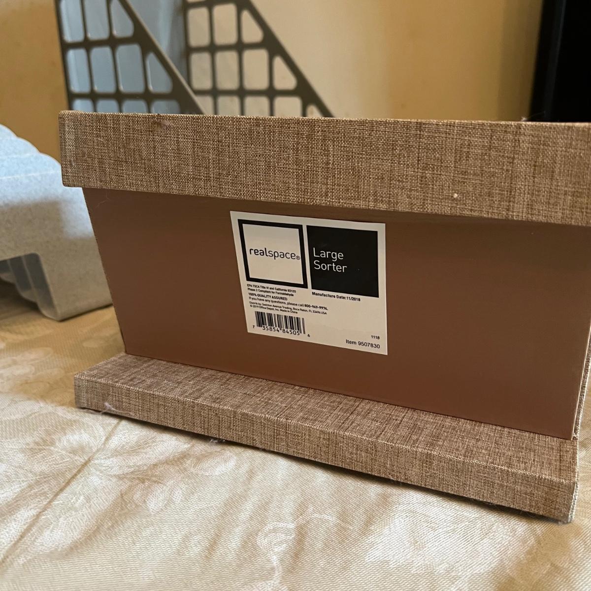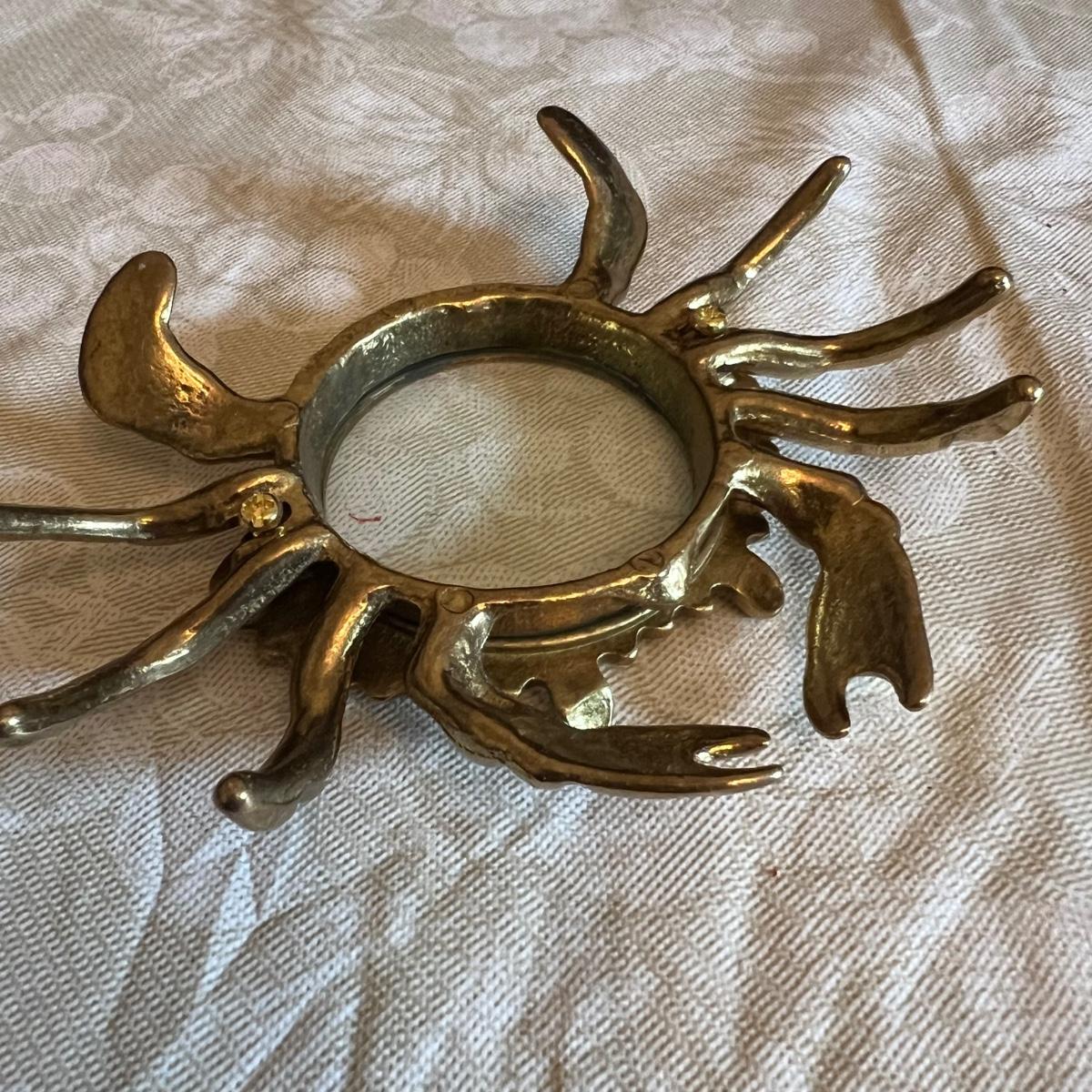 Large assortment of office supplies includes multiple inbox and file trays, desk lamp, envelopes, lots of paper clips, scissors, staplers and much more. The two multi tiered in-boxes come apart in one tray sections; wood/metal trays measure altogether 14” x 10” x 12”. The crab shaped desk ornament appears to be solid brass and measures 5” x 5” x 2”H.
