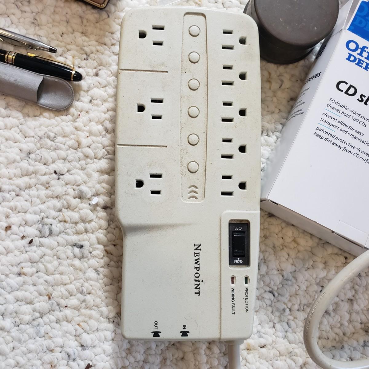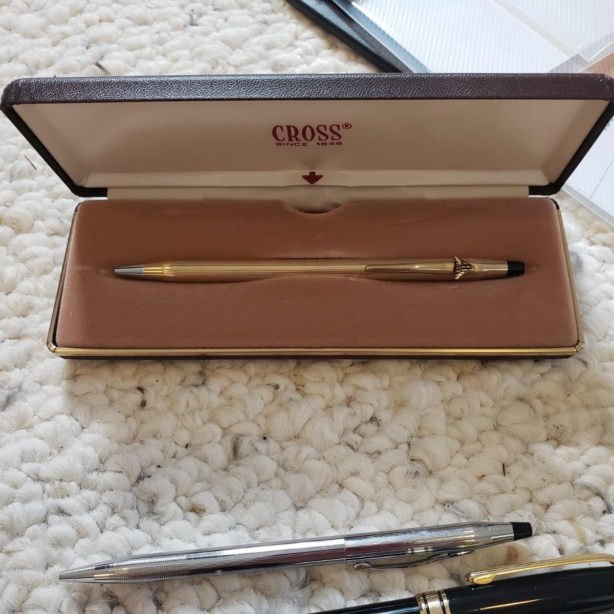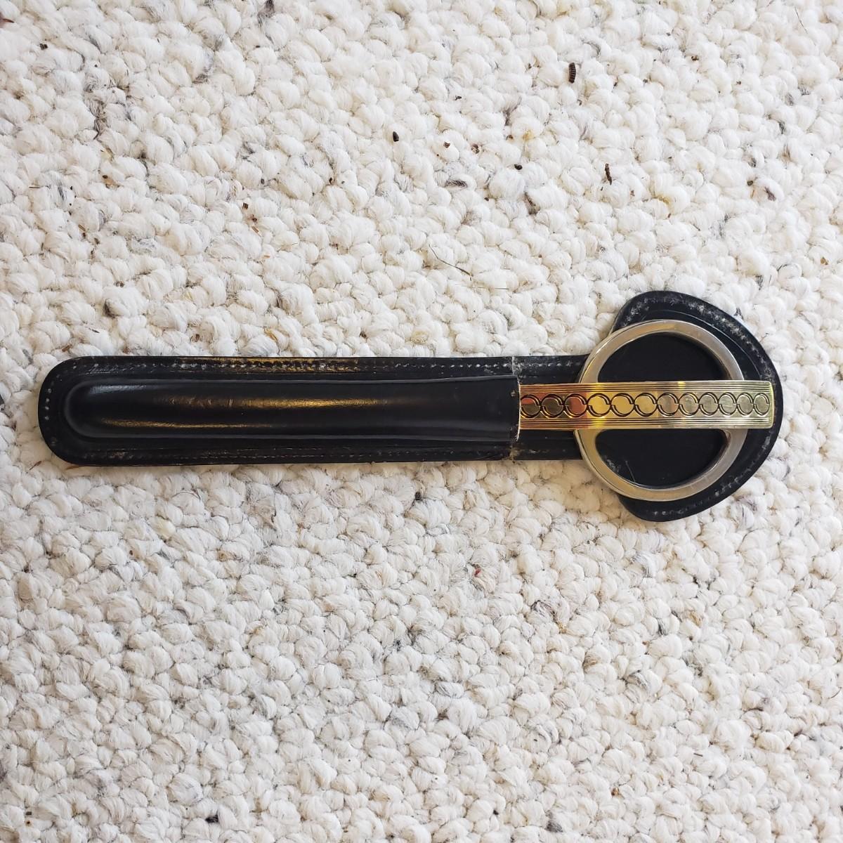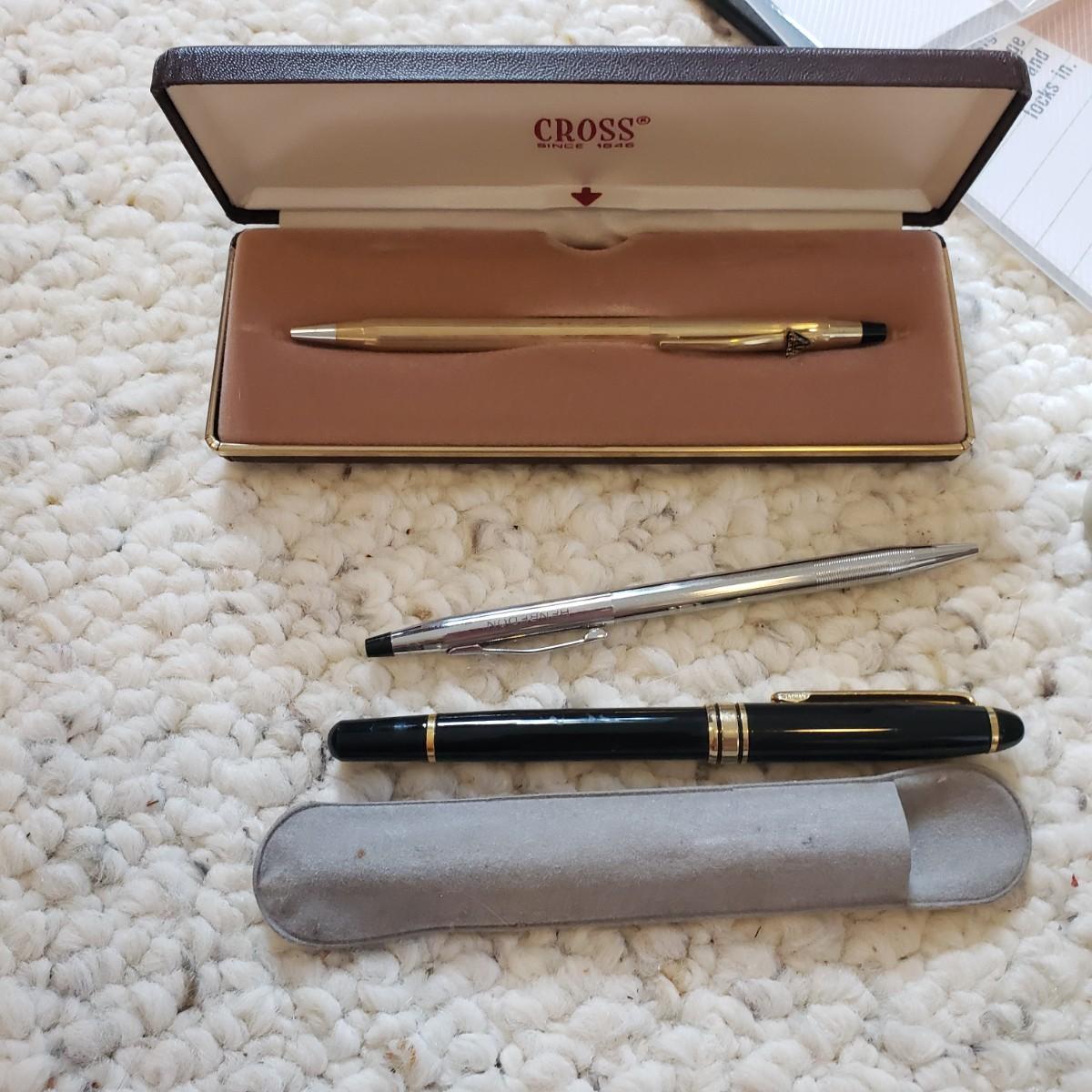 Everything you need to start an office or back to school supplies! The highlights in this lot are a HP Envy 5530 printer that powers on when plugged in, three Cross metal pens, a black metal desk lamp, a set of scissors and letter opener made in Italy. This set is heavy duty and comes in a black leather case. Also included is a wooden desk organizer with two metal racks for holding envelopes and a vintage wooden wall organizer. There is also a heavy plastic chair mat for carpeted floors. There are knobs on the back side that holds it to the carpet. The chair mat measures approximately 48" x 39".
