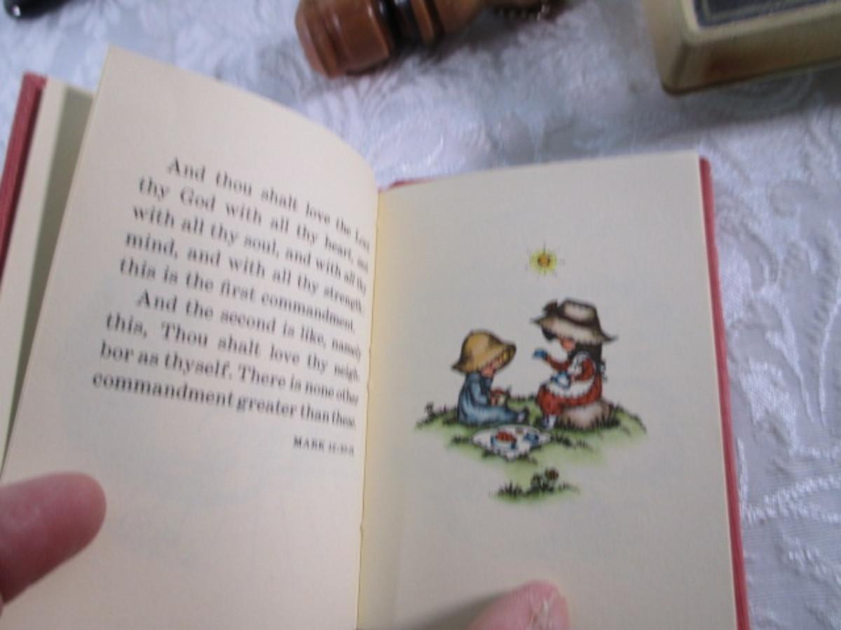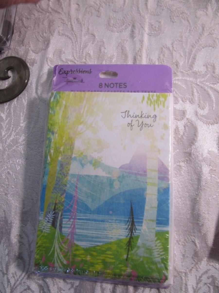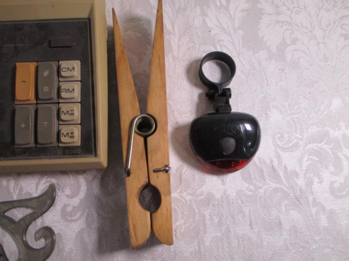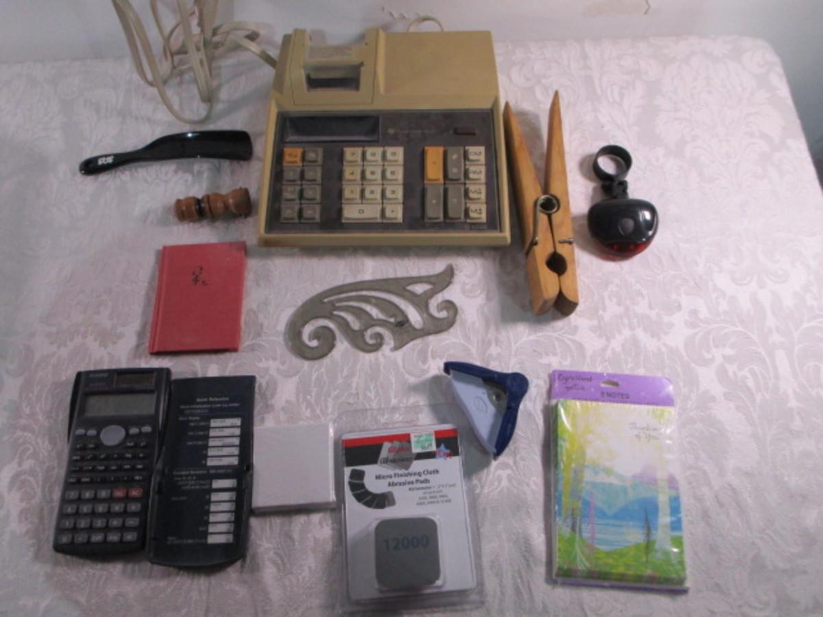 Office supplies, clothespin paper clip, book of poems with pictures by Joan Walsh Angelund, pkg 3 tiny canvases, keychain, shoehorn, micro finish abrasive pads, paper corner punch, drawing tool, thinking of you notes, bike light