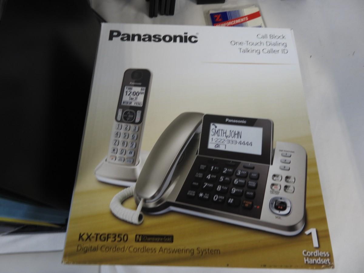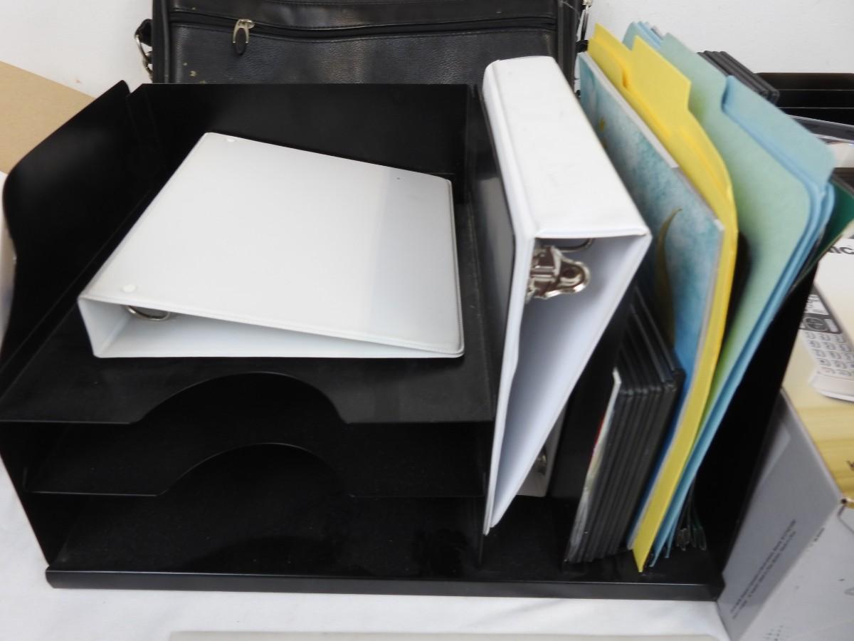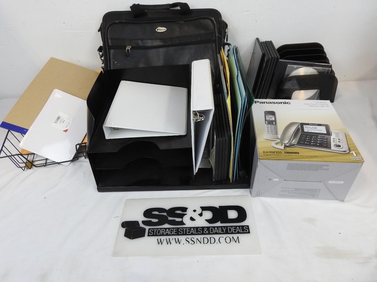 Office Supplies: Targus Black Leather Folder Bag, 2 Paper Organizer, Panasonic Call Block