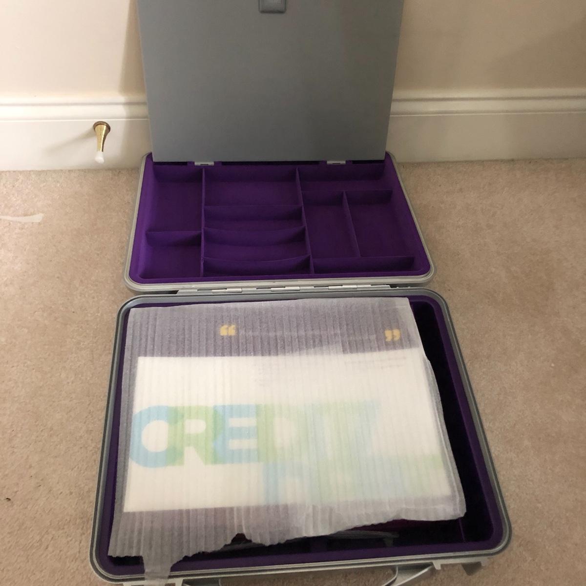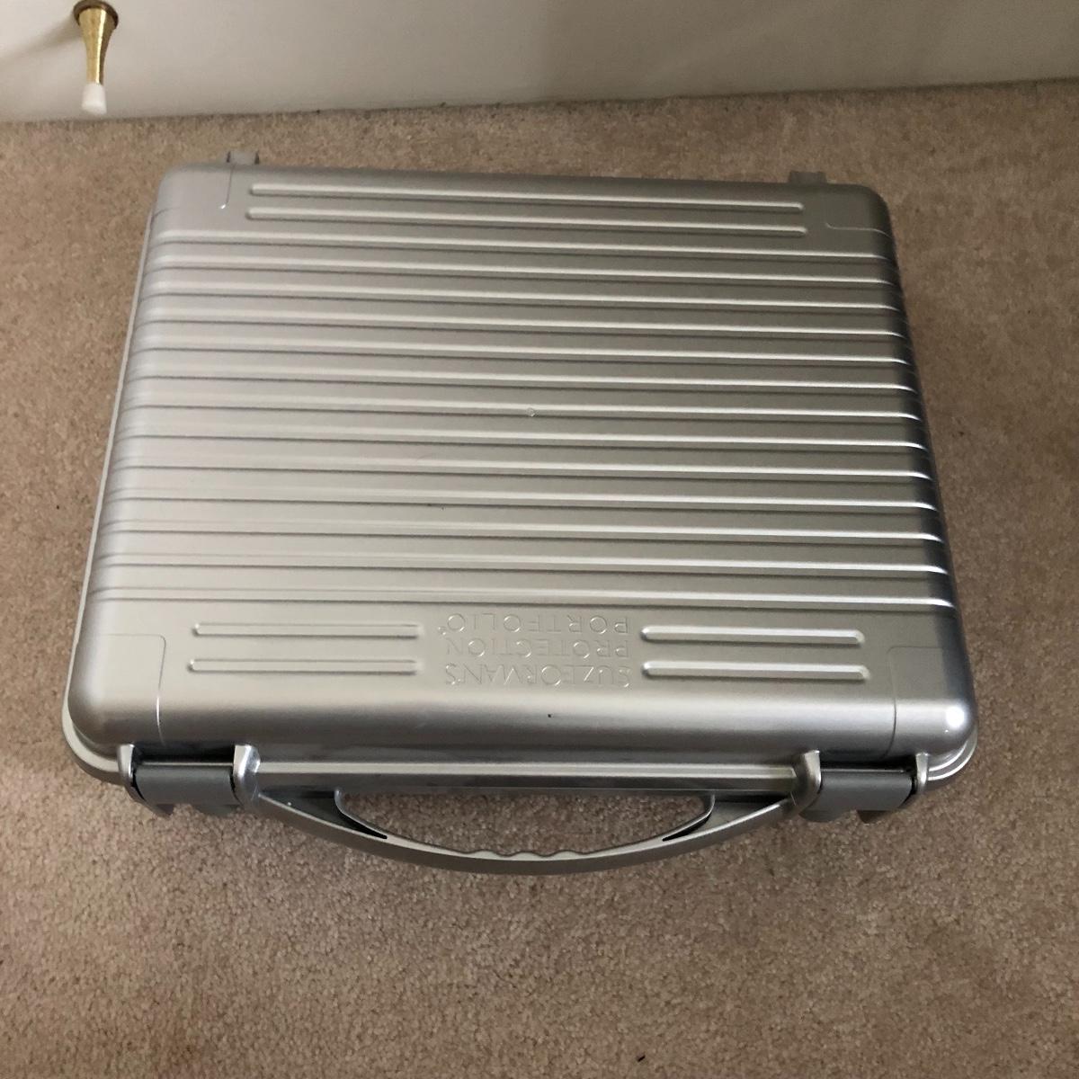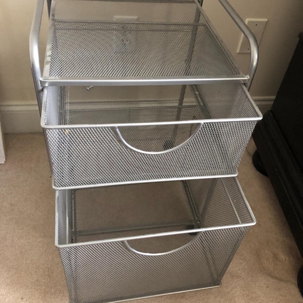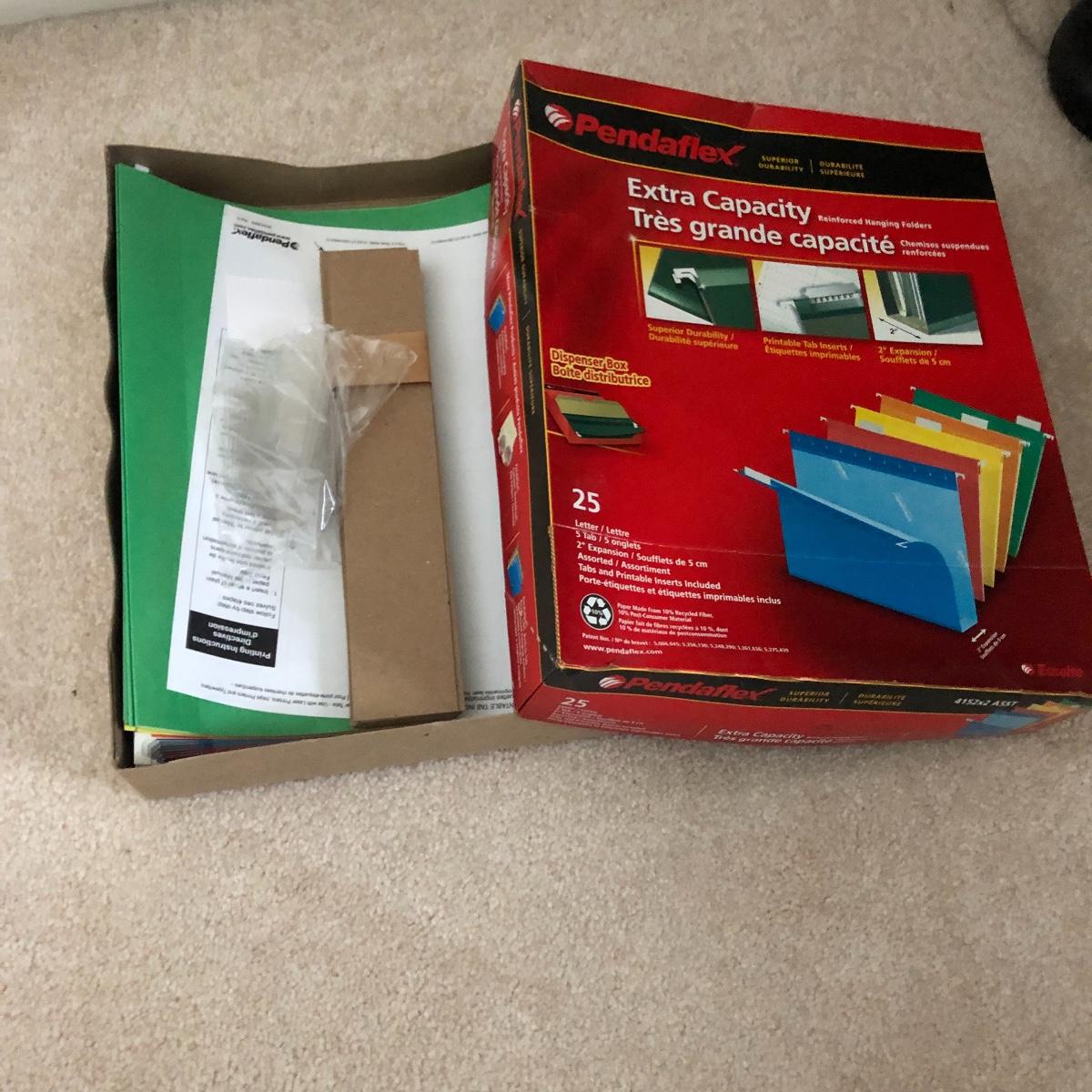 Lot includes two wastebaskets, metal cabinet, plastic carrying case and file holder, paper, file holders and more. Metal cabinet measures 15” x 15” x 23”.