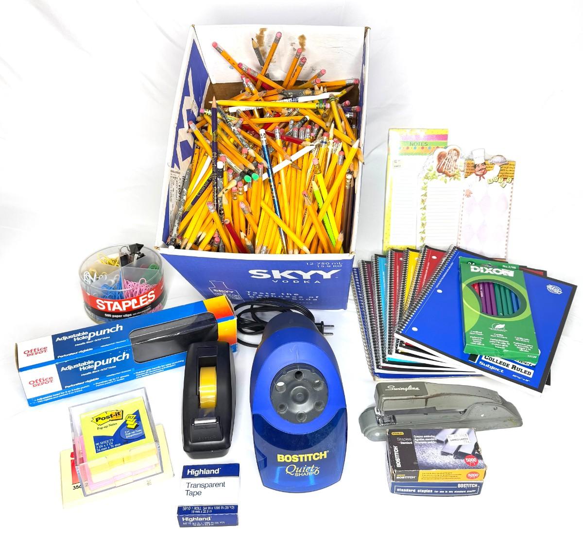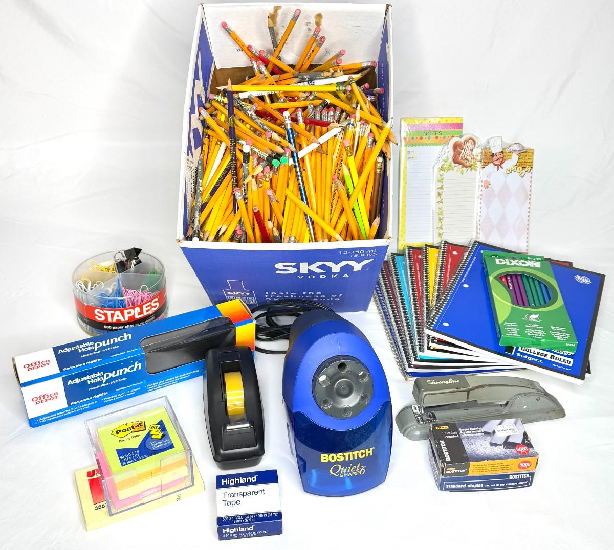 Office Supply Lot Including Electric Pencil Sharpener and Huge Box of Sharpened Pencils