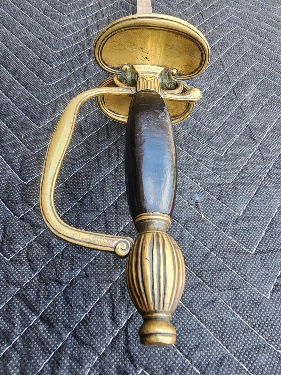 Early 18th Century British Infantry Officer's Smallsword w/earlier blade (appears blade was broken but kept and made into a small sword). Very similar to item 7A. Blade length 18 1/4" and 3/4" width. Figure 8 design with wood handle. Great condition w/sharp blade. Authentic.