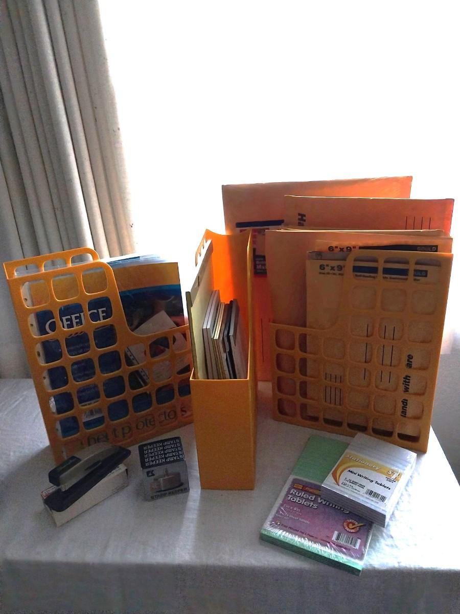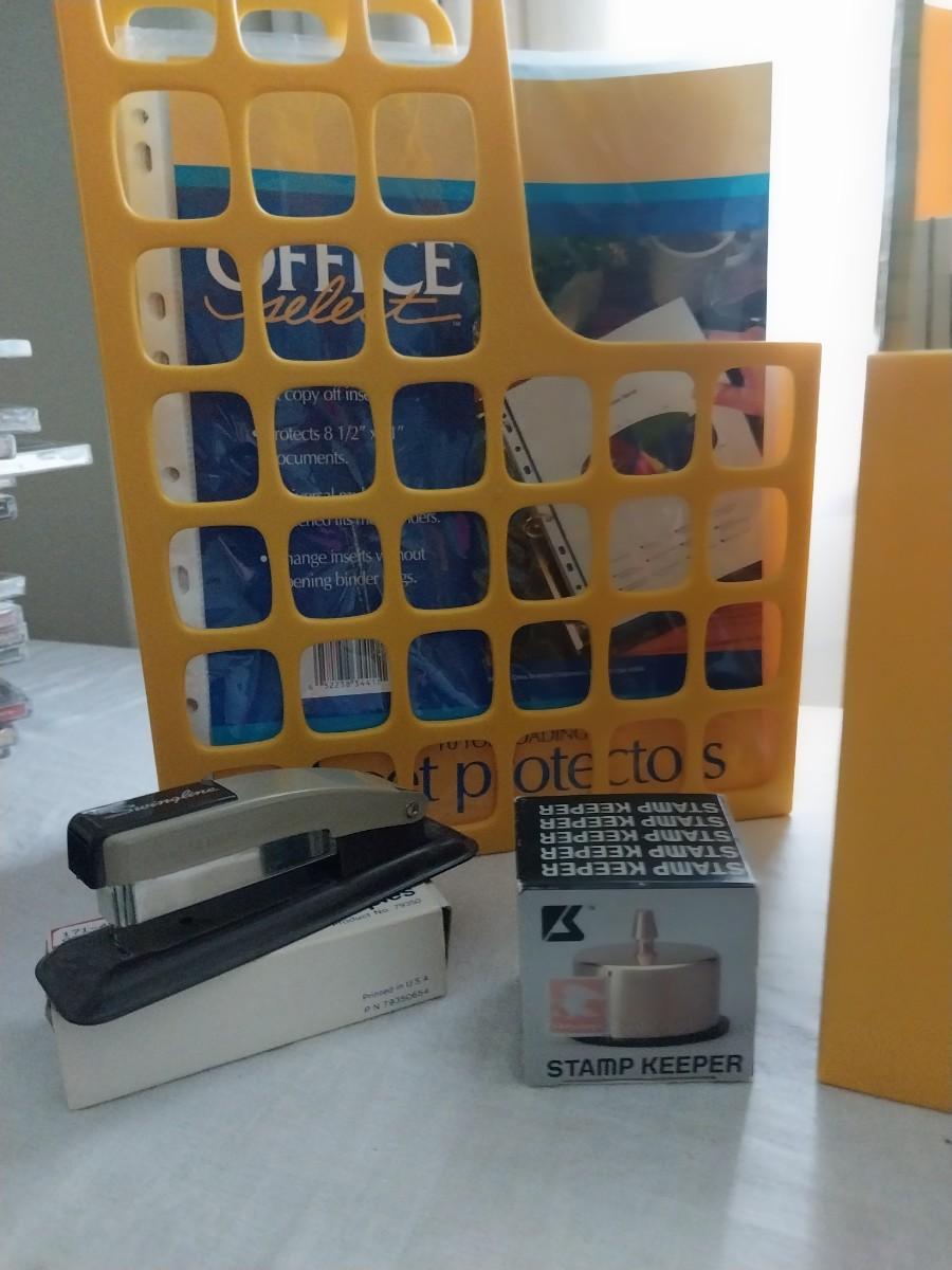 3 file/paper holders-protection sheets-clips-mailer envelopes-writing tablets-more