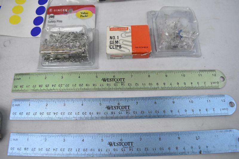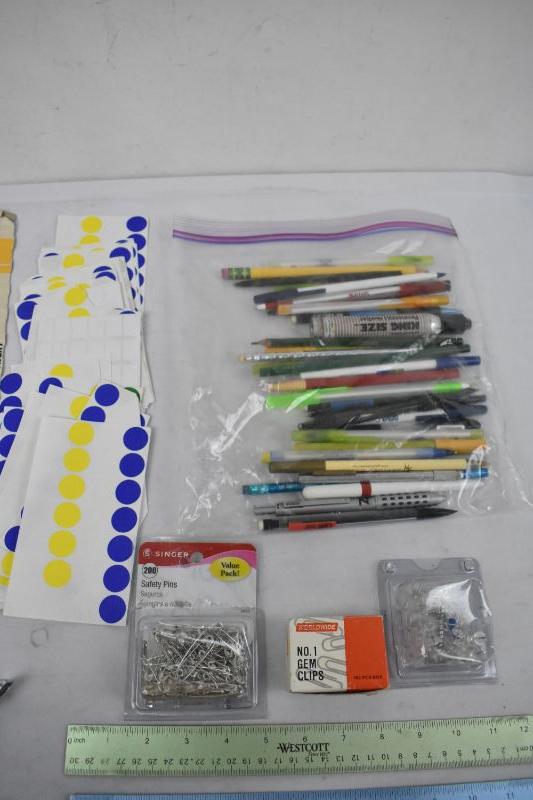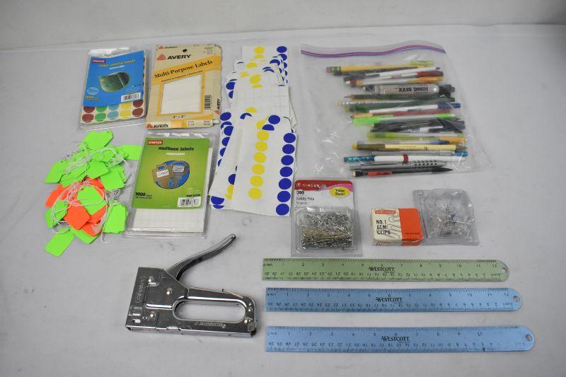 Office/School Supply Lot: Pens, Pencils, Stickers, Tags, Stapler, Rulers, etc.