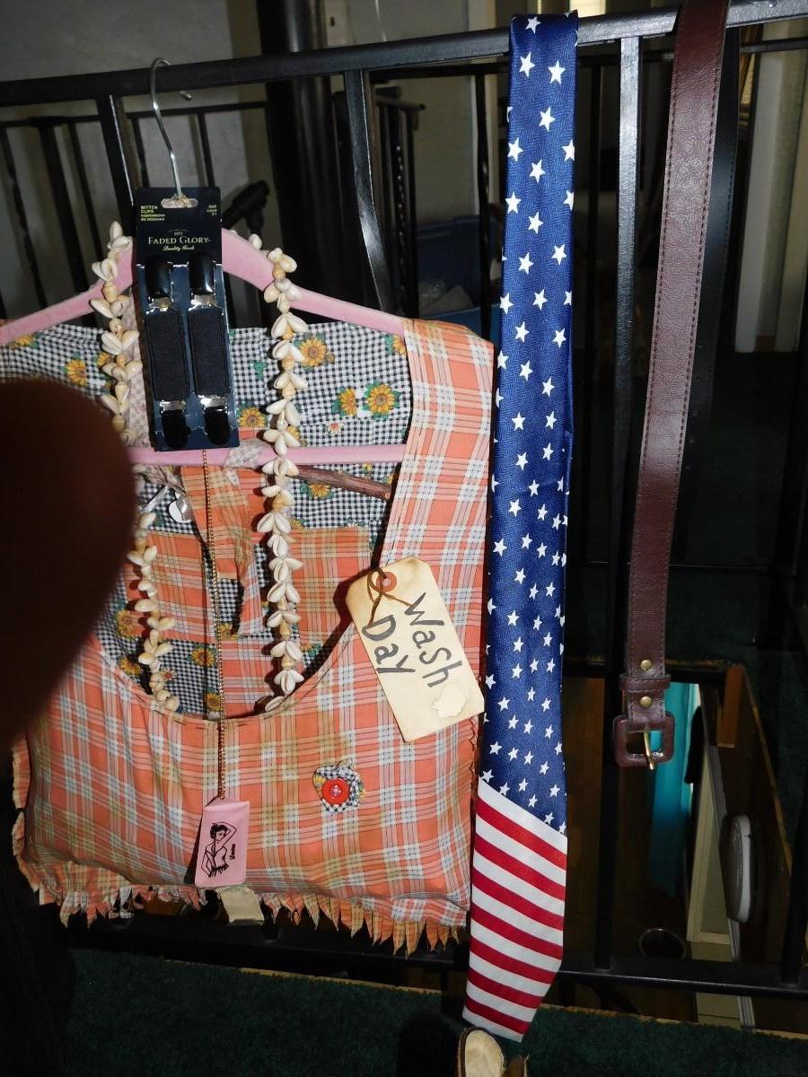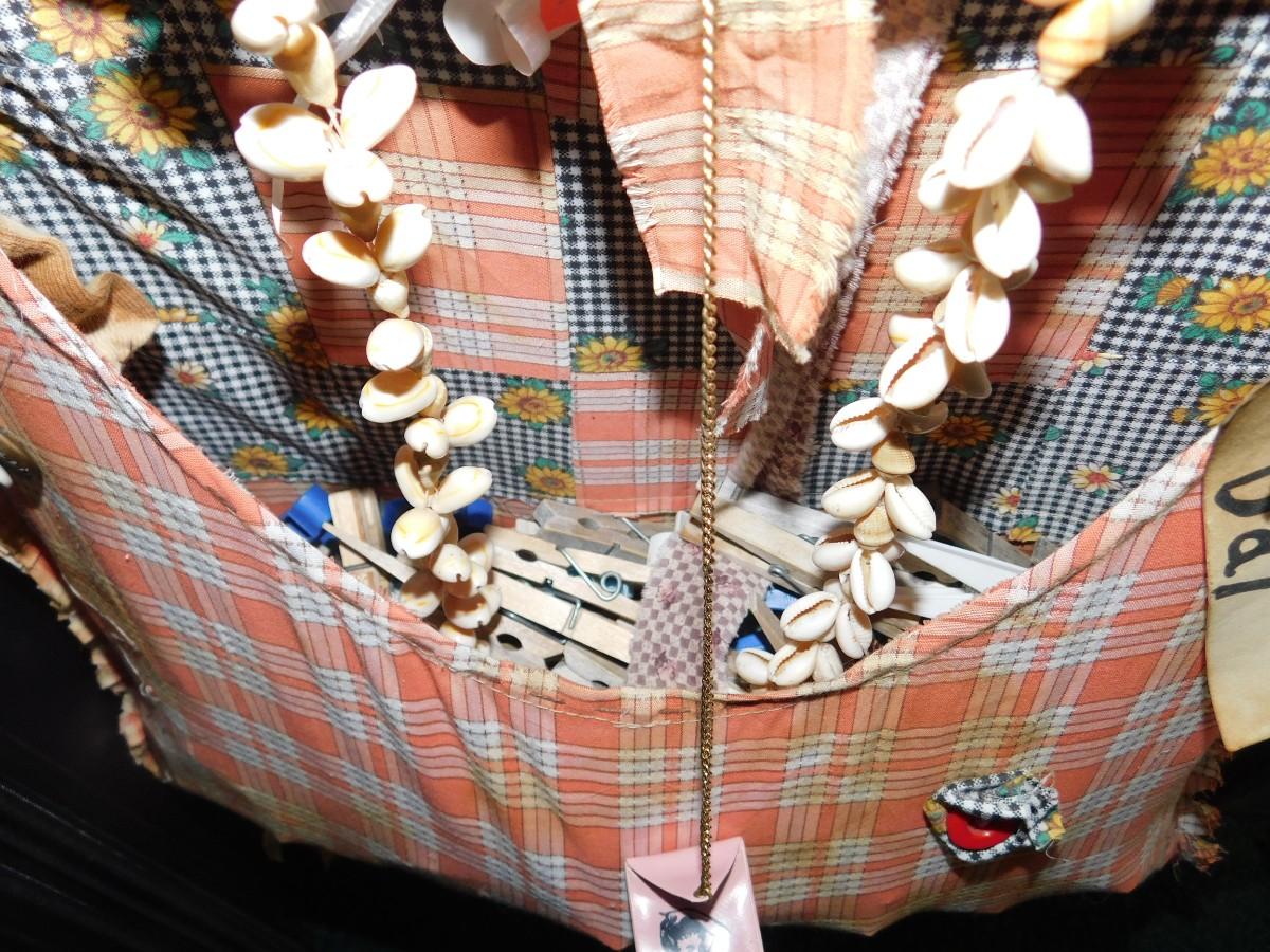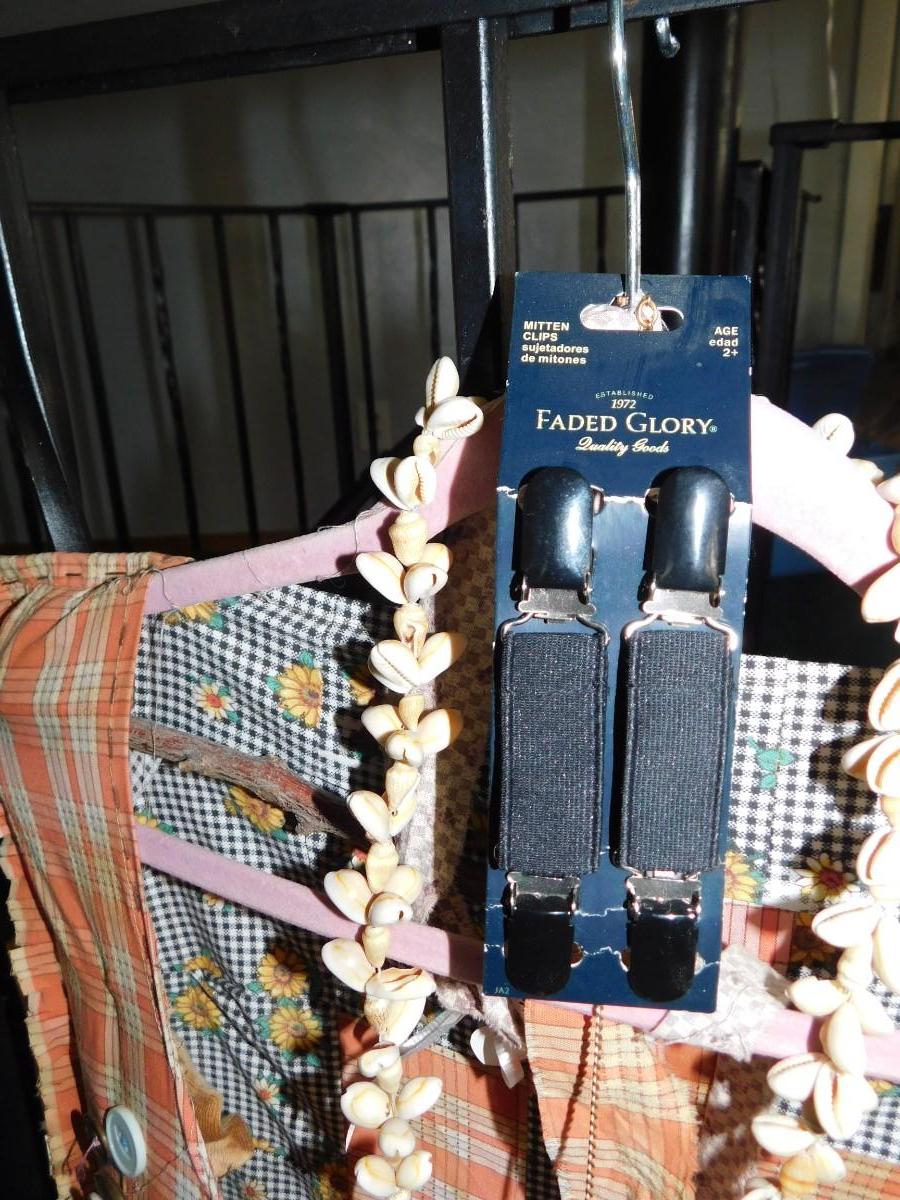 A LITTLE SOMETHING FOR EVERYONE IN THIS LOT! FROM AN ALL AMERICAN TIE, TO WEAR WITH SOME LIGHTLY WORN BOOTS, A NIFTY OLD ZIPPER PULLER UPPER, ENOUGH CLOTHES PINS TO HANG OUT YOUR WASH AND POSSIBLY EVEN THE NEIGHBORS TOO. A SMALL WAISTED BELT THAT COULD BE UTILIZED FOR MORE THAN HOLDING UP YOUR STYLISH PANTS AND A HARD SIDED ROLLING SUITCASE TO LOAD UP SOME MORE LOTS TO CARRY HOME, BEFORE YOU HEAD OUT ON A TRIP SPORTING YOUR NEW BAG AND BOOTS. AND THAT'S NOT ALL, THERE'S A NEW SET OF MITTEN HOLDERS TO KEEP YOU FROM LOSING ONE, AND WITH THIS LOVELY COLD WEATHER WE'RE HAVING... HERE IS SOME WE ALL NEED THIS TIME OF YEAR TO ENSURE WE CAN ALWAYS KEEP BOTH HANDS WARM AND SECURE THAT PAIR FROM BECOMING A LONE MISFIT GLOVE. AND IF THAT'S NOT ENOUGH, YOU'LL EVEN GET A BONUS WITH A COOL SEA SHELL NECKLACE THAT WILL MAKE YOU THE ENVY OF ALL YOUR FRIENDS & EVEN COMPLETE STRANGERS ON THE DAYS YOU'RE NOT SPORTING YOUR COOL NEW TIE AND BOOTS˜‰
